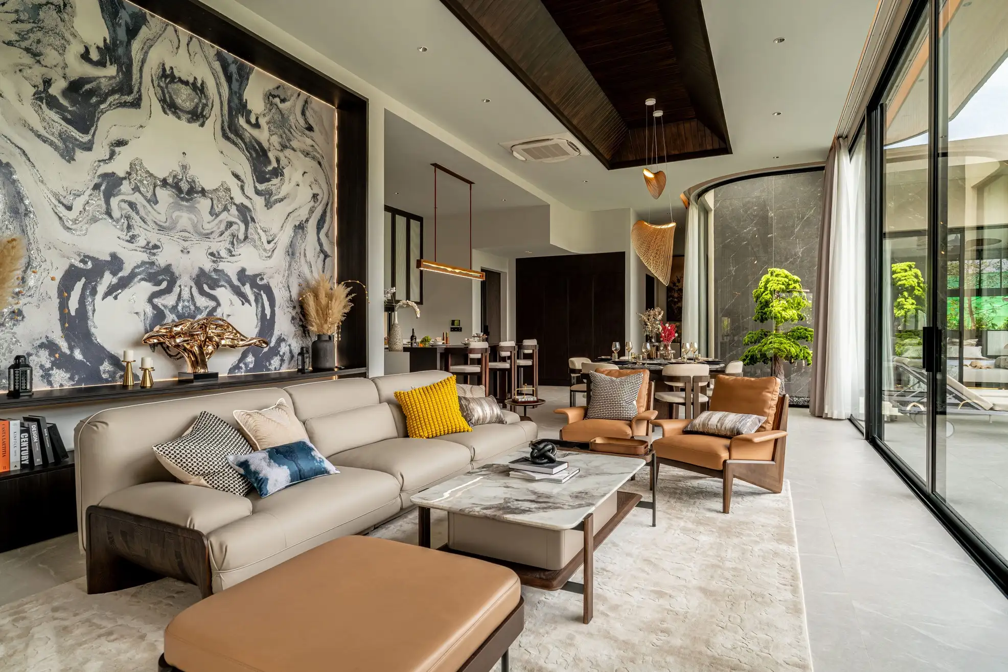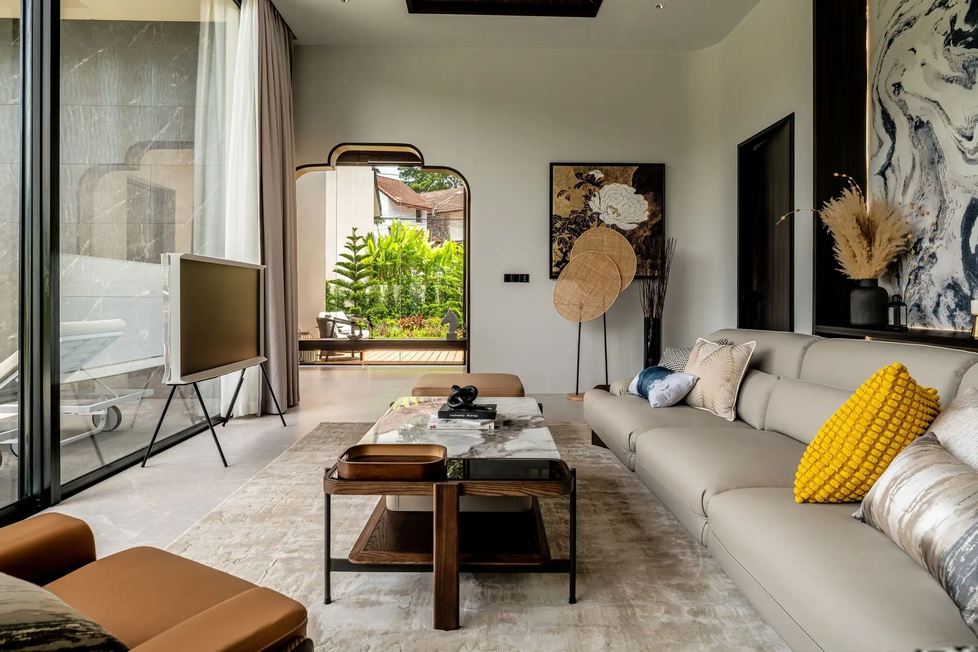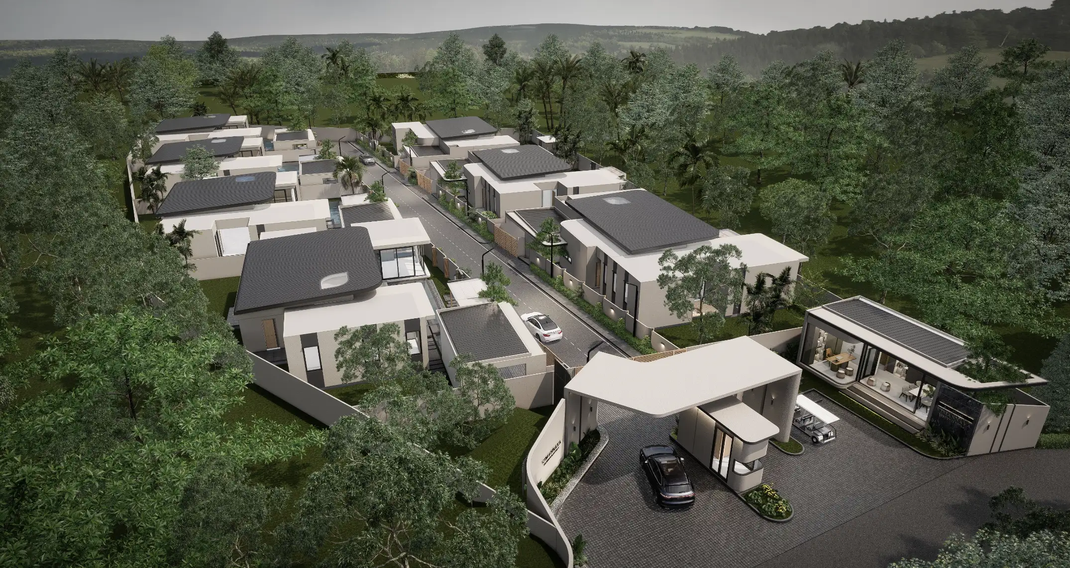 Vimannaya Residence Phuket - only 7 exclusive premium villas: single-storey architecture, mountain views, private salt water pools and spacious green areas of up to 750 m2. The one-storey layout creates a true sense of spaciousness: ceilings of 3.8 m, master bedroom of 54 m2, 3-4 bedrooms and premium design with thoughtful solutions. Land plots vary from 600 to 756 m2, with built-in plots of 393–452 m2.