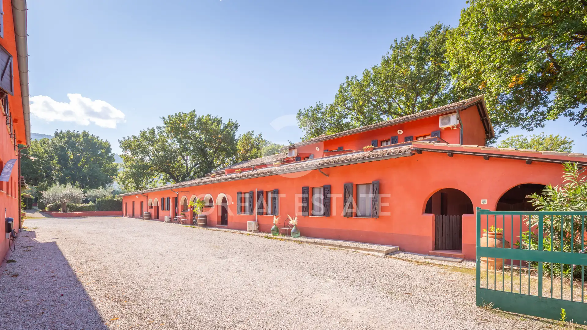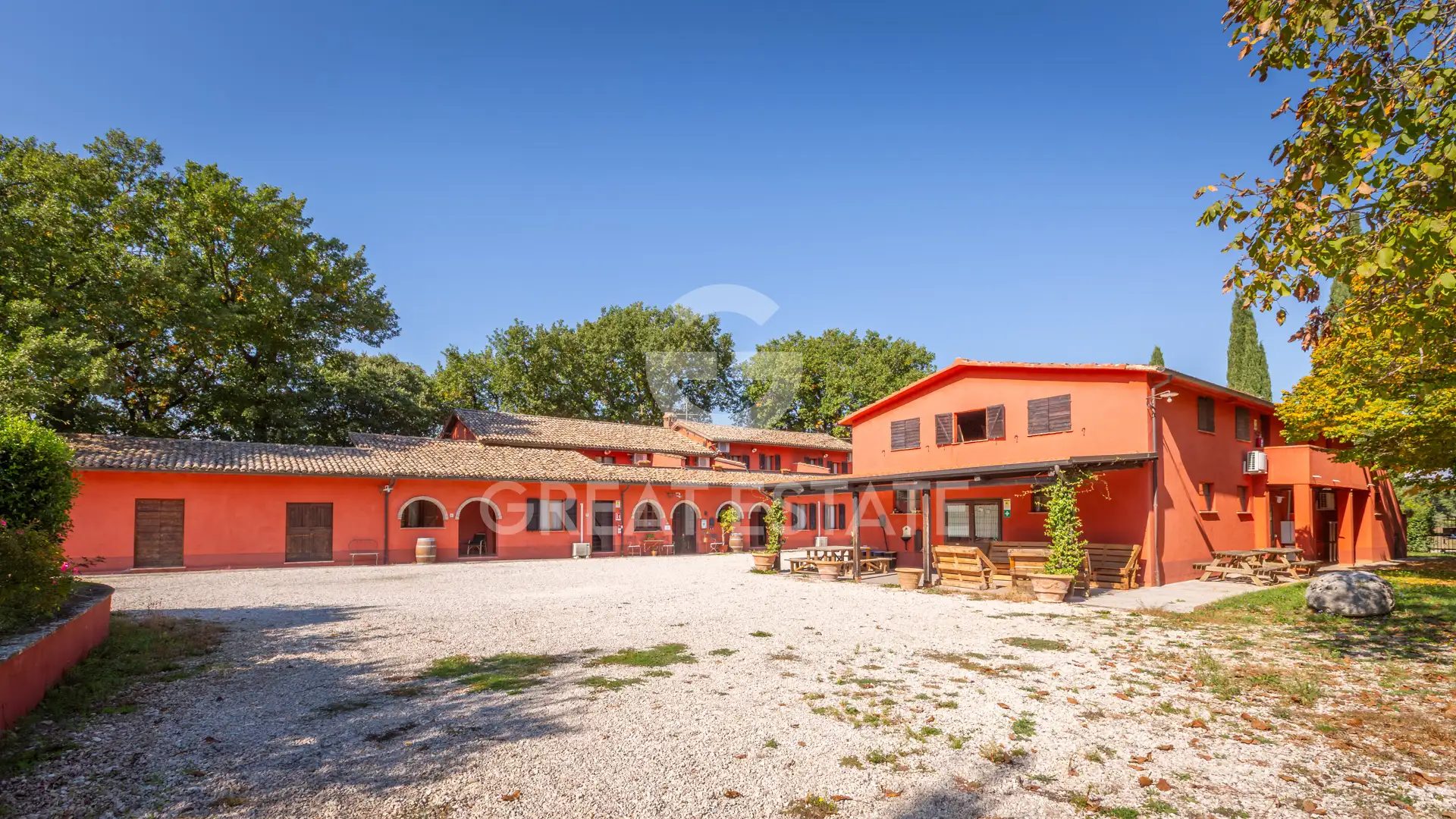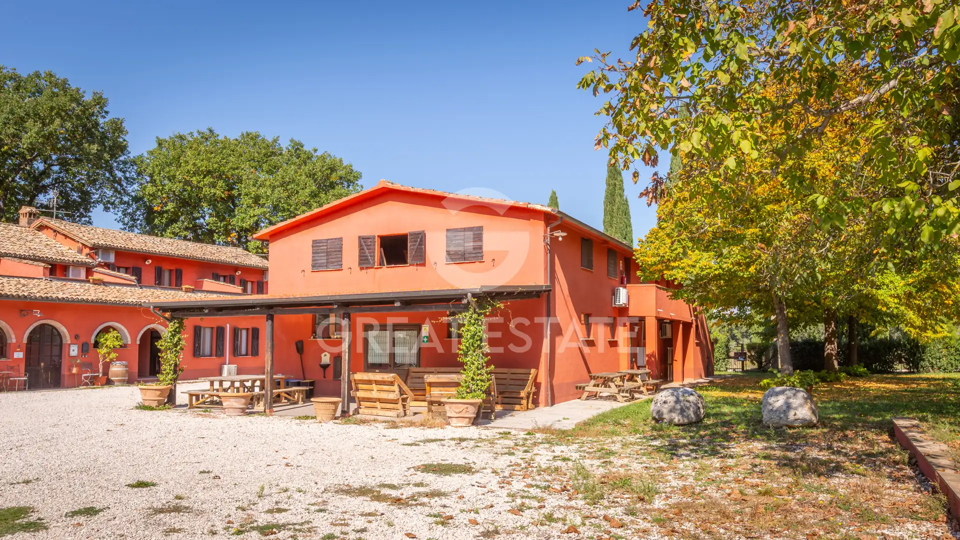 The agritourism complex consists of several buildings: one with 7 apartments dedicated to hospitality activities and 3 storage rooms; the second, also dedicated to agritourism, with 2 additional apartments, a restaurant hall, and a kitchen, as well as a roughly 90 sqm space to be renovated and potentially used as a residence for the owner. Another building, currently used as a storage facility, completes the property and was previously utilized as a stable for horses.