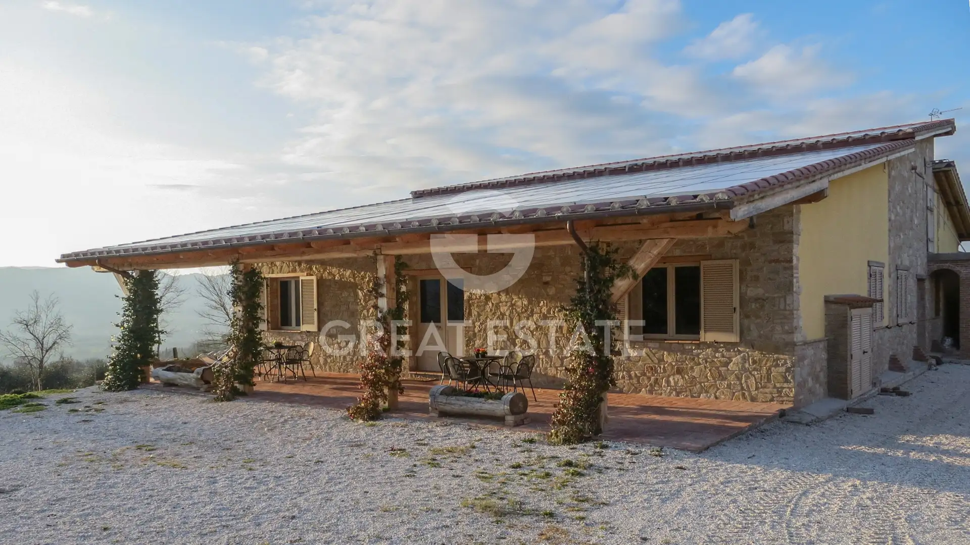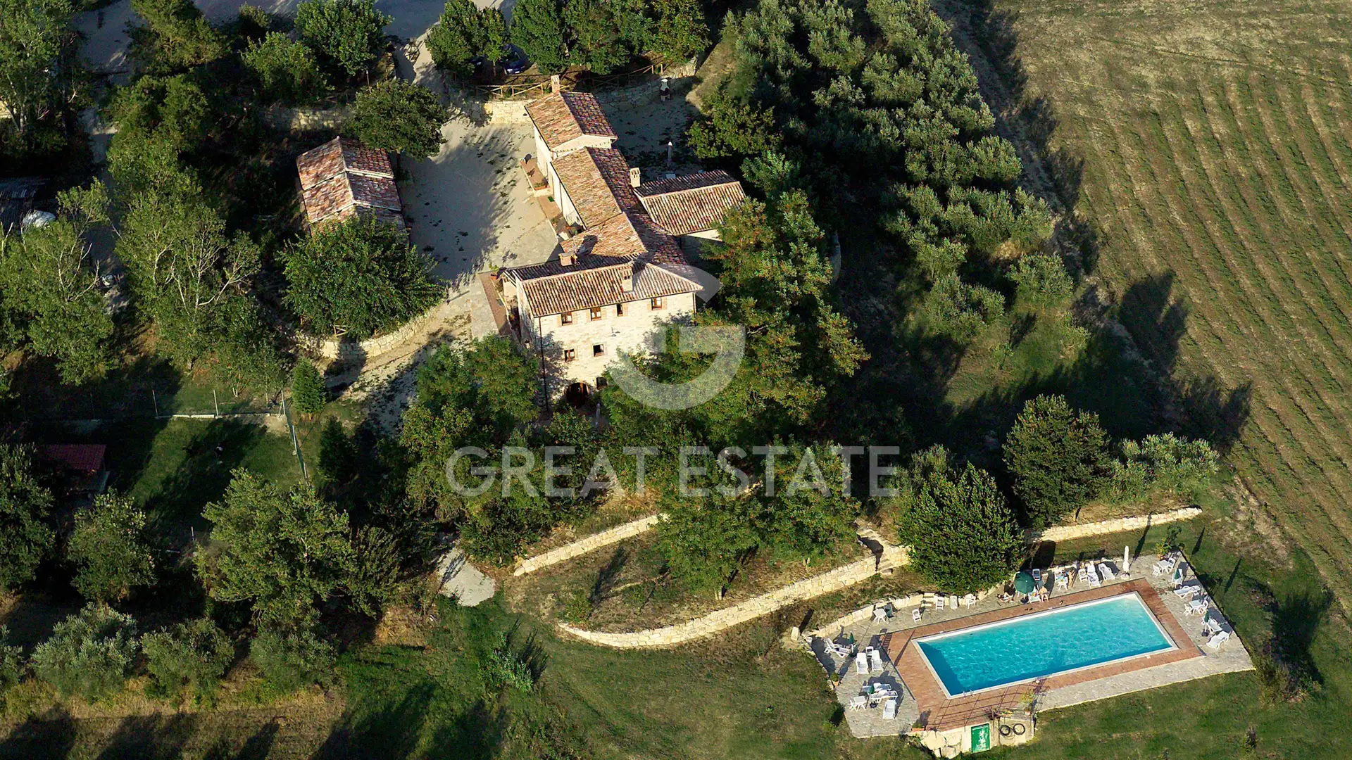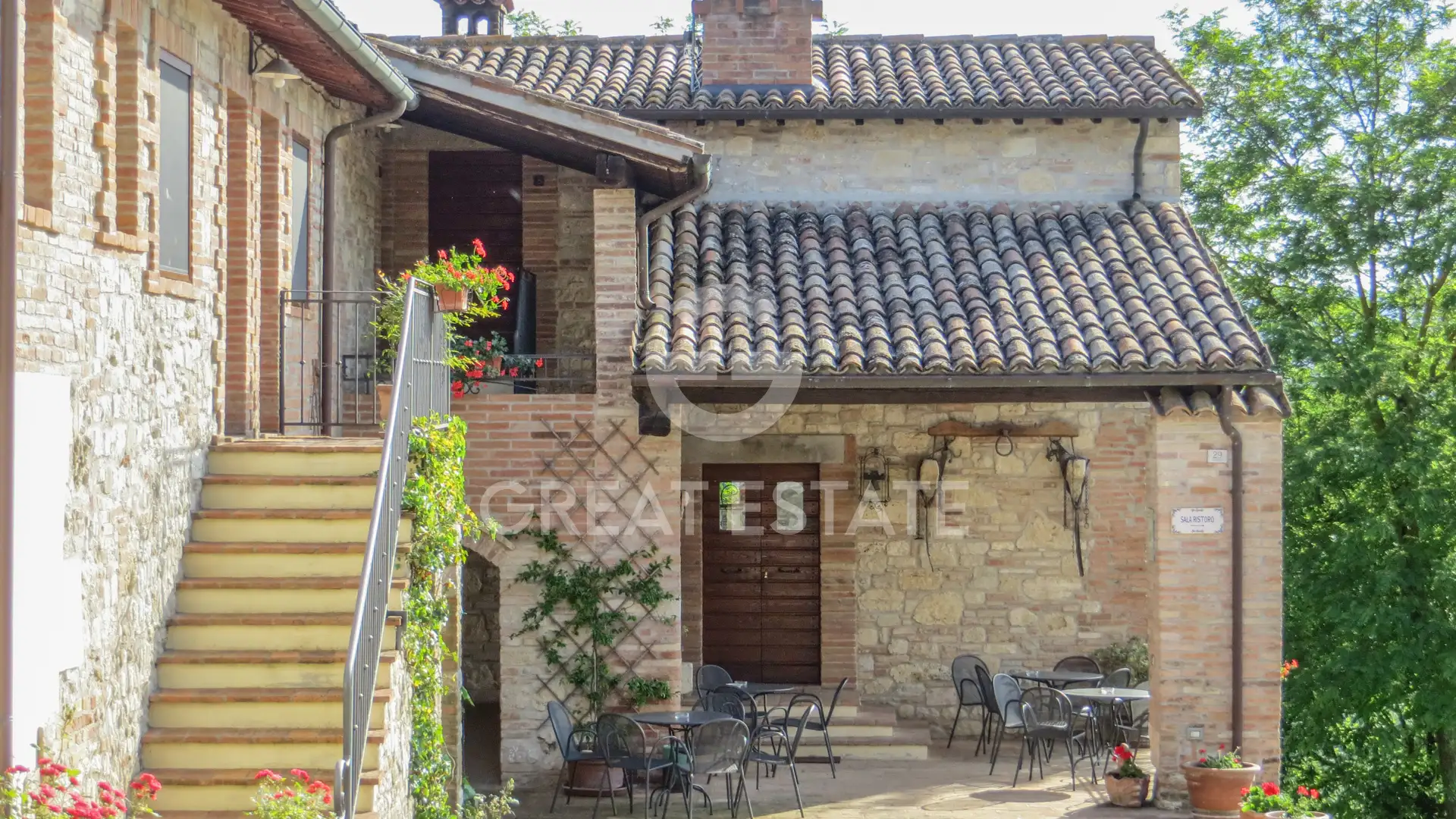 The property covers a total area of 3,000 sqm and consists of a main farmhouse of 500 sqm divided into 5 apartments, featuring a total of 10 bedrooms and 13 bathrooms. Additionally, there is a detached annex with a further 65 sqm apartment comprising 3 bedrooms and corresponding bathrooms. The estate also boasts a wellness center of over 300 sqm, a 30 sqm tool shed, and two warehouses totaling 2,100 sqm, offering potential for further development subject to authorization from the Municipality of Todi.