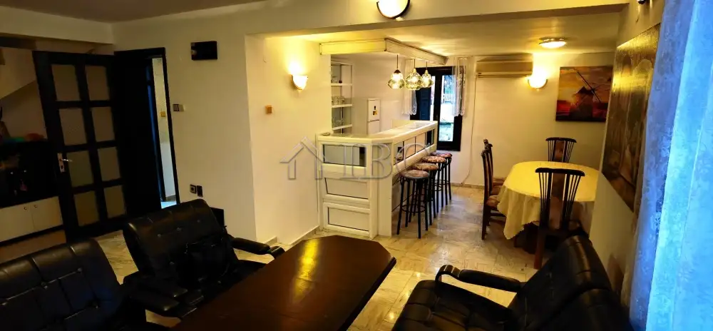 The house is on the upper part of the road and offer beautiful views to the surroundings. The total area of the house is 130 sq.m., distributed between 2 floors. The house offers a living room with fireplace, kitchen and dining area, entrance hall, storage room, 3 bedrooms, a bathroom with shower, toilet and sink and 2 big balconies with panoramic views. The house is with warm floor (on electricity); the windows are with wooden coverings.