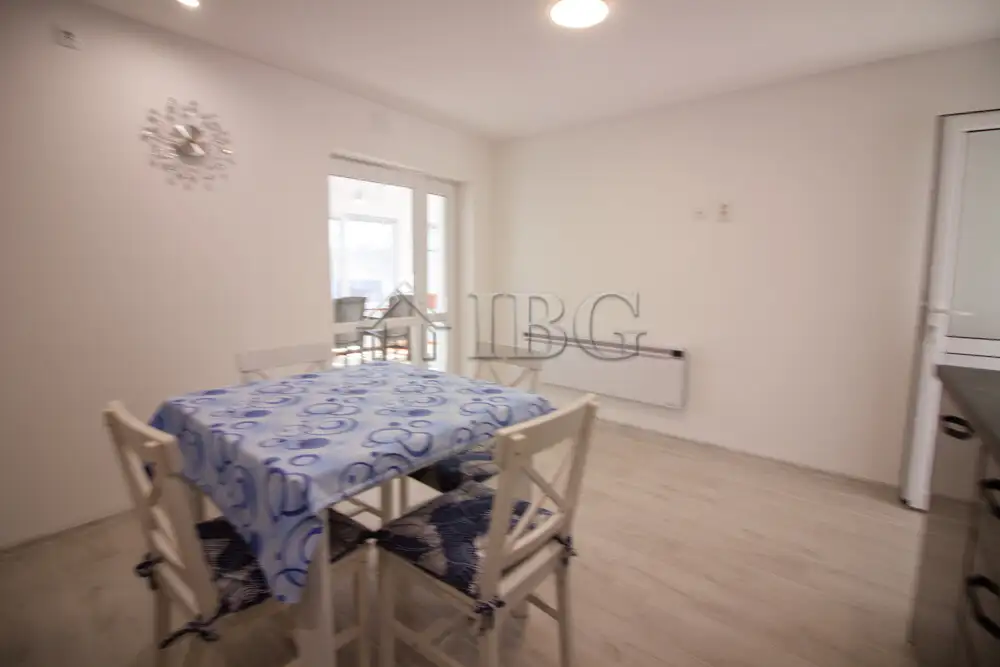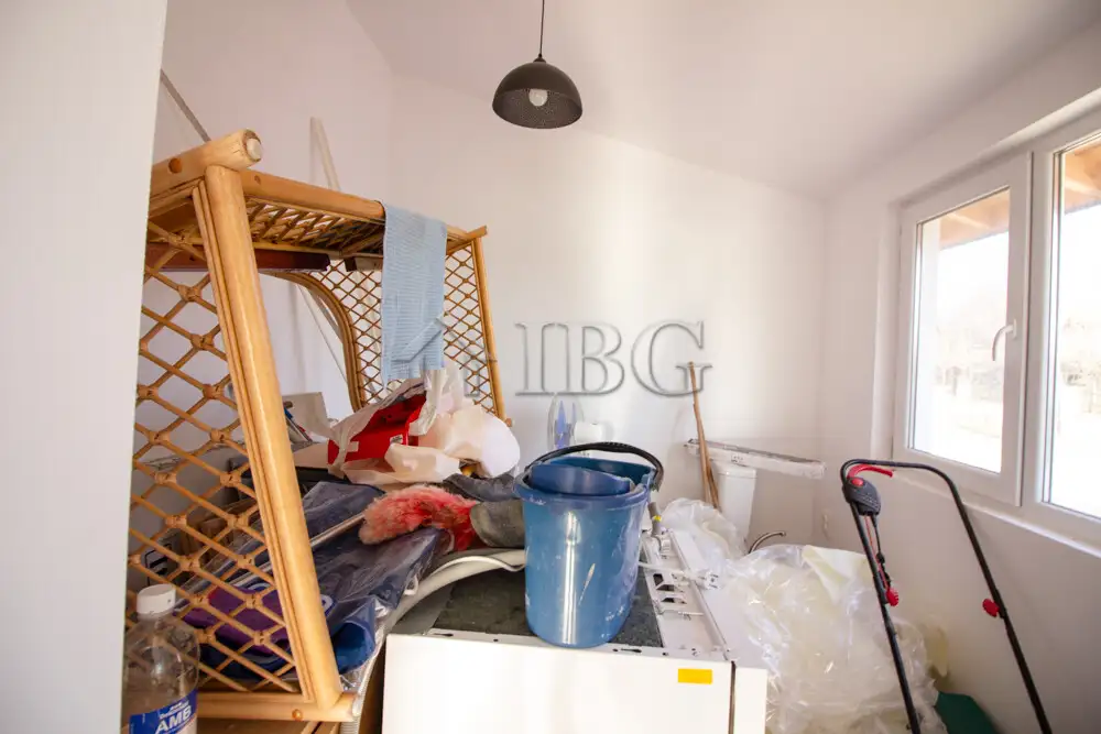 The property is set on a plot of land with size of 800 sq.m., surrounded of a solid wall. The house is single storied with size around 110 sq.m. It consists of big hallway, which could be converted in 3rd bedroom or a winter garden, a premise for laundry or bathroom with toilet, big kitchen with dining area, living room, 2 bedrooms and bathroom. . The property is built with high quality materials. It is with new roof, new plumbing systems, the floors are ceramics and wooden floors.