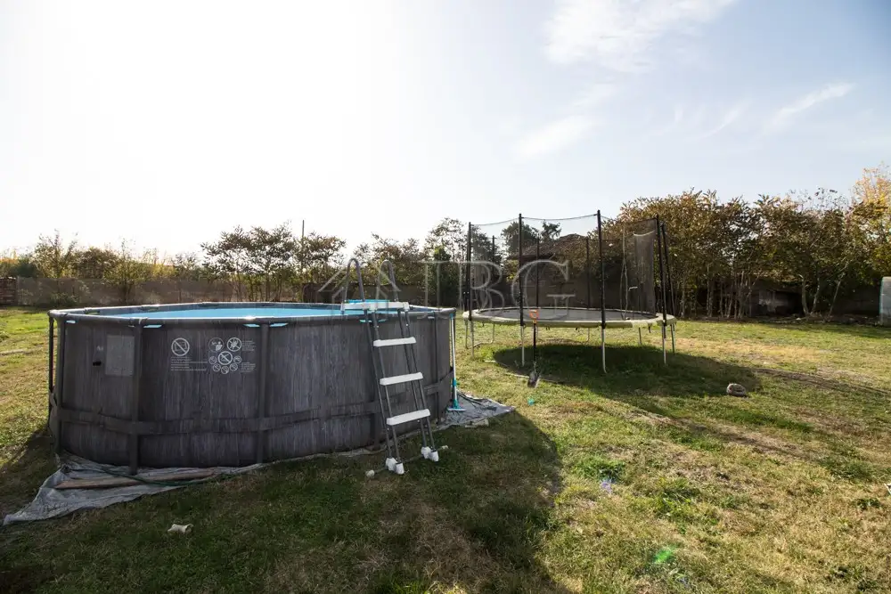 The garden is with size of 1865 sq. m., leveled and very well maintained, with fruit trees small sunny house, ryegrass and flowers. There is installed a prefabricated pool and tramploline, where the kids will enjoy the warm and sunny days outside. The property offers and outbuilding which could be transformed in house for guests or workshop. The garden watering is for free because of the working water well in the property.
