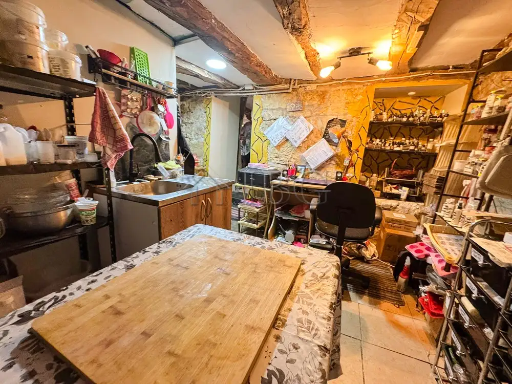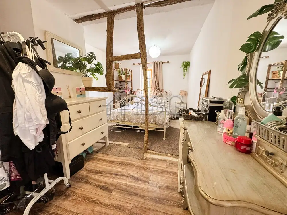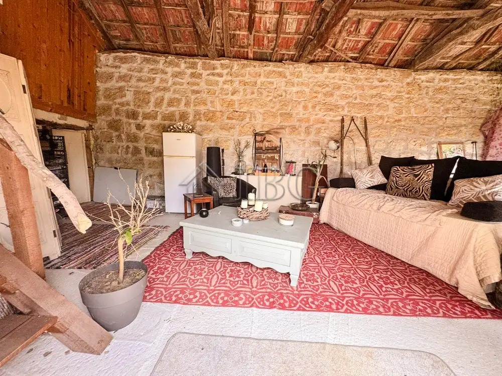 Step into the bright and spacious living room, thoughtfully designed with a dining area and authentic wooden beams that add warmth and rustic charm. A separate kitchenette provides a cozy yet functional space for cooking, while 1.5 bathrooms ensure everyday comfort.