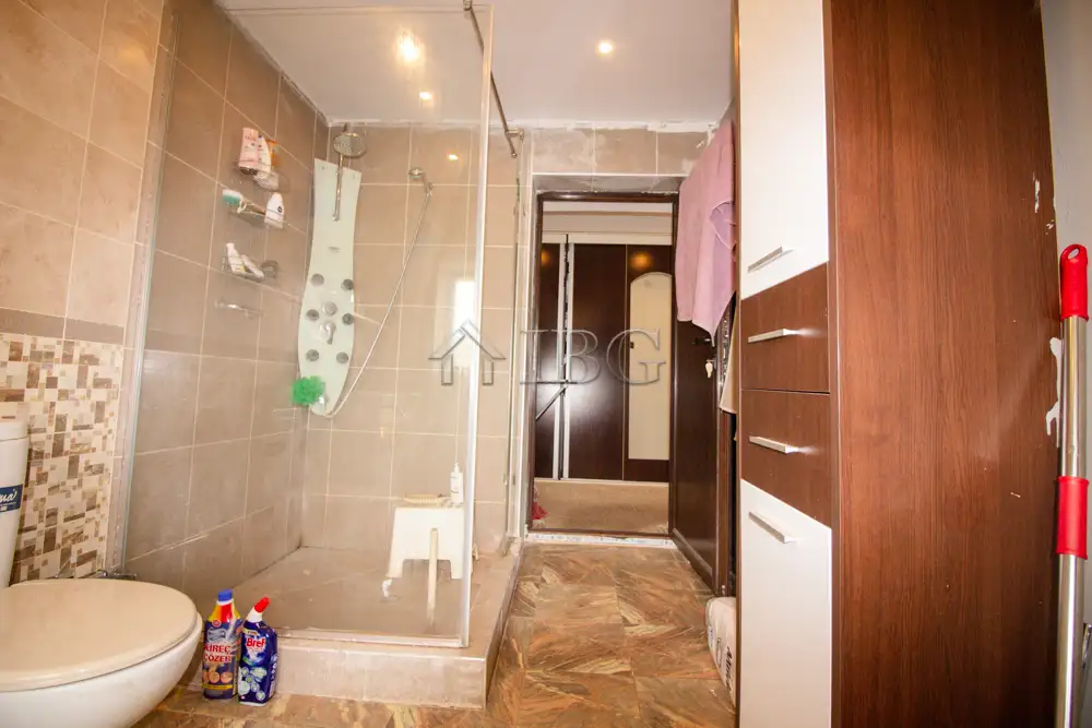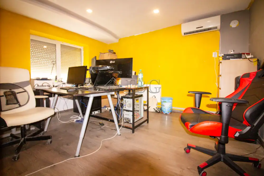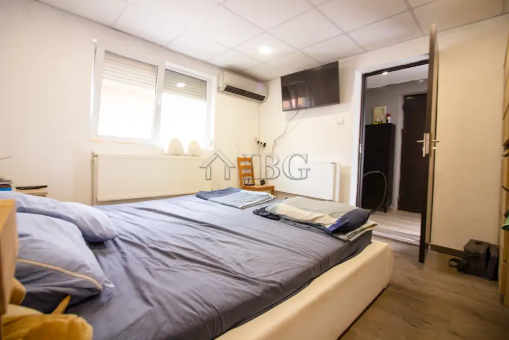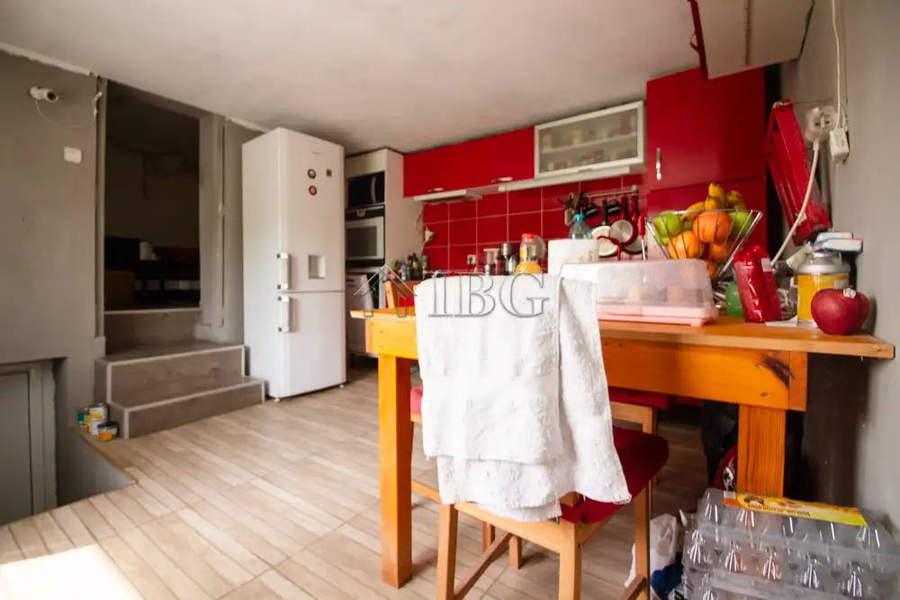 The house is 100 sq.m and consists of: entrance hall, bedroom with en suite bathroom, which needs renovation, large kitchen with dining area, separate living room, second corridor, 2nd bedroom and renovated bathroom. The house is fully renovated with outher insulation, new joinery, new electricity and plumbing systems, local heating and security system. The property is for sale furnished.