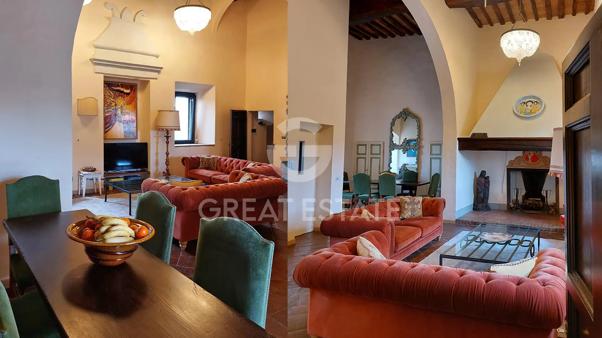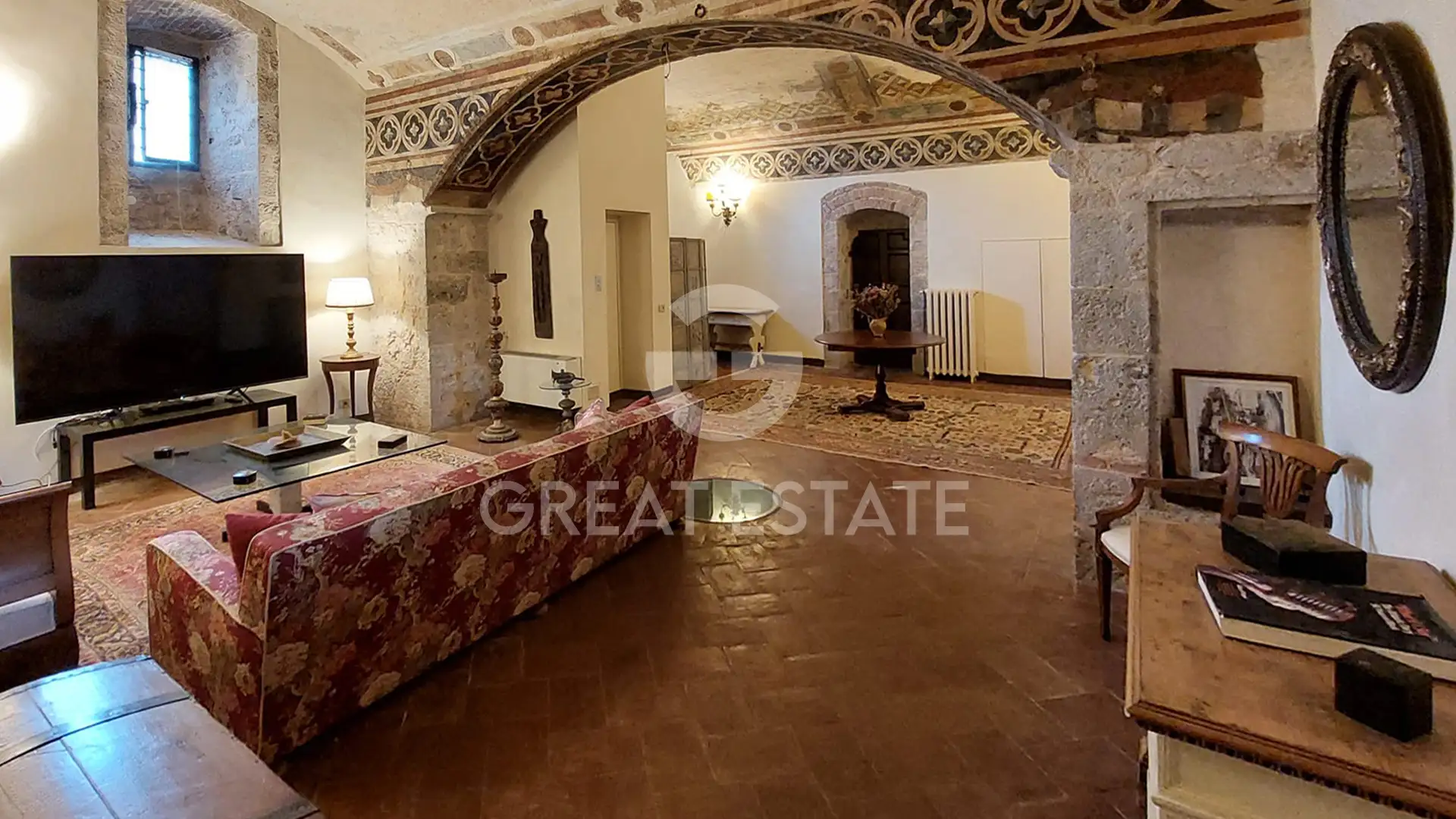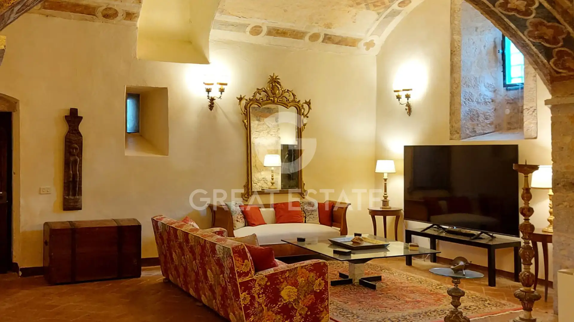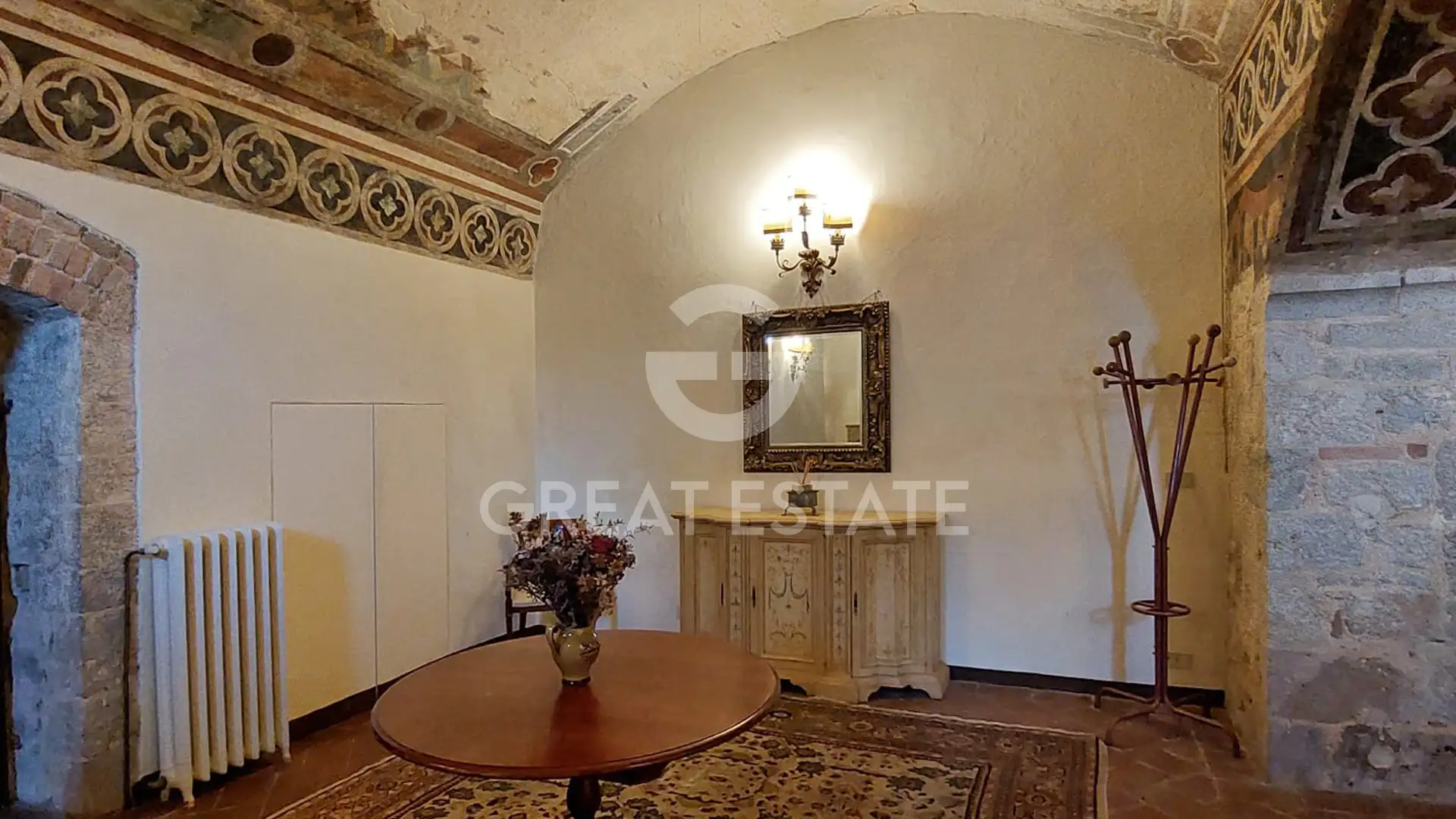 The property is arranged over three levels, in addition to a basement level and the panoramic tower, and is composed as follows. Passing through a charming internal courtyard with a well, typically medieval in style, one enters the ground floor, where there is a spacious double living room distinguished by frescoes dating back to 1305, as well as a convenient storage room.