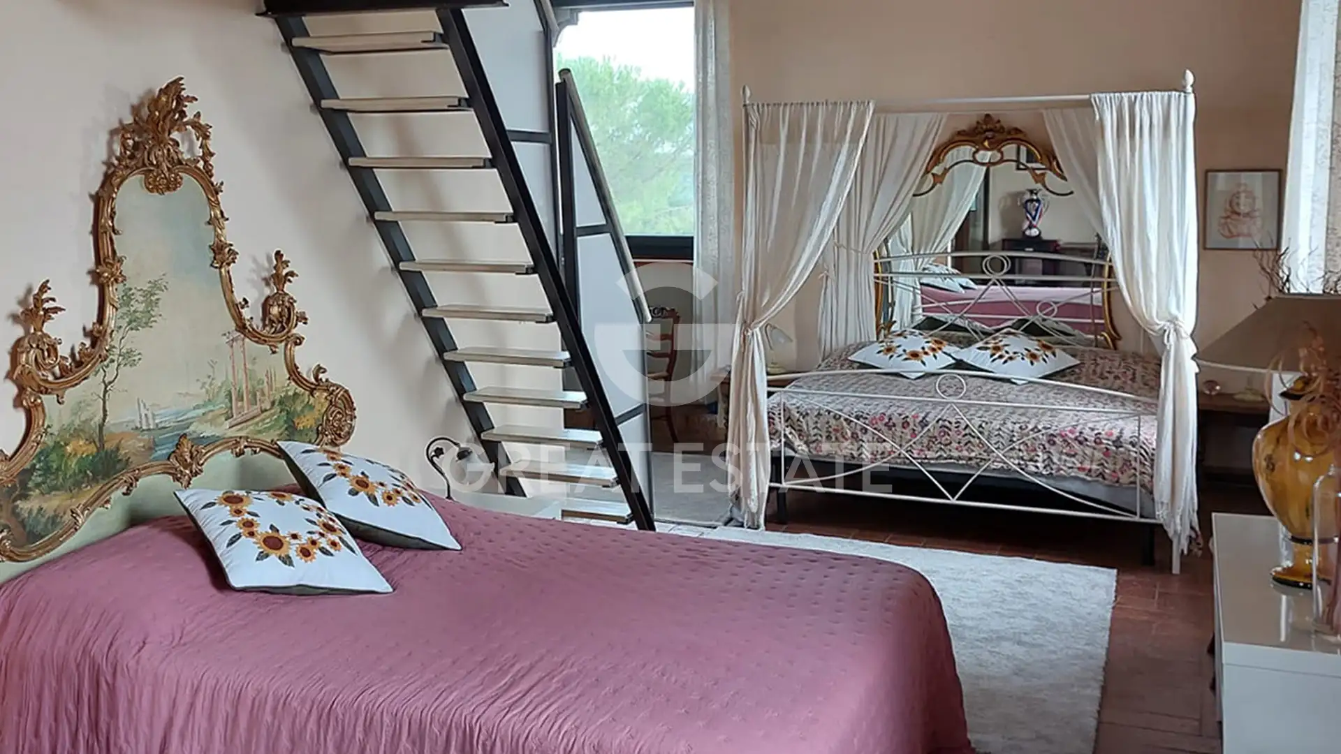 The third floor hosts two additional bedrooms, served by two further bathrooms, while the fourth floor is home to the splendid panoramic tower, a truly unique space, ideal for admiring evocative sunsets or hosting dinners with breathtaking views.