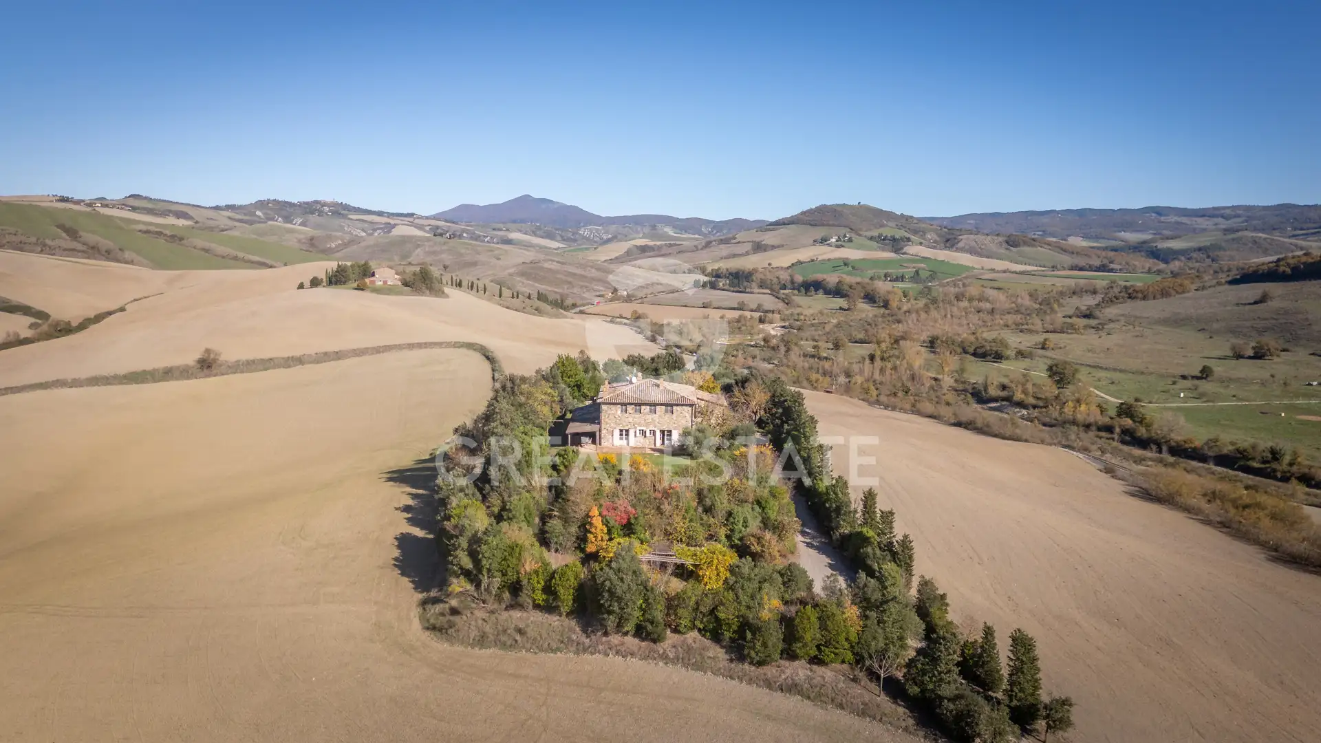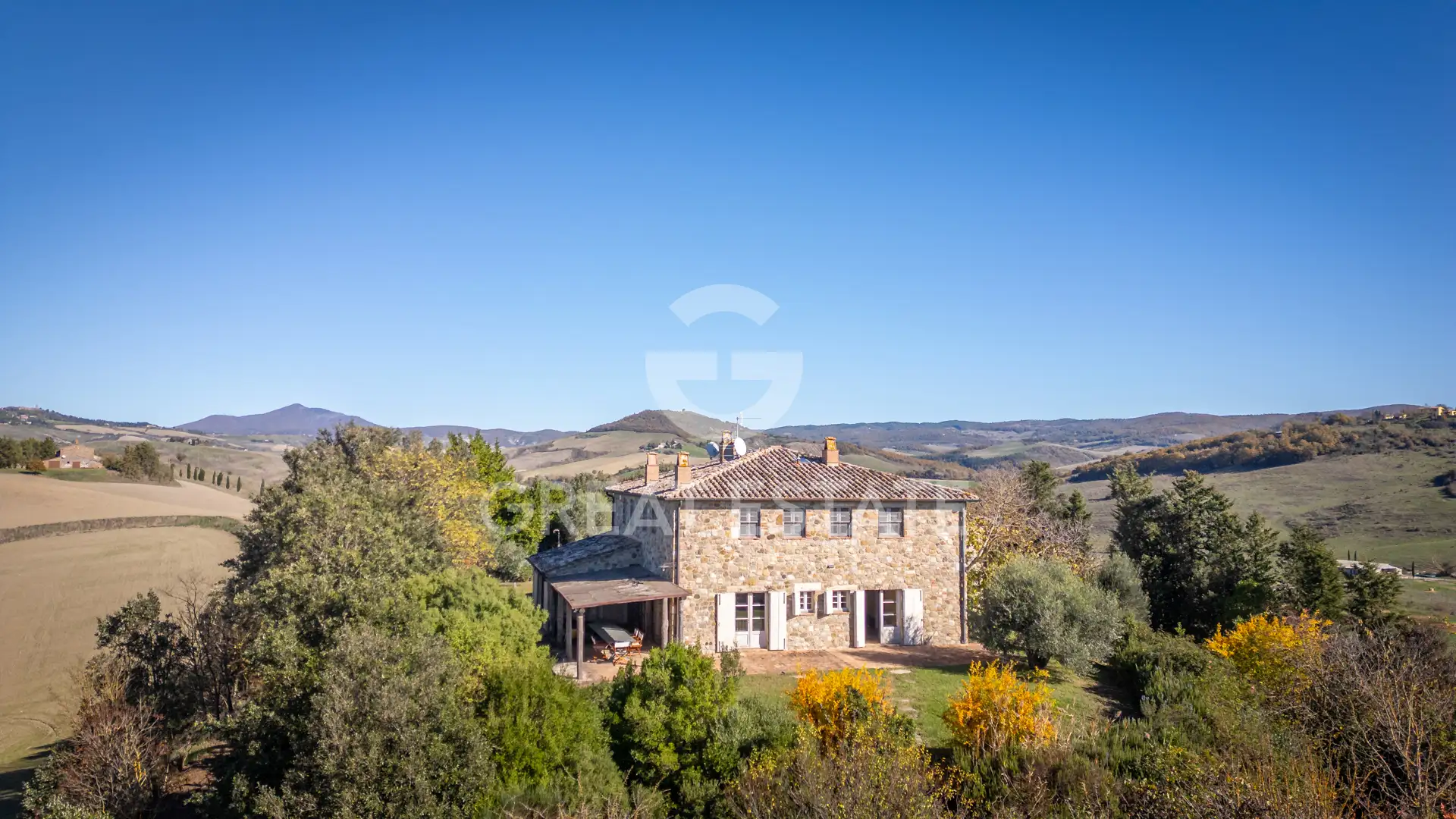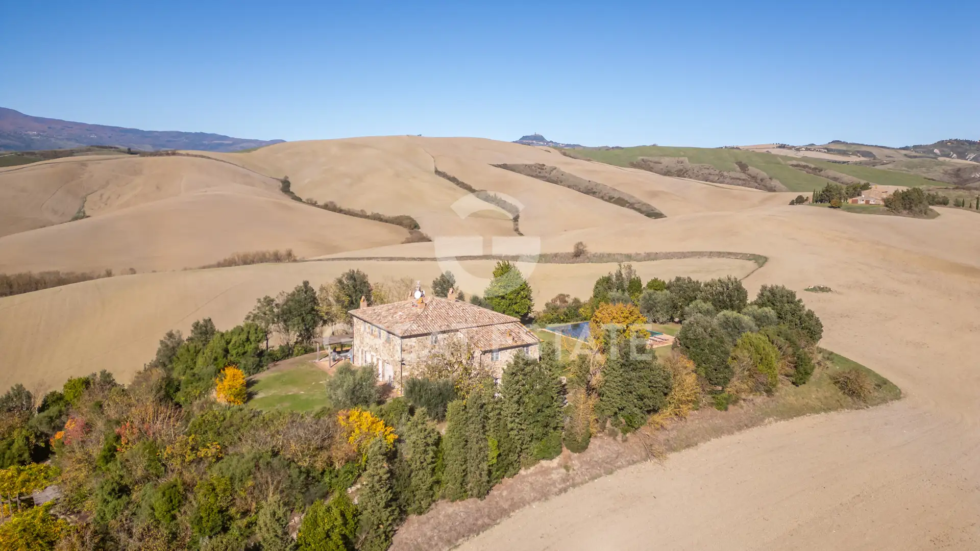This property harmoniously integrates into the rolling landscape of the Val d'Orcia, offering a high level of privacy and panoramic views over the gentle surrounding hills. The farmhouse, dating back to 1900 and meticulously restored in 2010 with exquisite finishes, extends over two floors with a commercial area of approximately 409 square meters. Access is granted via a paved and dirt road of less than 500 meters, ensuring convenience and seclusion.