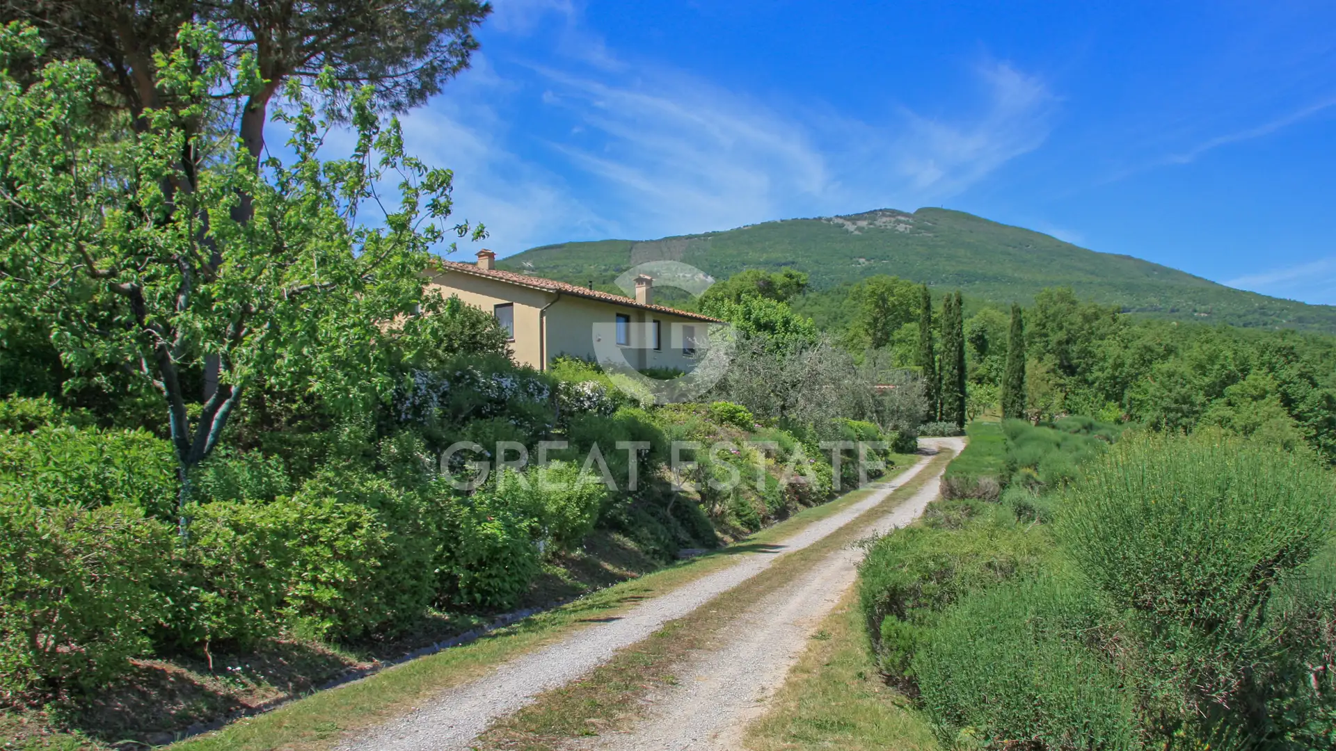 In the municipality of Cetona, we present this elegant restored villa of approximately 360 sqm, surrounded by a private garden of about 2,800 sqm. The property is distinguished by its spacious and light-filled interiors.
