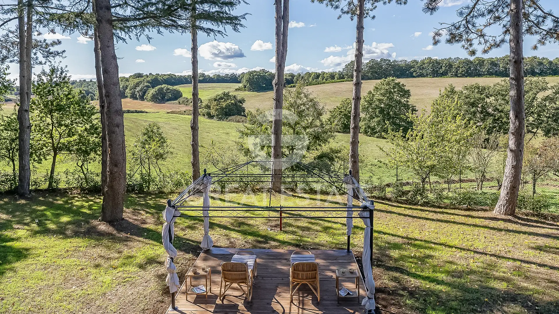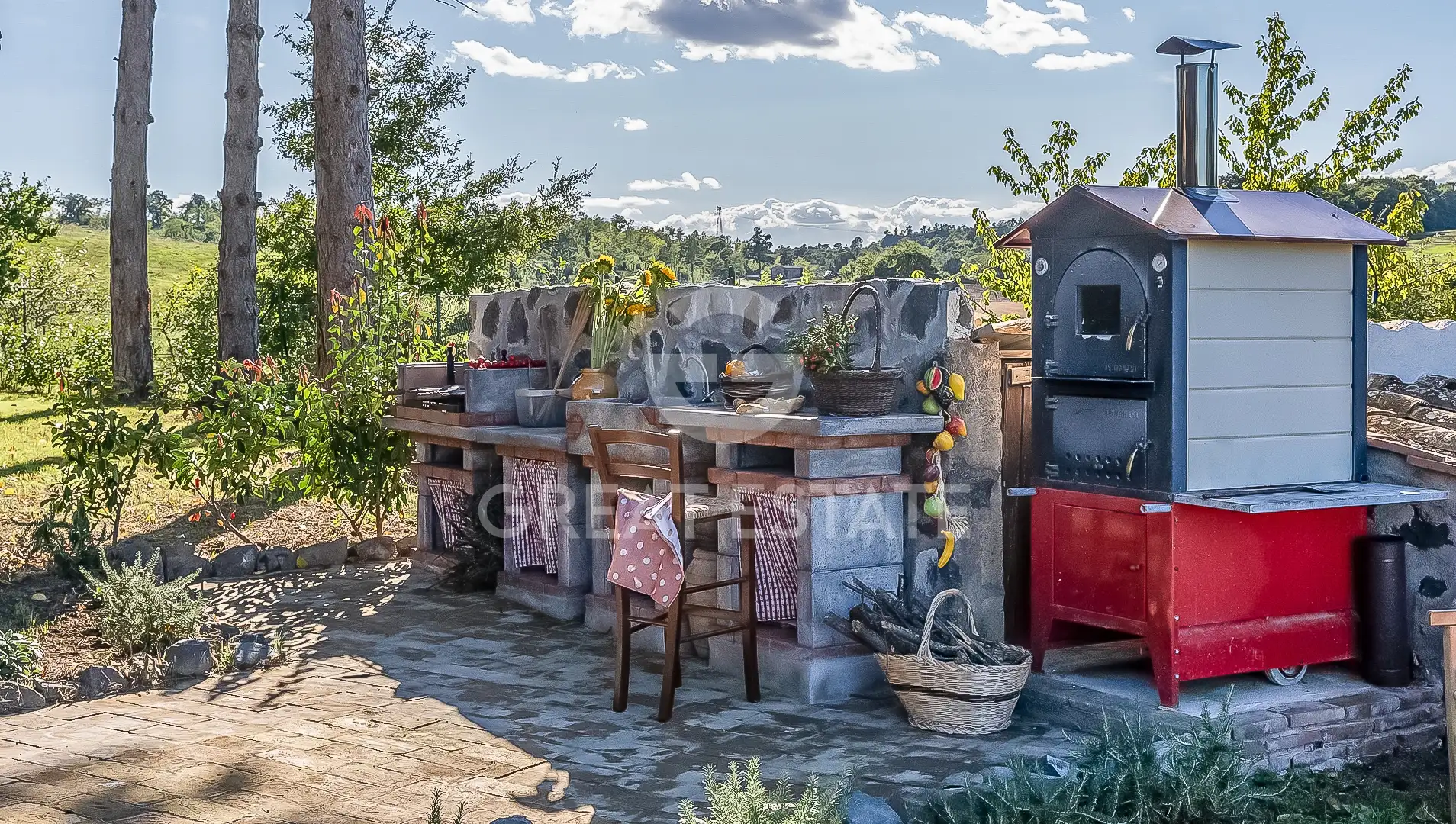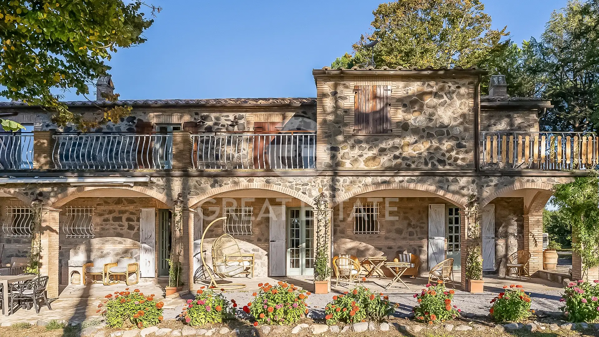 The interiors are characterized by traditional features, such as the beautiful vaulted ceilings and terracotta arches on the ground floor, combined with a modern renovation that has enhanced the charm of La Renara. The external park is enriched by tall trees and shaded areas, evocative views and versatile spaces ideal for welcoming guests, enjoying sunsets and preparing excellent meals. The pool area offers unique panoramas and ample space dedicated to relaxation.