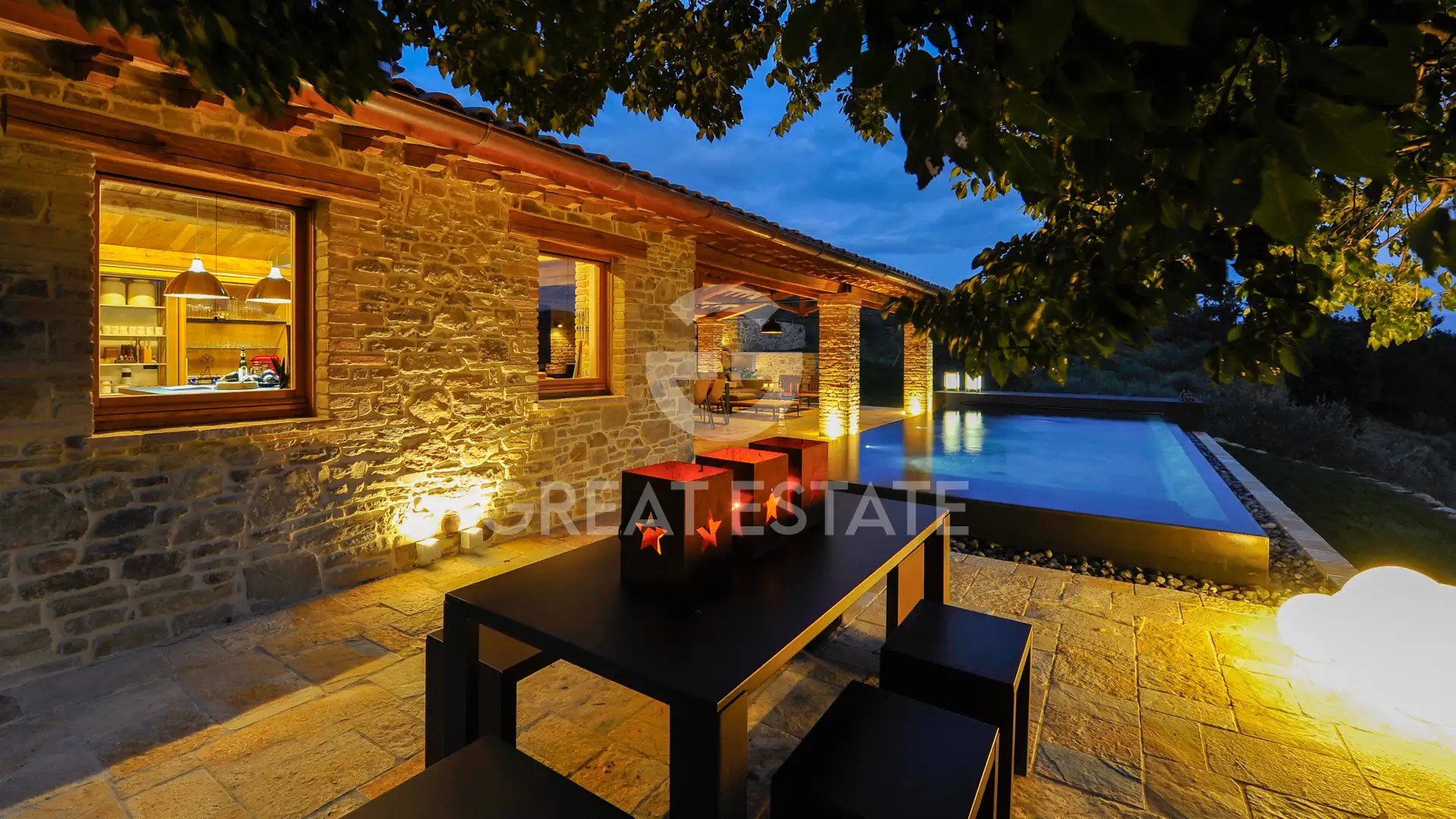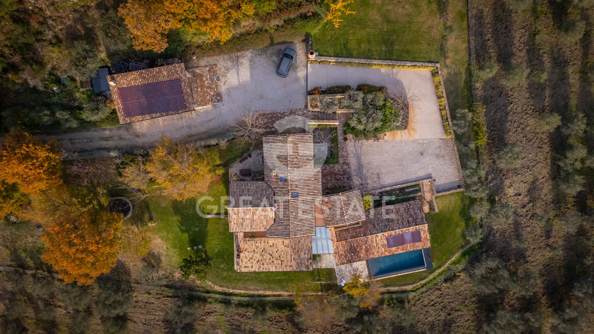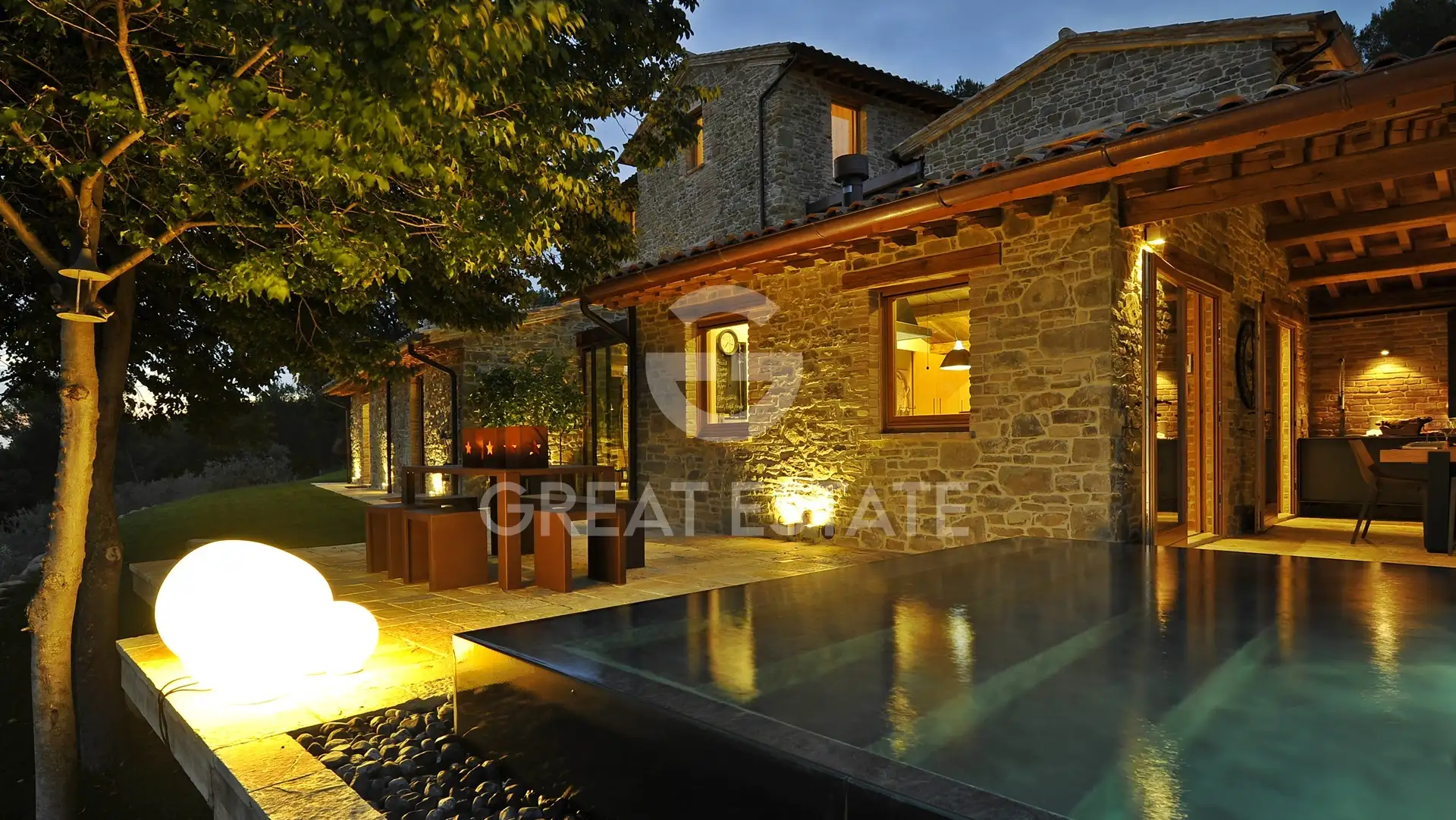 The main farmhouse, originally a cluster of various buildings, was completely renovated less than ten years ago; many antique details have been preserved, such as the stunning exposed stone walls, niches, and, where possible, some original beams.