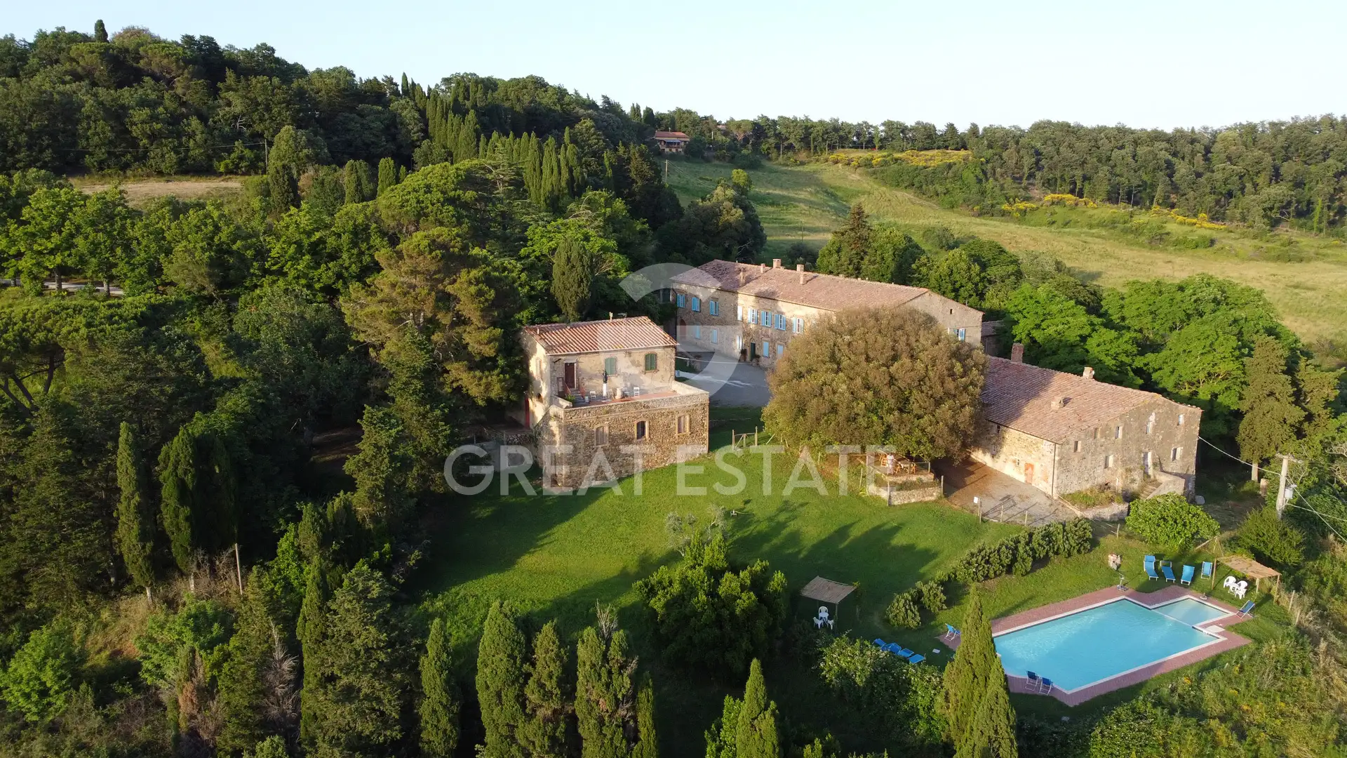In a dominant and private position, immersed in the authentic beauty of the Tuscan countryside, we offer for sale a charming farmhouse with open and picturesque views over the surrounding landscape.