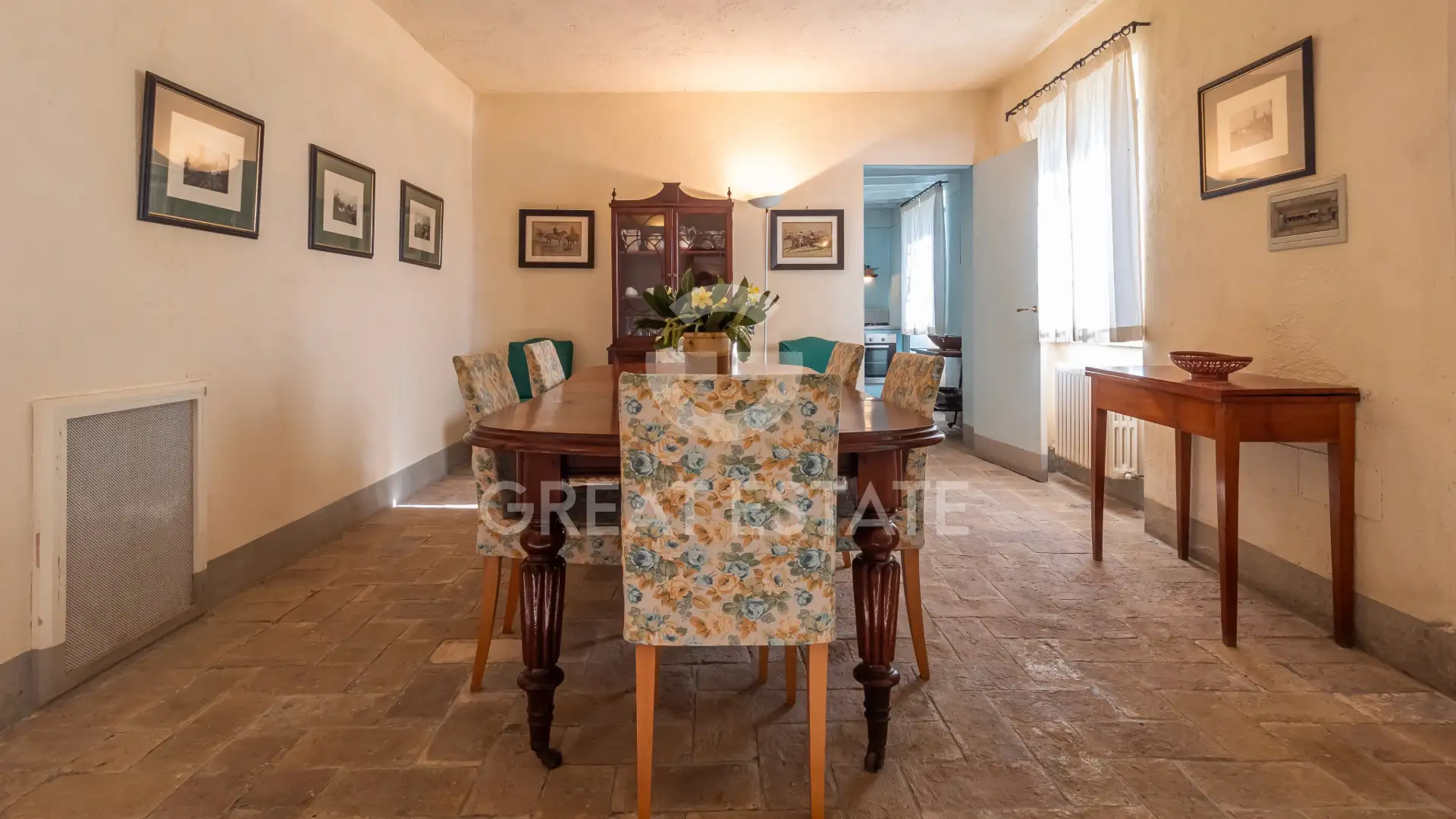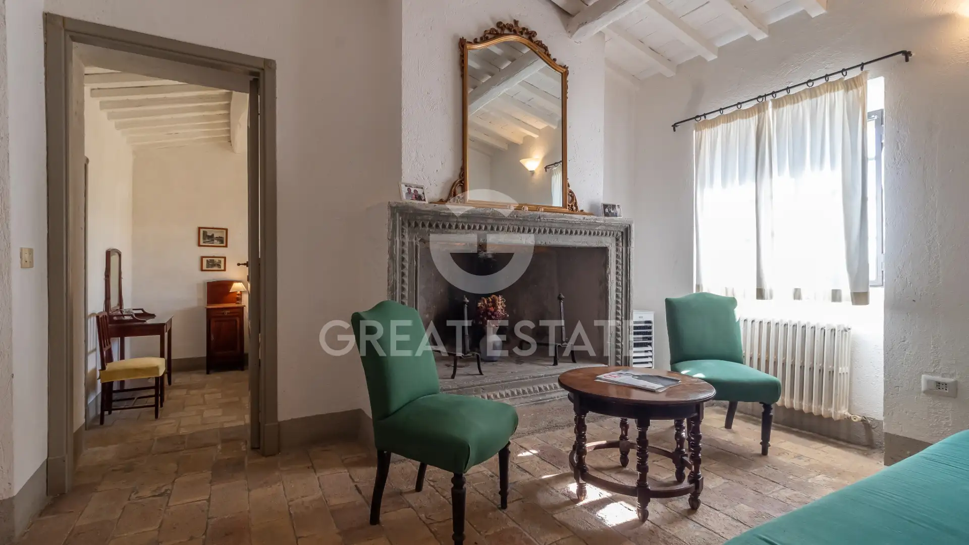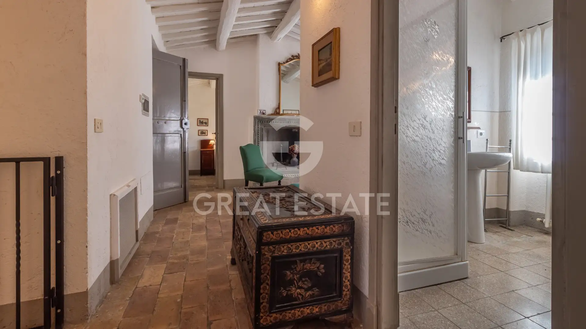 Accessed via a white gravel road offering breathtaking vistas, you then find yourself immersed in unspoiled countryside: welcome to La Marzolina, an ancient residence set in a commanding position overlooking the valley and surrounded by a garden with panoramic views. The property extends over 191 square meters across two levels. Upon entering on the ground floor, there is a spacious living area and, adjacent to it, a sitting room with fireplace; on the opposite side opens the kitchen, which overlooks a portico where you can enjoy magnificent views and dine al fresco. Next to this area is also the barbecue zone. On the same floor there is a hallway, a bathroom with bathtub, and a double bedroom, also overlooking the portico. The first floor can be reached either via the internal staircase or through an independent external entrance. This level features a charming living room with a stone fireplace, a double bedroom with en suite bathroom, a bathroom with shower, and alongside it another double bedroom.