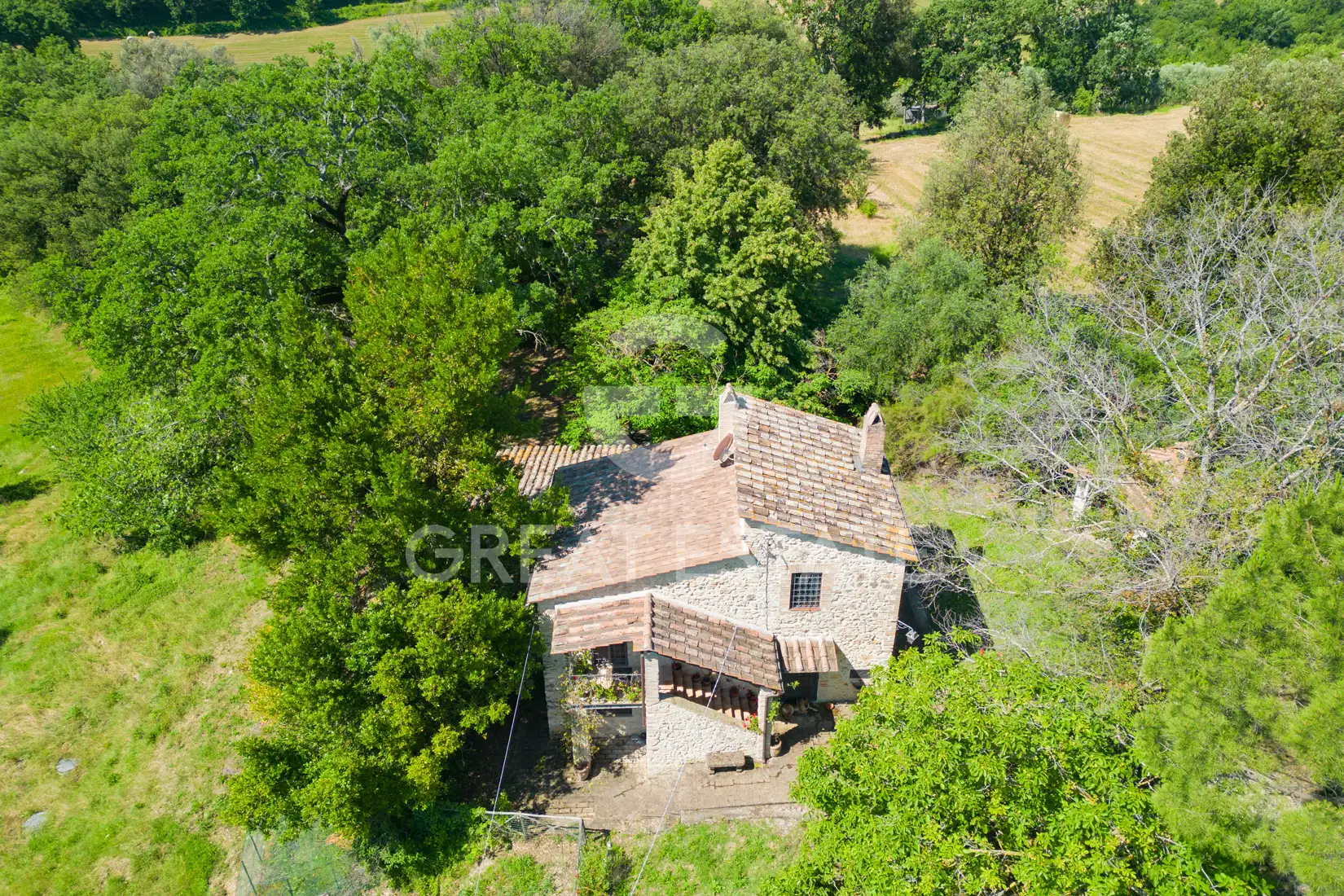 The property is located 2 km from Calvi in Umbria in the open countryside, with a panoramic view of the village of Calvi. Ancient stone farmhouse completely renovated in 2010. The farmhouse has an area of approximately 200 sqm on two floors and two cellars in the basement, as well as a woodshed and brick oven with barbeque, approximately 1 ha of land with olive grove with 65 olive trees in production and a small vineyard, in a panoramic position surrounded by greenery. On the ground floor there is a large living room with fireplace and access to the terrace, built-in kitchen with old fireplace, pantry and access to the garden, master bedroom, a second bedroom, two bathrooms and a small study. On the first floor there are two bedrooms and two bathrooms. There is the possibility of building a swimming pool and an outbuilding of 100 sqm. Furthermore, during the restructuring phase, the construction of a technical/storage room adjacent to the 35 sqm cellar was granted.
