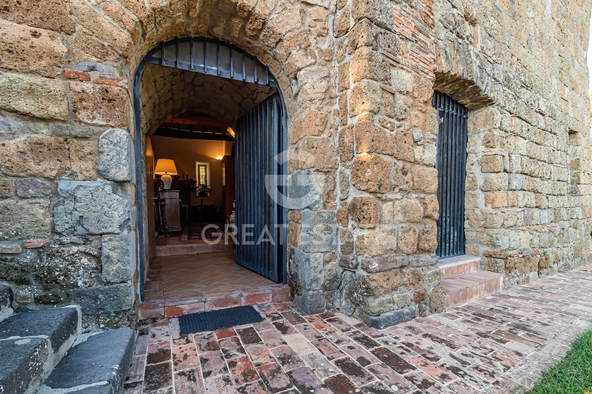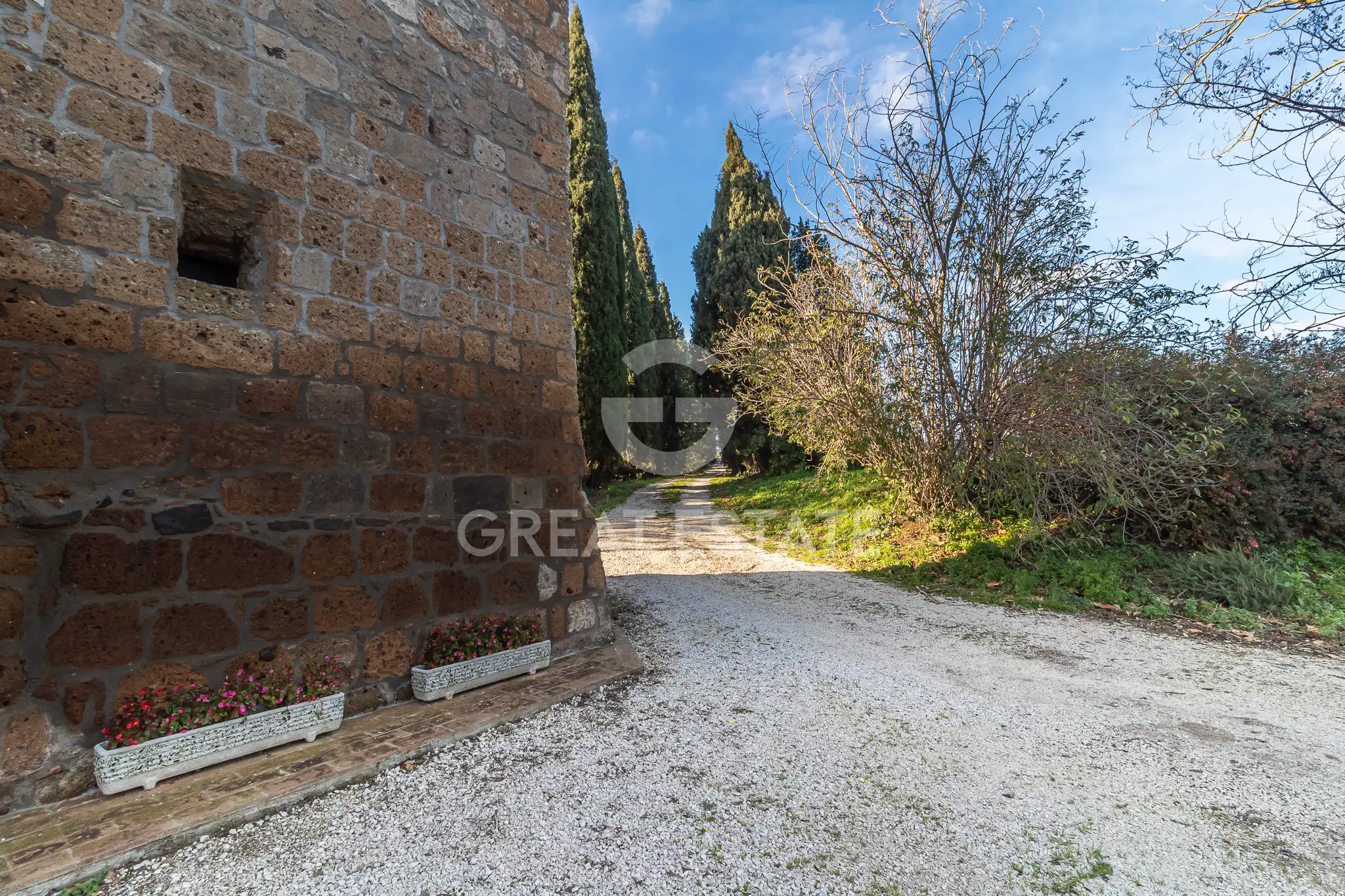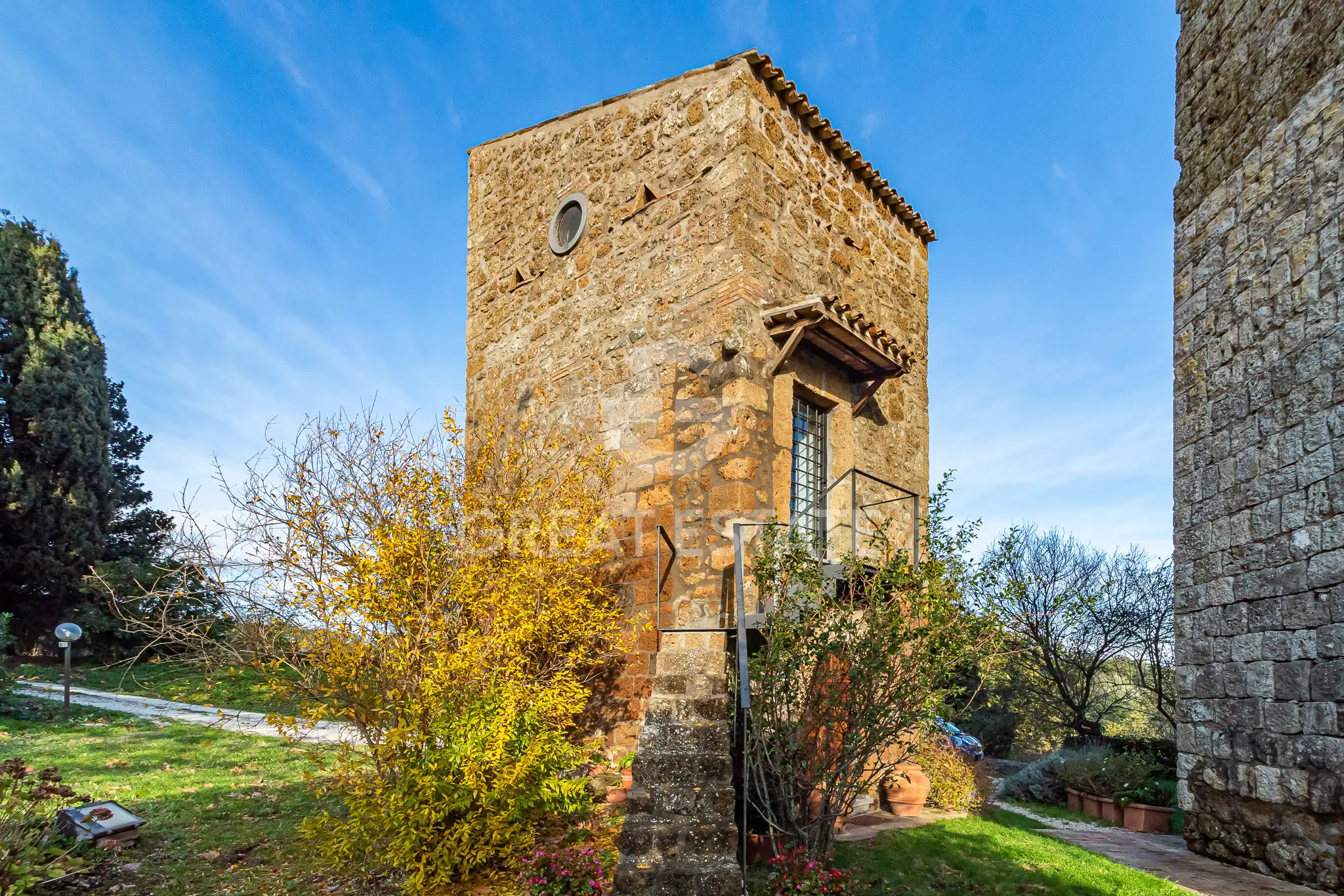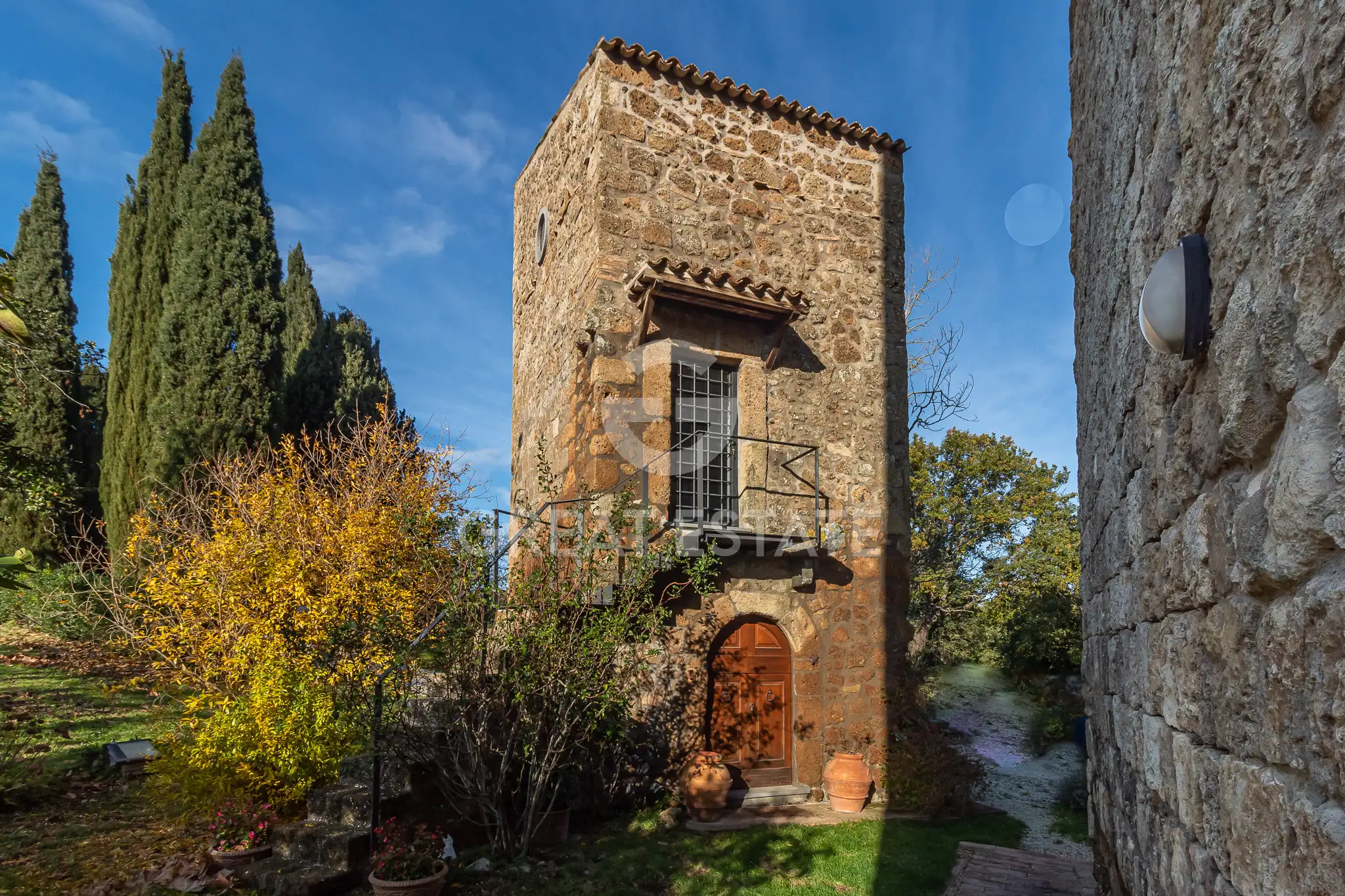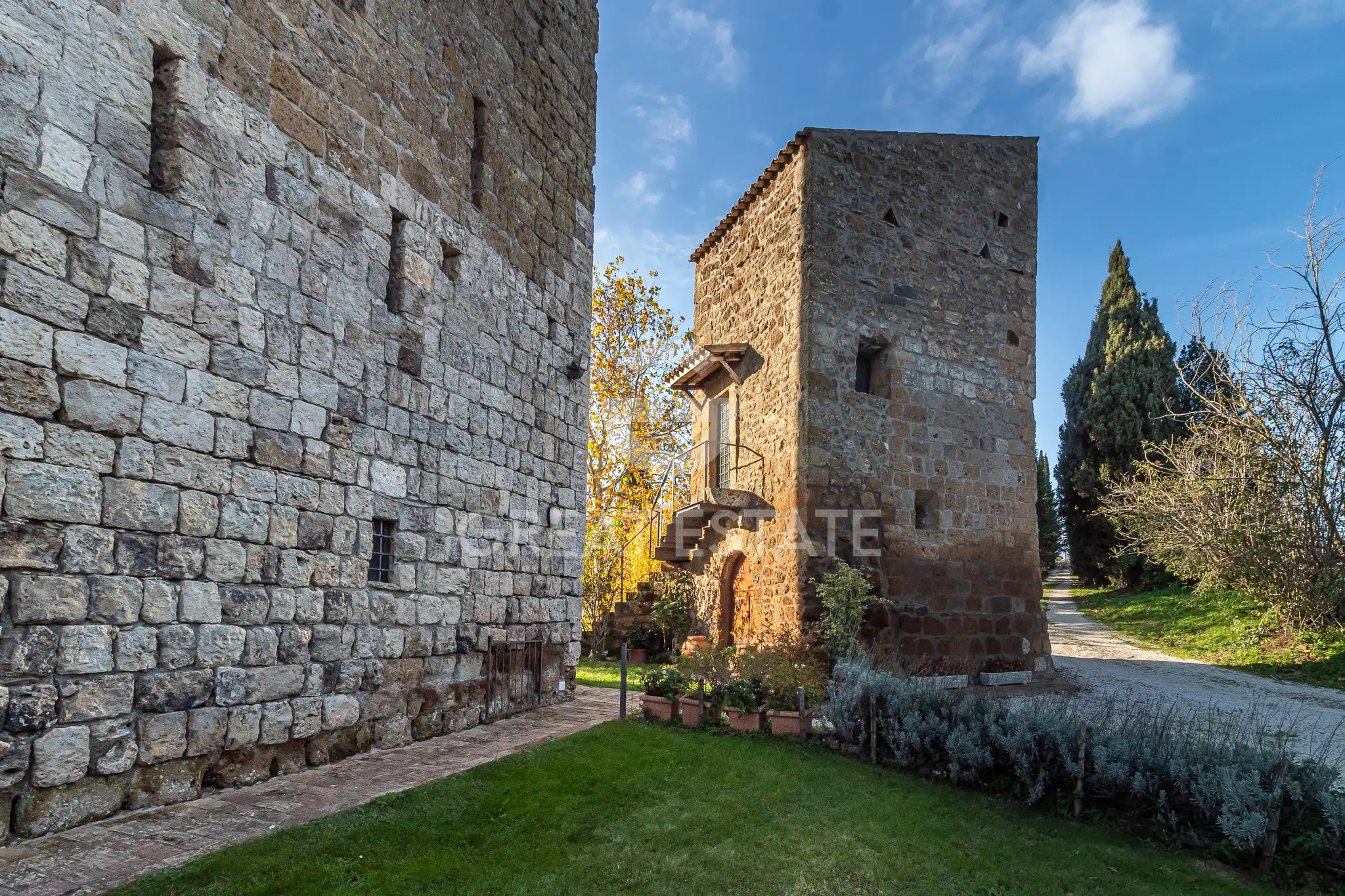 La Torre Longobarda can be reached via a short stretch of white road, which ends in an avenue of cypresses. You are immediately enchanted by the mighty charm of the ancient castle and by the tower that stands alone right next to the manor. The origin of the castle dates back to the V-VI century AD; it was then enlarged in the Longobard age and then restructured in the 11th century. The property consists of a large and comfortable apartment with loft, with triple access from the ground floor, and from the tower, arranged over 3 levels. The apartment is spread over a commercial area of about 249 square meters and consists of an entrance hall with a barrel vault and original ceiling, which opens onto a storage room and a marble bathroom with large shower. You are therefore at the heart of the house, the large living area with kitchen characterized by its impressive original high-vaulted ceiling. The fireplace is also majestic, which takes us back in time, as are the windows, niches and loopholes found in every room. Going up the wooden staircase we find the loft, used as a guest bedroom and complete with bathroom and shower. In the living area there is a beautiful tuff arch that leads to the large living area, dedicated to conviviality and equipped with an independent entrance from the shared garden. The room has many fascinating features: tuff niches of various shapes and sizes, a high ceiling in wood and handcrafted terracotta, a beautiful stone fireplace. Another arch leads to the hallway, where we find a laundry room and the master bedroom with en-suite bathroom and marble shower created in a large niche in the thick walls of the manor. At the end of the corridor there is another door that leads to the green space at the back of the house. Also included in the sale is the tower, arranged on three levels, for a total of 52 sqm. The ground floor is used for storage. The first level is accessed via the ancient external stone staircase and you find yourself in the living area also equipped with a sink and electric hob. Going up the stairs you reach the sleeping area with bathroom. Ingenious solutions similar to those adopted for boats have made it possible to make the most of the spaces, while preserving the ancient identity of the tower.