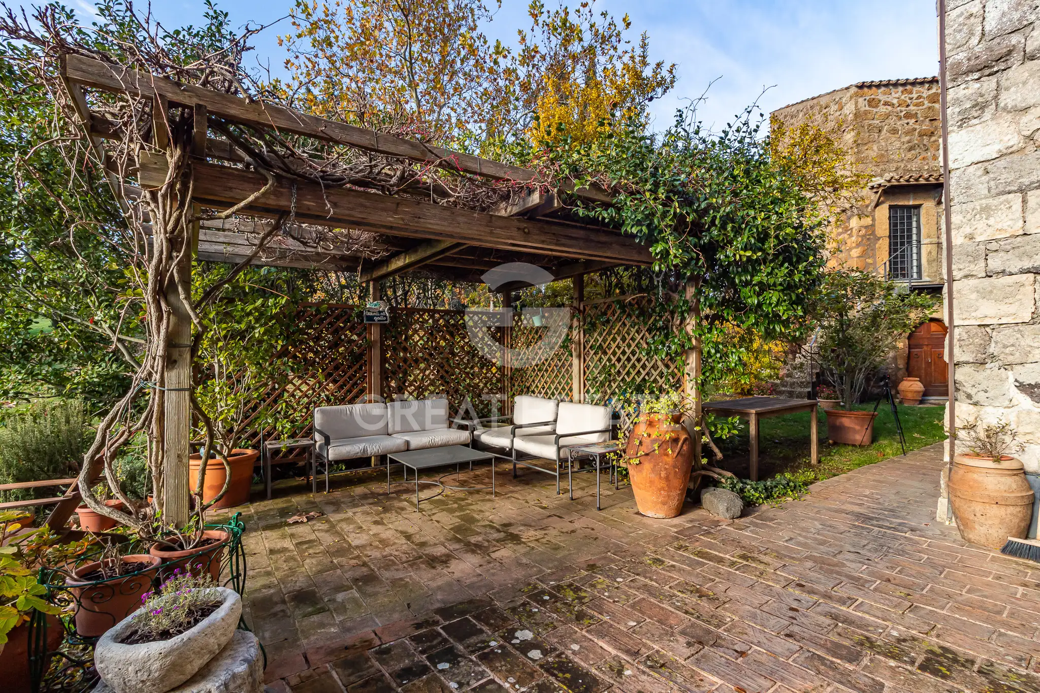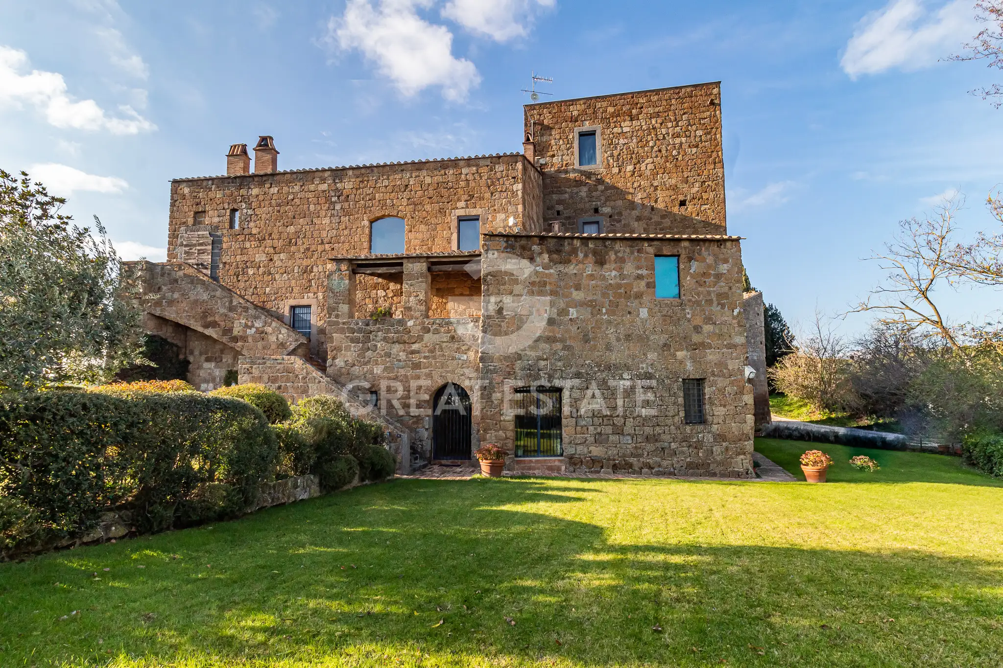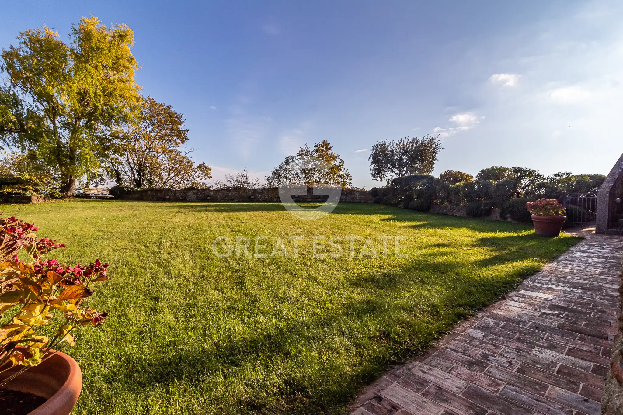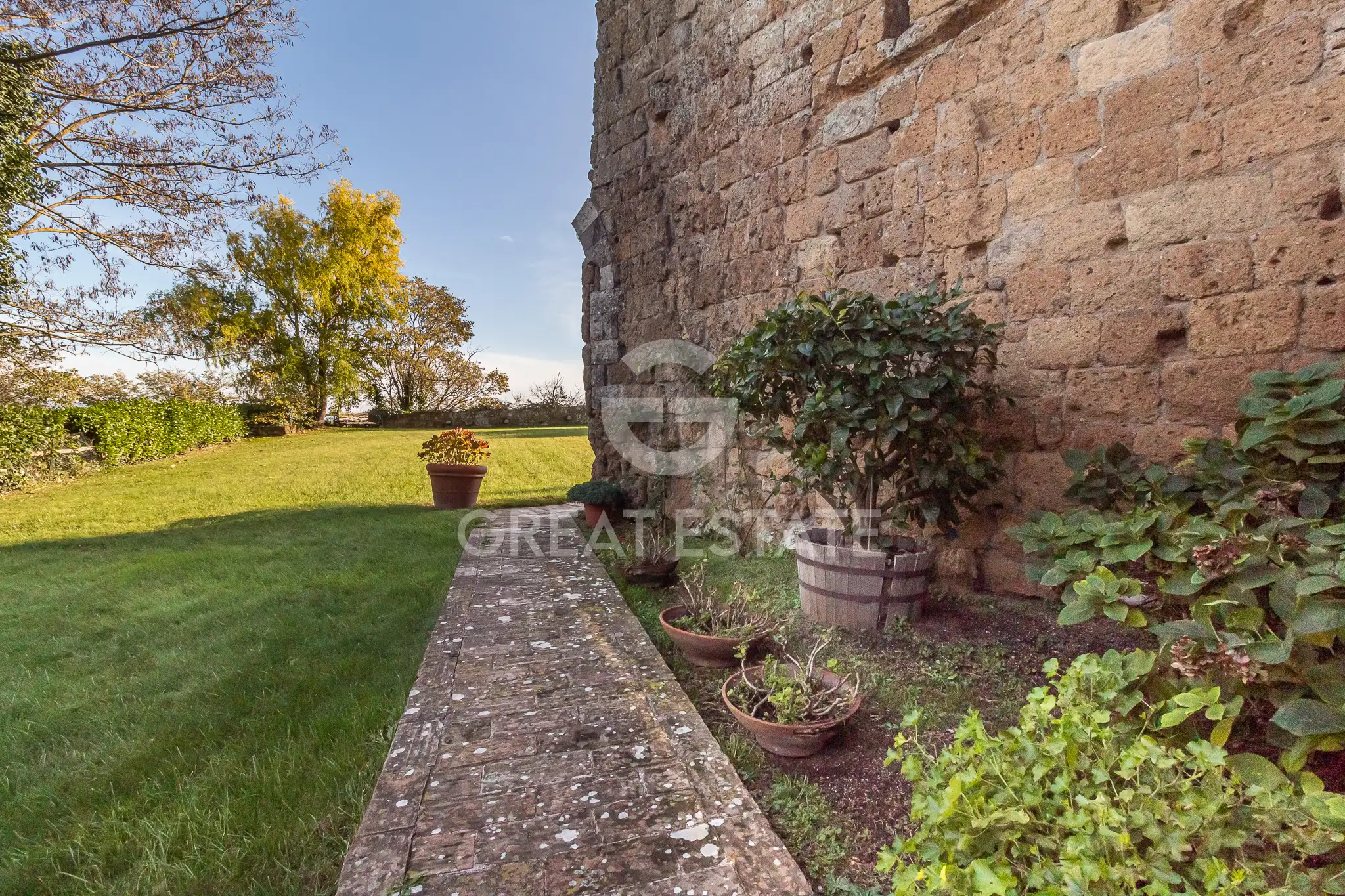 La Torre Longobarda can be reached via a short stretch of white road, which ends in an avenue of cypresses. You are immediately enchanted by the mighty charm of the ancient castle and by the tower that stands alone right next to the manor. The origin of the castle dates back to the V-VI century AD; it was then enlarged in the Longobard age and then restructured in the 11th century. The property consists of a large and comfortable apartment with loft, with triple access from the ground floor, and from the tower, arranged over 3 levels. The apartment is spread over a commercial area of about 249 square meters and consists of an entrance hall with a barrel vault and original ceiling, which opens onto a storage room and a marble bathroom with large shower. You are therefore at the heart of the house, the large living area with kitchen characterized by its impressive original high-vaulted ceiling. The fireplace is also majestic, which takes us back in time, as are the windows, niches and loopholes found in every room. Going up the wooden staircase we find the loft, used as a guest bedroom and complete with bathroom and shower. In the living area there is a beautiful tuff arch that leads to the large living area, dedicated to conviviality and equipped with an independent entrance from the shared garden. The room has many fascinating features: tuff niches of various shapes and sizes, a high ceiling in wood and handcrafted terracotta, a beautiful stone fireplace. Another arch leads to the hallway, where we find a laundry room and the master bedroom with en-suite bathroom and marble shower created in a large niche in the thick walls of the manor. At the end of the corridor there is another door that leads to the green space at the back of the house. Also included in the sale is the tower, arranged on three levels, for a total of 52 sqm. The ground floor is used for storage. The first level is accessed via the ancient external stone staircase and you find yourself in the living area also equipped with a sink and electric hob. Going up the stairs you reach the sleeping area with bathroom. Ingenious solutions similar to those adopted for boats have made it possible to make the most of the spaces, while preserving the ancient identity of the tower.