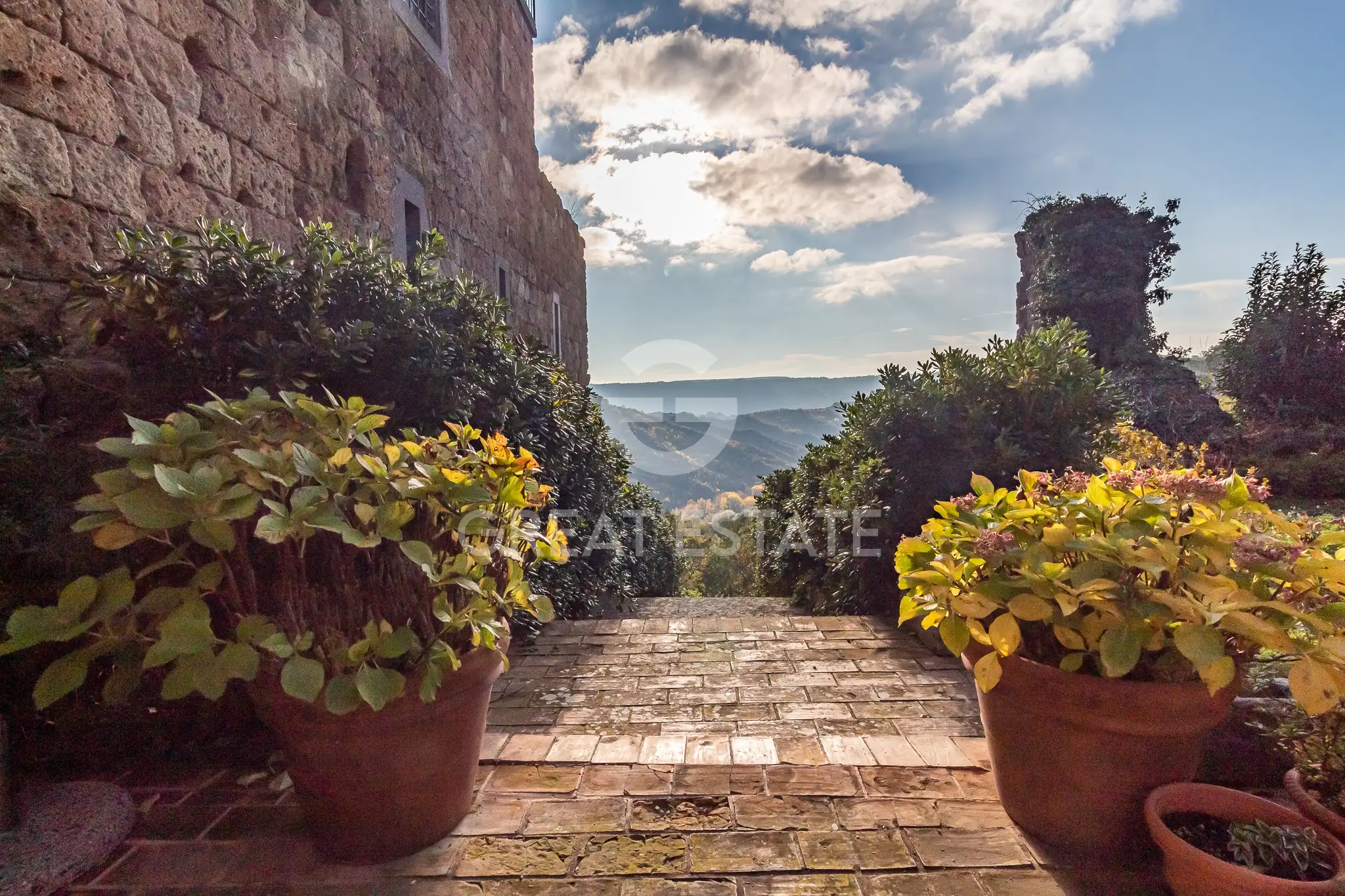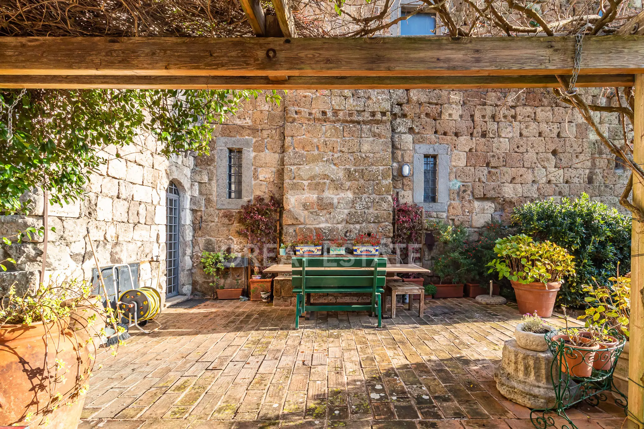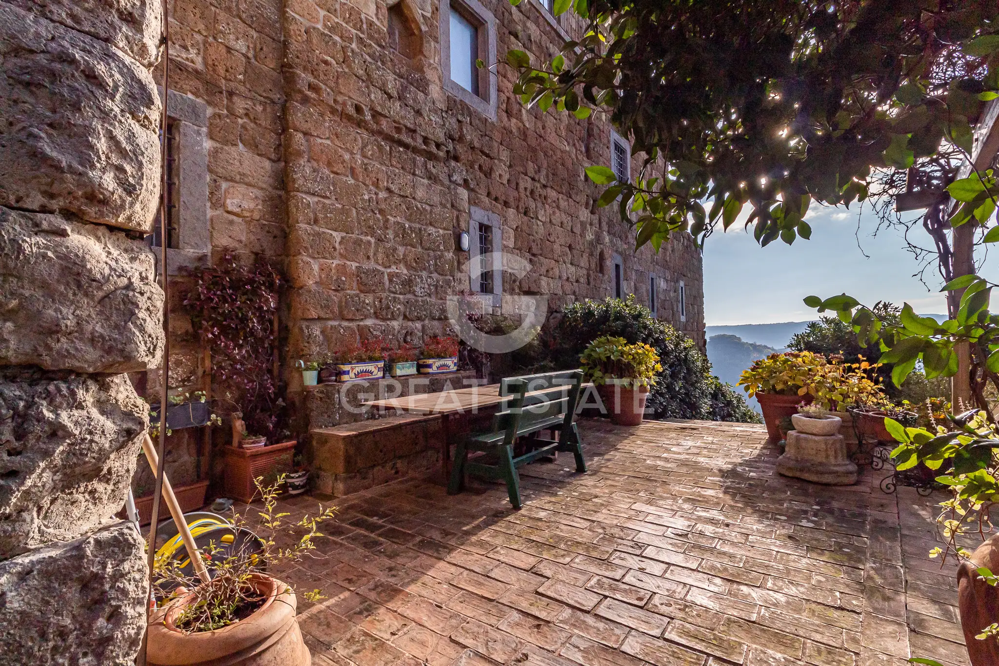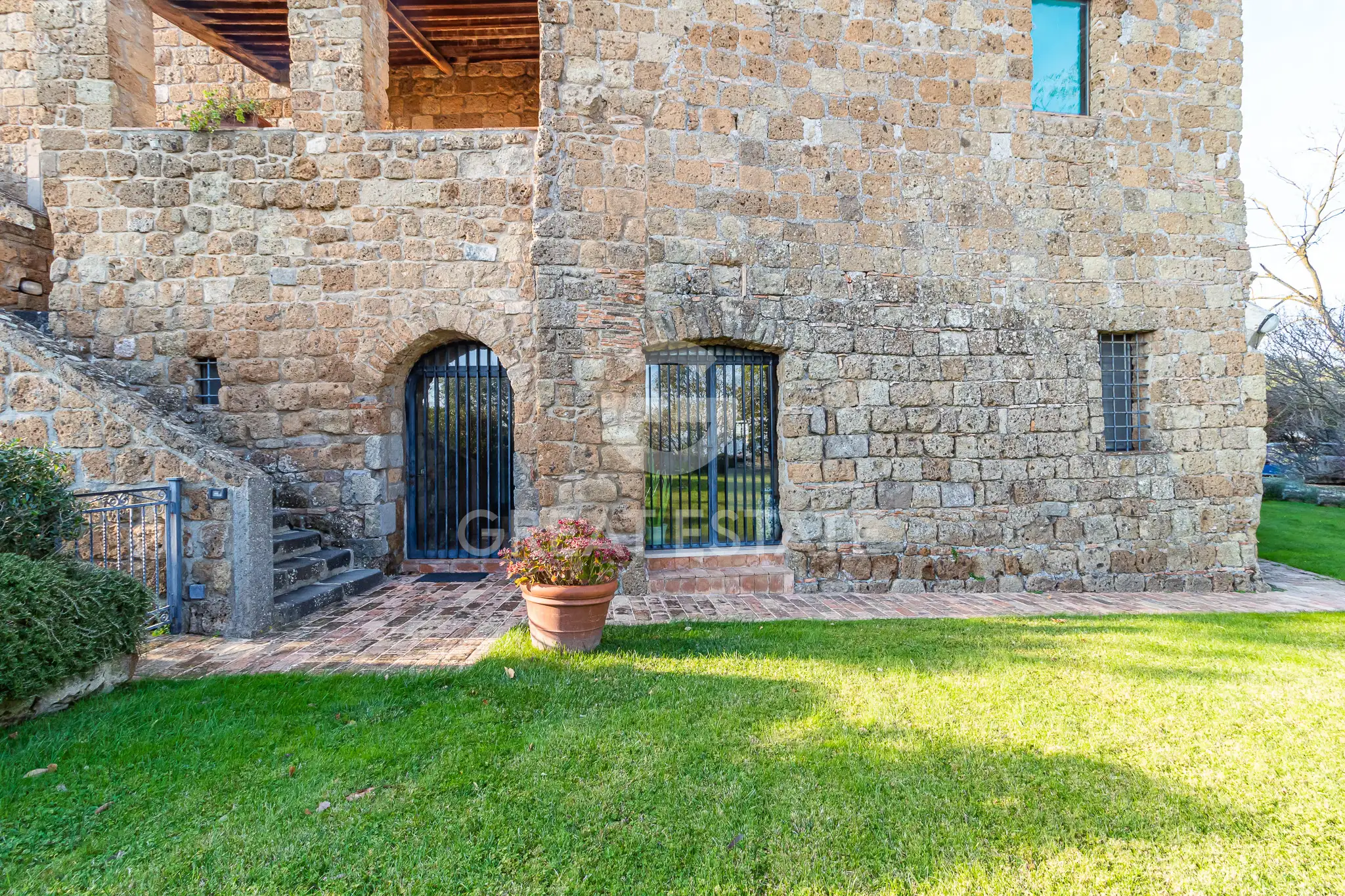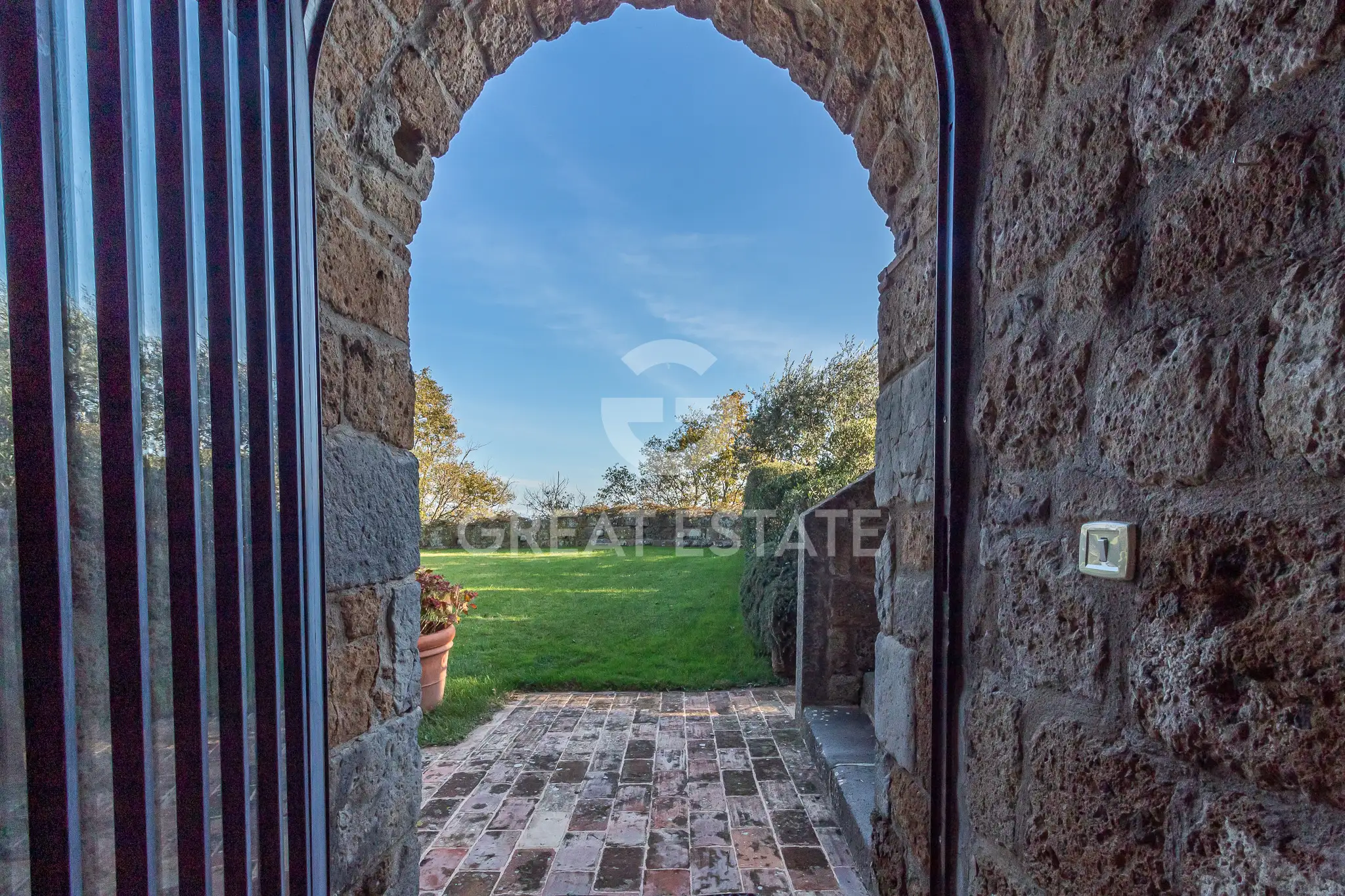La Torre Longobarda can be reached via a short stretch of white road, which ends in an avenue of cypresses. You are immediately enchanted by the mighty charm of the ancient castle and by the tower that stands alone right next to the manor. The origin of the castle dates back to the V-VI century AD; it was then enlarged in the Longobard age and then restructured in the 11th century. The property consists of a large and comfortable apartment with loft, with triple access from the ground floor, and from the tower, arranged over 3 levels. The apartment is spread over a commercial area of about 249 square meters and consists of an entrance hall with a barrel vault and original ceiling, which opens onto a storage room and a marble bathroom with large shower. You are therefore at the heart of the house, the large living area with kitchen characterized by its impressive original high-vaulted ceiling. The fireplace is also majestic, which takes us back in time, as are the windows, niches and loopholes found in every room. Going up the wooden staircase we find the loft, used as a guest bedroom and complete with bathroom and shower. In the living area there is a beautiful tuff arch that leads to the large living area, dedicated to conviviality and equipped with an independent entrance from the shared garden. The room has many fascinating features: tuff niches of various shapes and sizes, a high ceiling in wood and handcrafted terracotta, a beautiful stone fireplace. Another arch leads to the hallway, where we find a laundry room and the master bedroom with en-suite bathroom and marble shower created in a large niche in the thick walls of the manor. At the end of the corridor there is another door that leads to the green space at the back of the house. Also included in the sale is the tower, arranged on three levels, for a total of 52 sqm. The ground floor is used for storage. The first level is accessed via the ancient external stone staircase and you find yourself in the living area also equipped with a sink and electric hob. Going up the stairs you reach the sleeping area with bathroom. Ingenious solutions similar to those adopted for boats have made it possible to make the most of the spaces, while preserving the ancient identity of the tower.