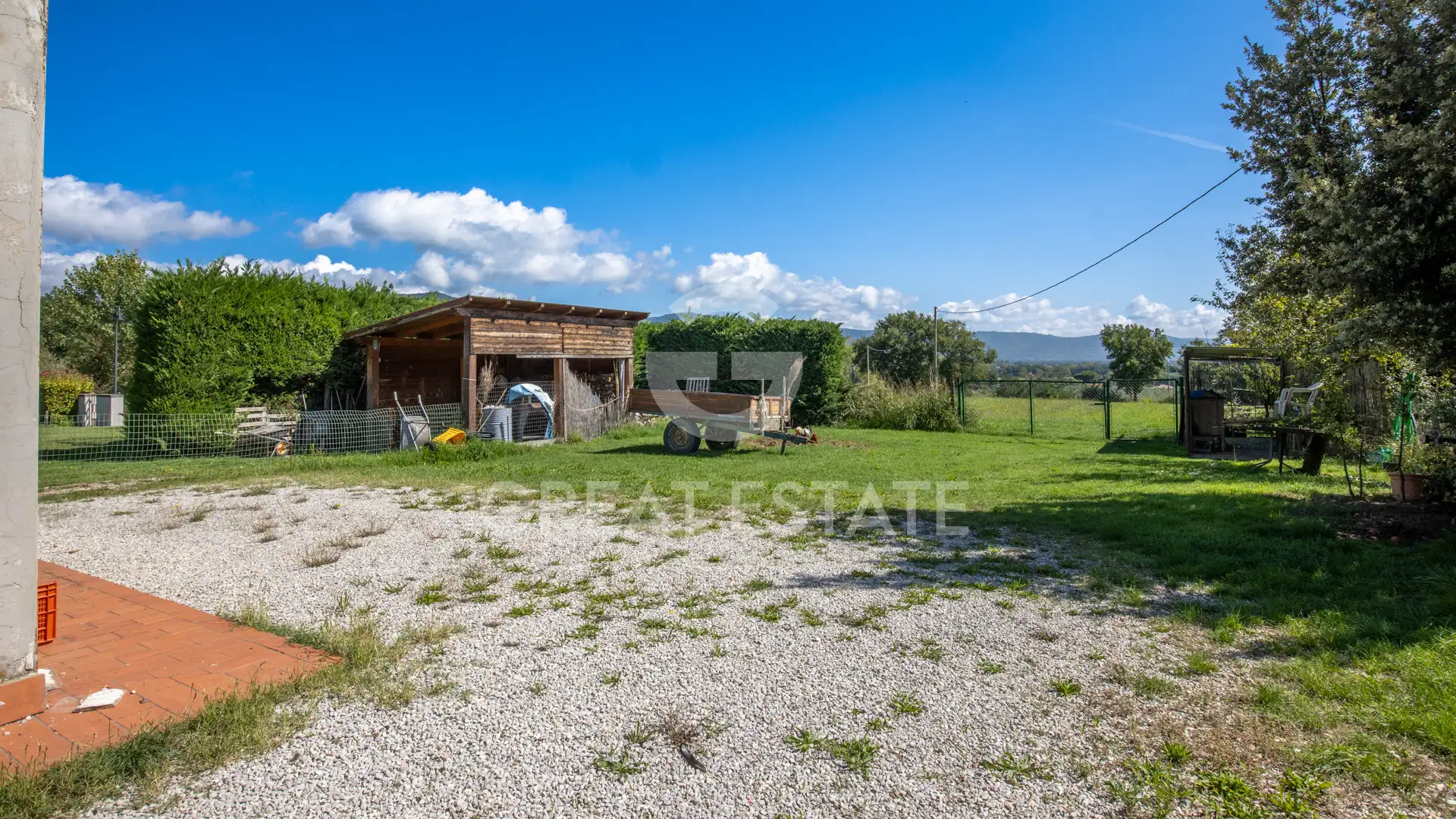 Access to the property is via an asphalt road leading to a spacious, well-maintained private garden with great potential. The farmhouse presents itself as a historic volume, characterized by architectural elements typical of its era, featuring masonry walls and distinctive openings that enhance the southeast/southwest exposure, ensuring consistent natural light throughout the day.