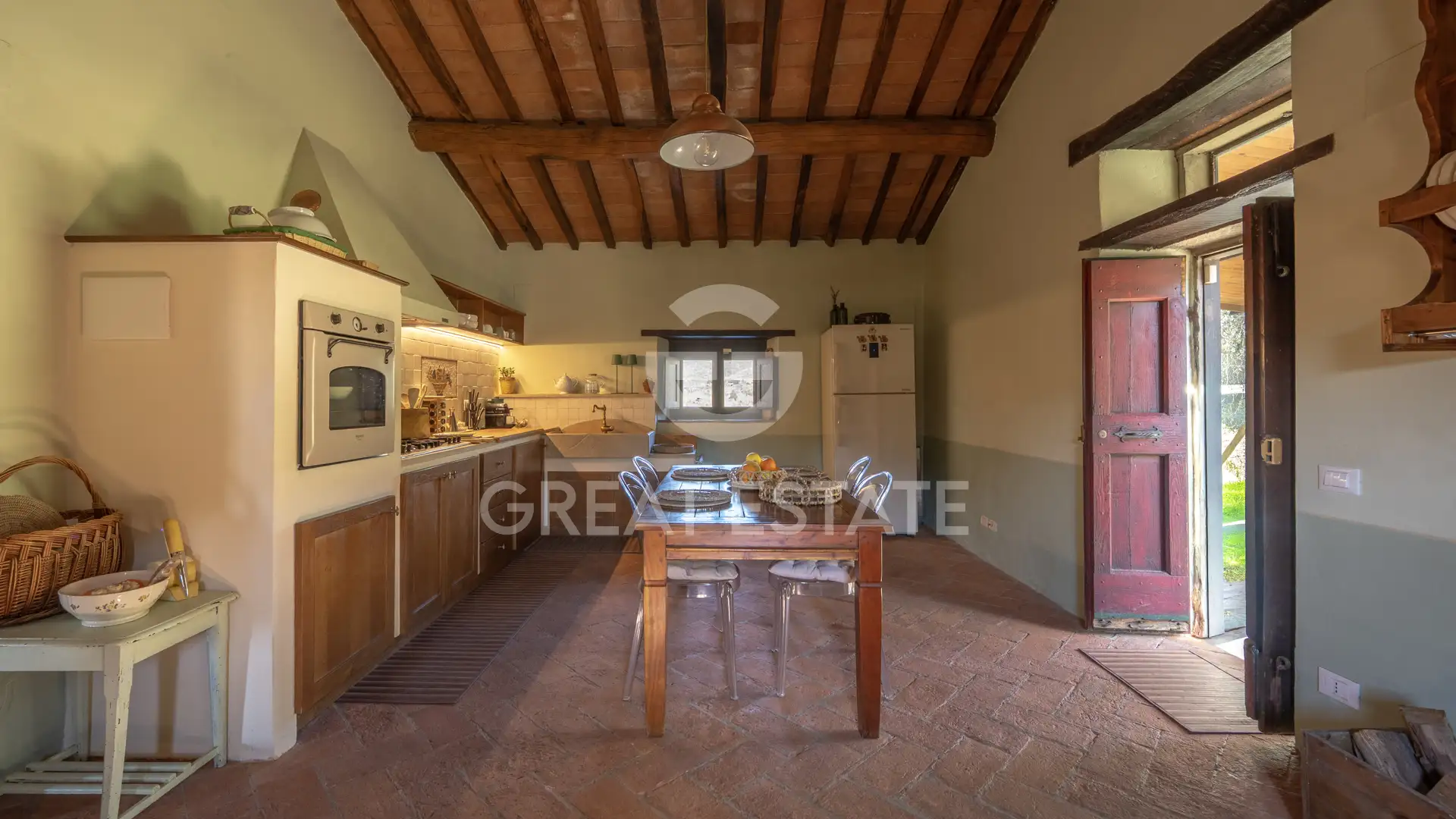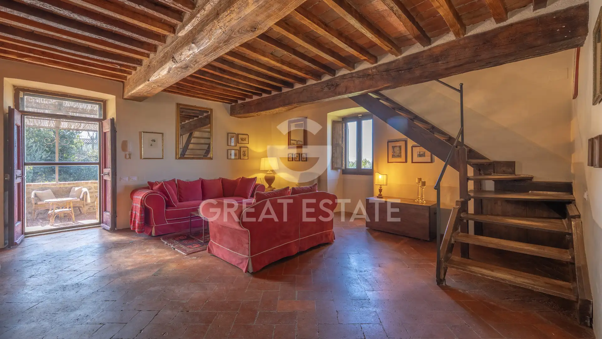 Externally, the property is surrounded by approximately 3,035 sqm of well maintained garden, enhanced by terraced areas with centuries old olive trees that narrate the passage of time through their silent presence; several flat areas are perfectly suited for the construction of a swimming pool, from which to enjoy enchanting sunsets over the surrounding hills.