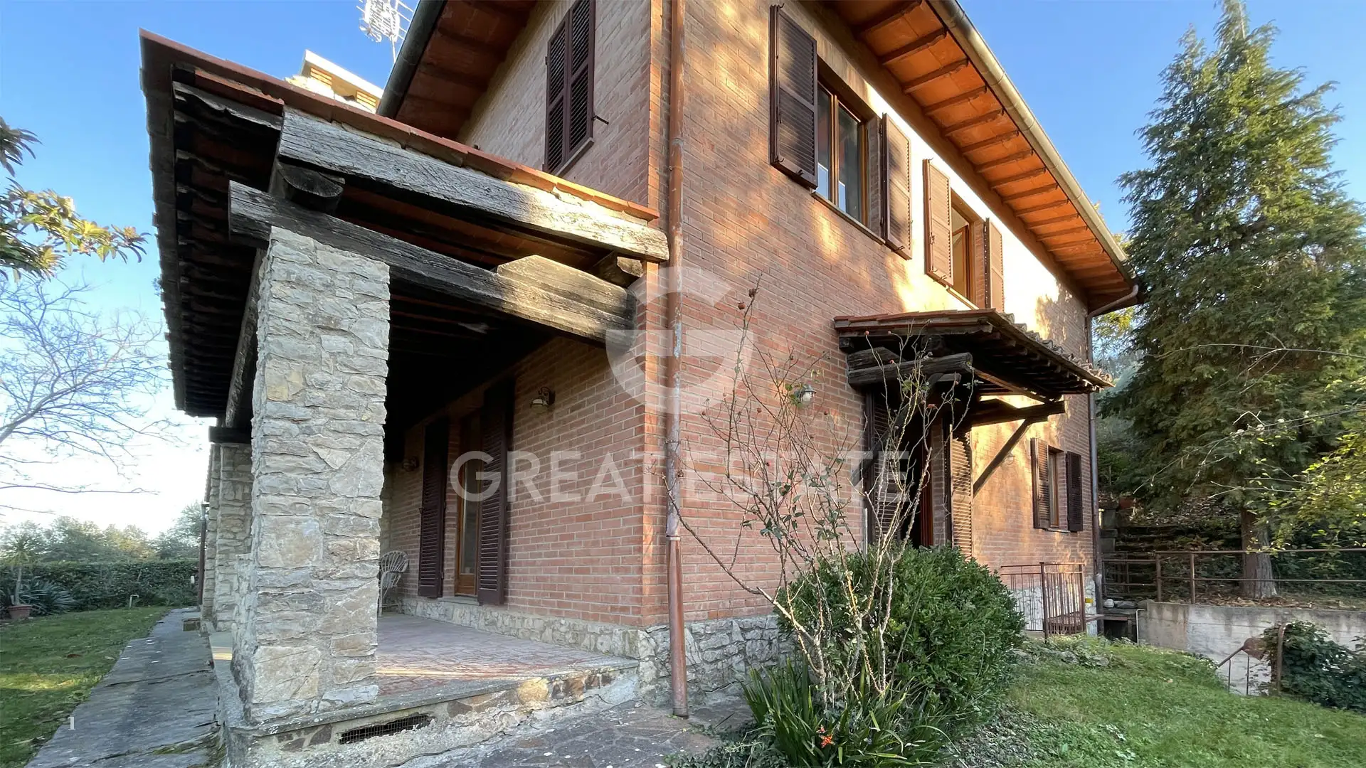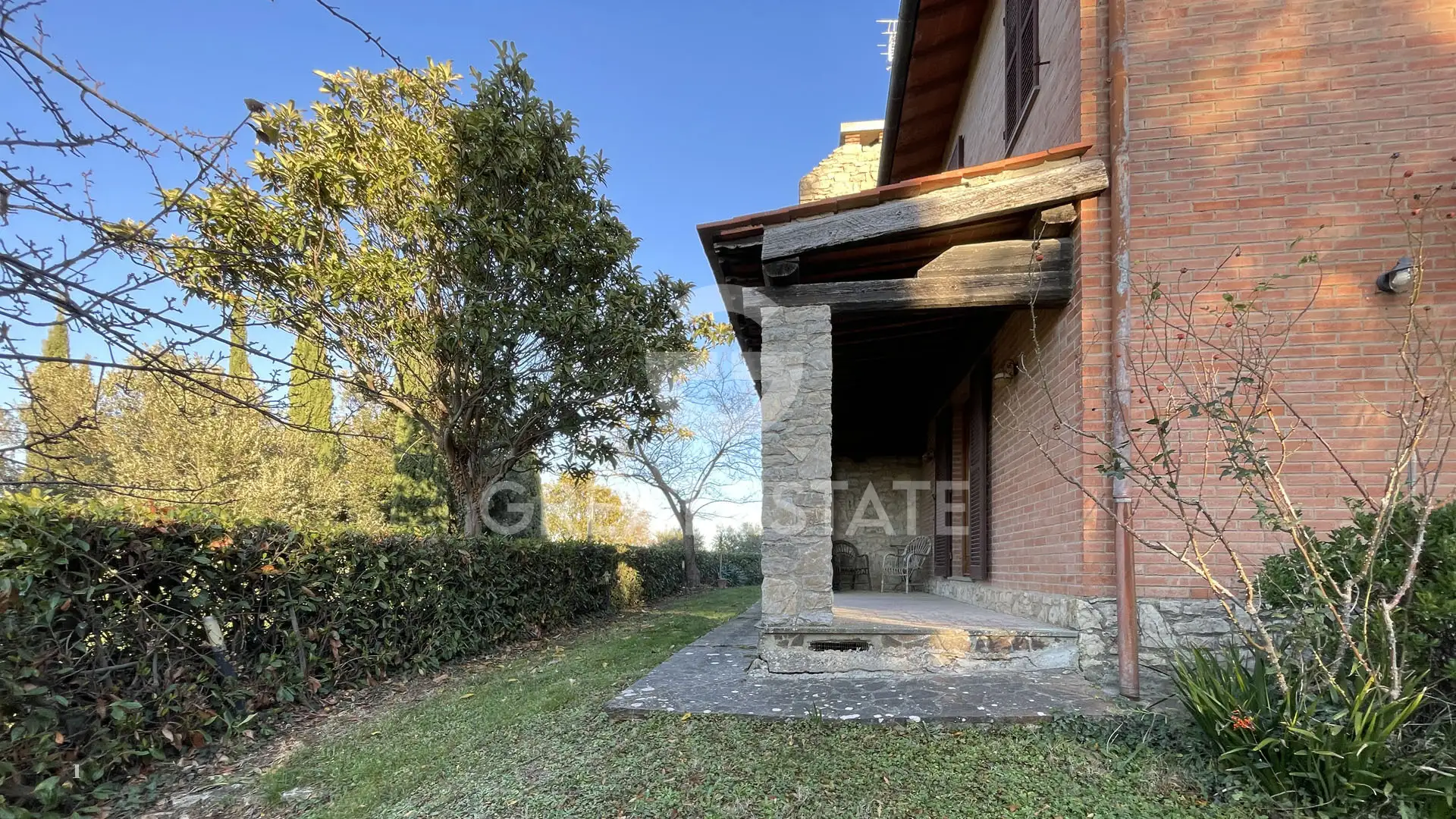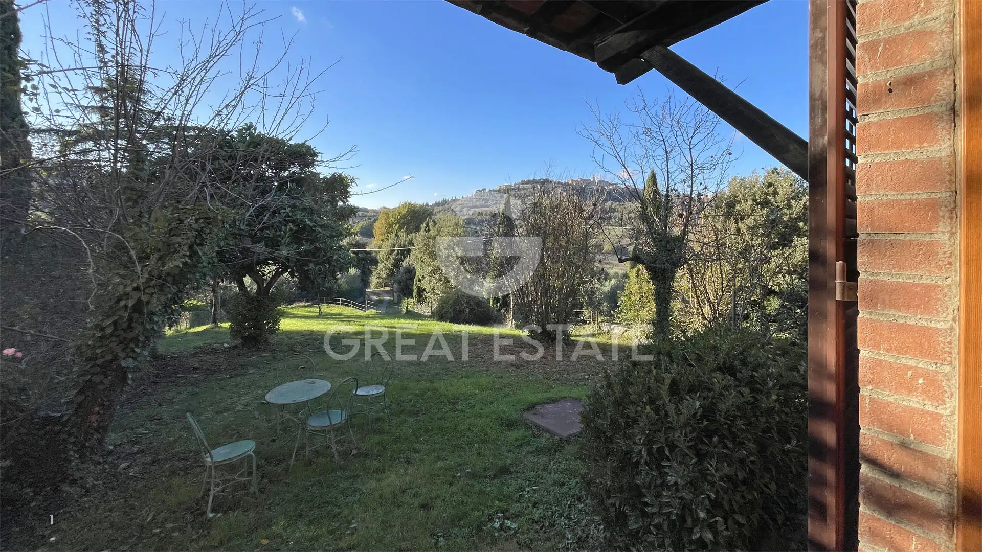 This charming property enjoys an ideal location, just a short walk from all main services, while offering the peace and allure of the Tuscan countryside, with splendid views over Montepulciano. The residence spans a total surface area of 354 sq m arranged over two levels, in addition to a basement level housing a spacious 87 sq m garage. On the ground floor, a generous entrance welcomes you and leads to a bright living room with two external accesses, one of which opens directly onto the portico, a dining room that is also filled with natural light and features two exits to the garden, one overlooking a second portico ideal for al fresco lunches and dinners, a kitchen, a bedroom, and a bathroom. The first floor hosts an additional living area with a large lounge and dining space, a kitchen, and a storage room; these rooms offer the possibility of dividing the property into two independent residential units, as well as a sleeping area comprising four bedrooms, one of which includes an en-suite bathroom, and a second bathroom serving the remaining bedrooms. The basement level features the 87 sq m garage with a technical room and a characteristic cellar area. The property is completed by an external annex, once used as stables, which retains the charm of traditional Tuscan rural structures. Finally, the estate is surrounded by a private park of approximately 2,045 sq m, perfect for relaxation and for fully enjoying summer days in complete privacy.