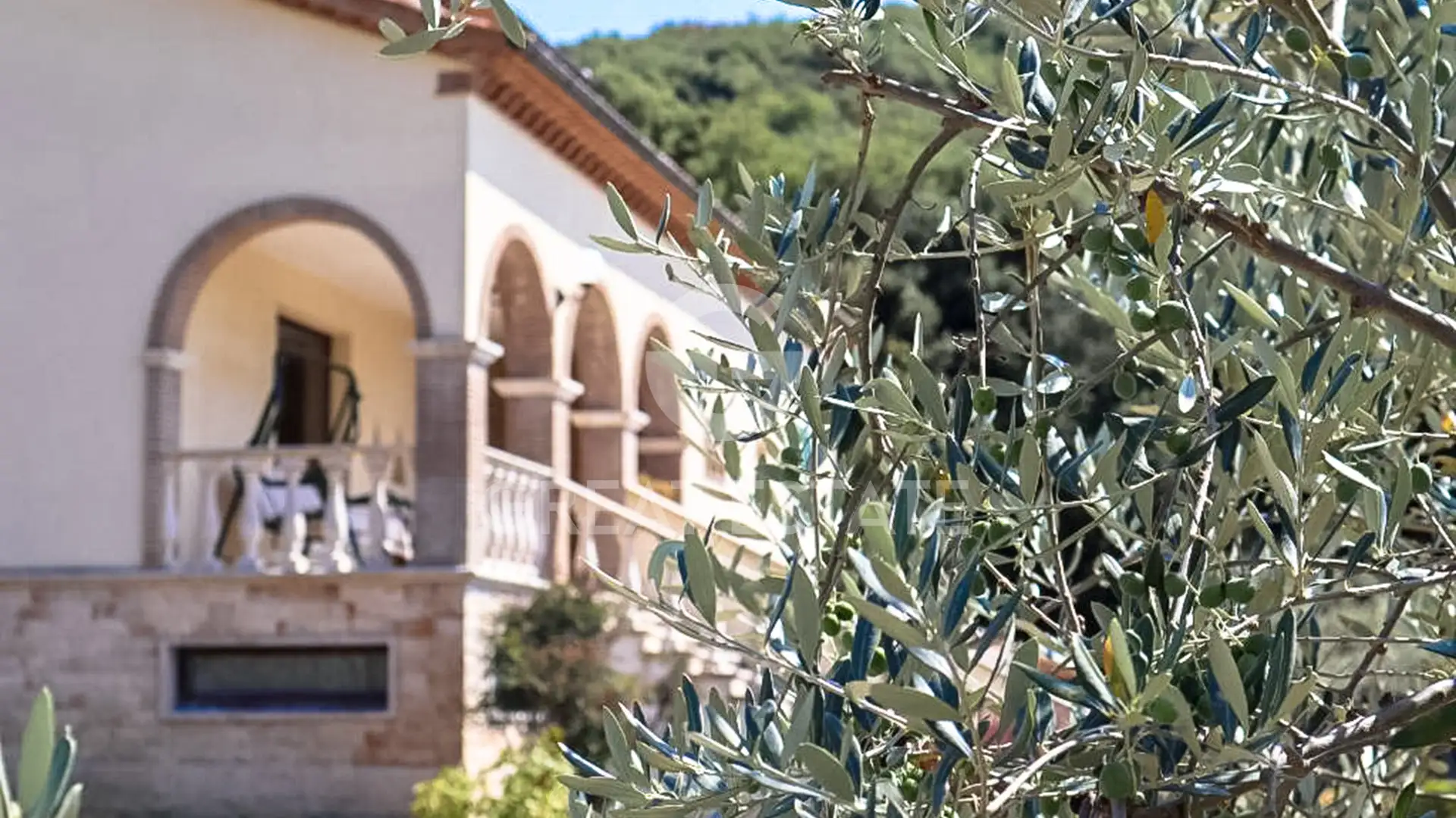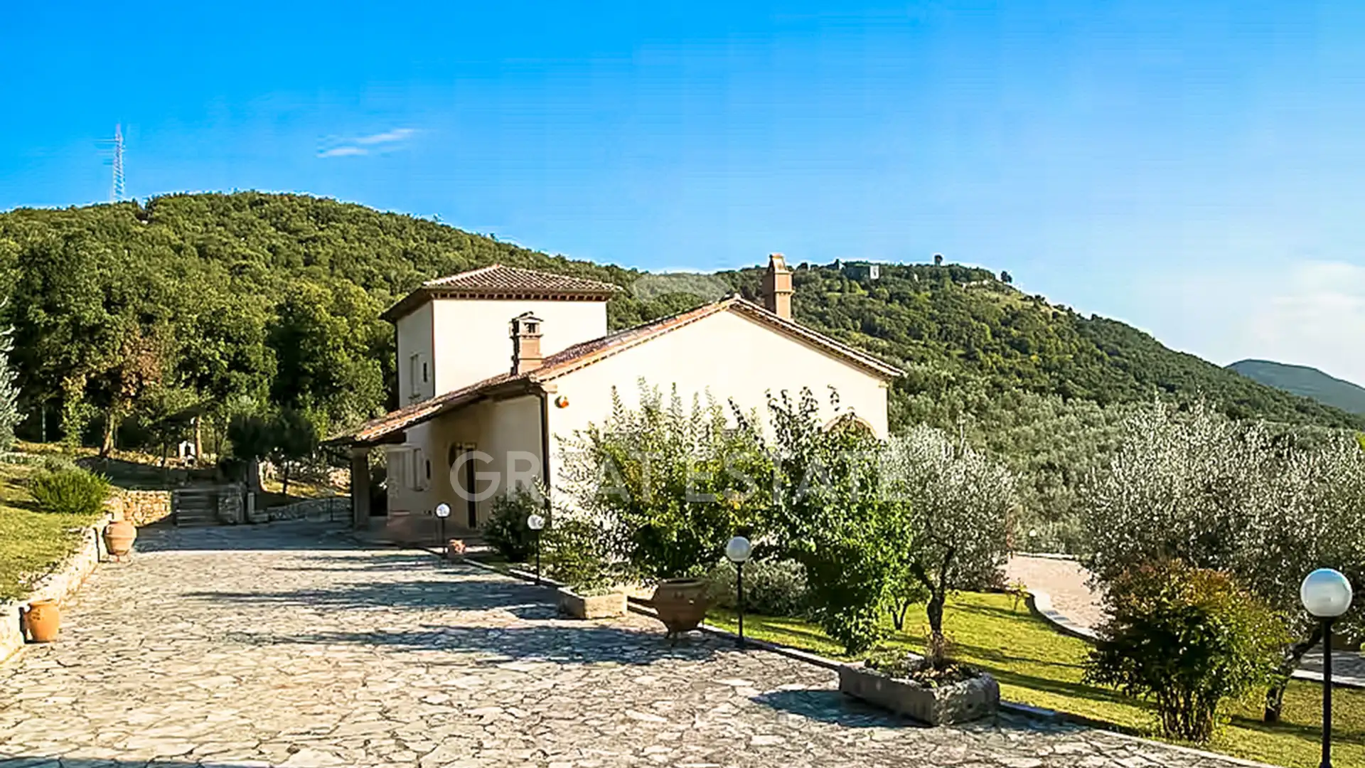 Stunning panoramic villa located near the charming village of Guardea, in a dominant and private position, immersed in the peaceful Umbrian countryside among rolling hills, olive groves, and unspoiled nature. The excellent exposure ensures natural light throughout the day and offers enchanting open views over the surrounding landscape, with sunsets of rare beauty.