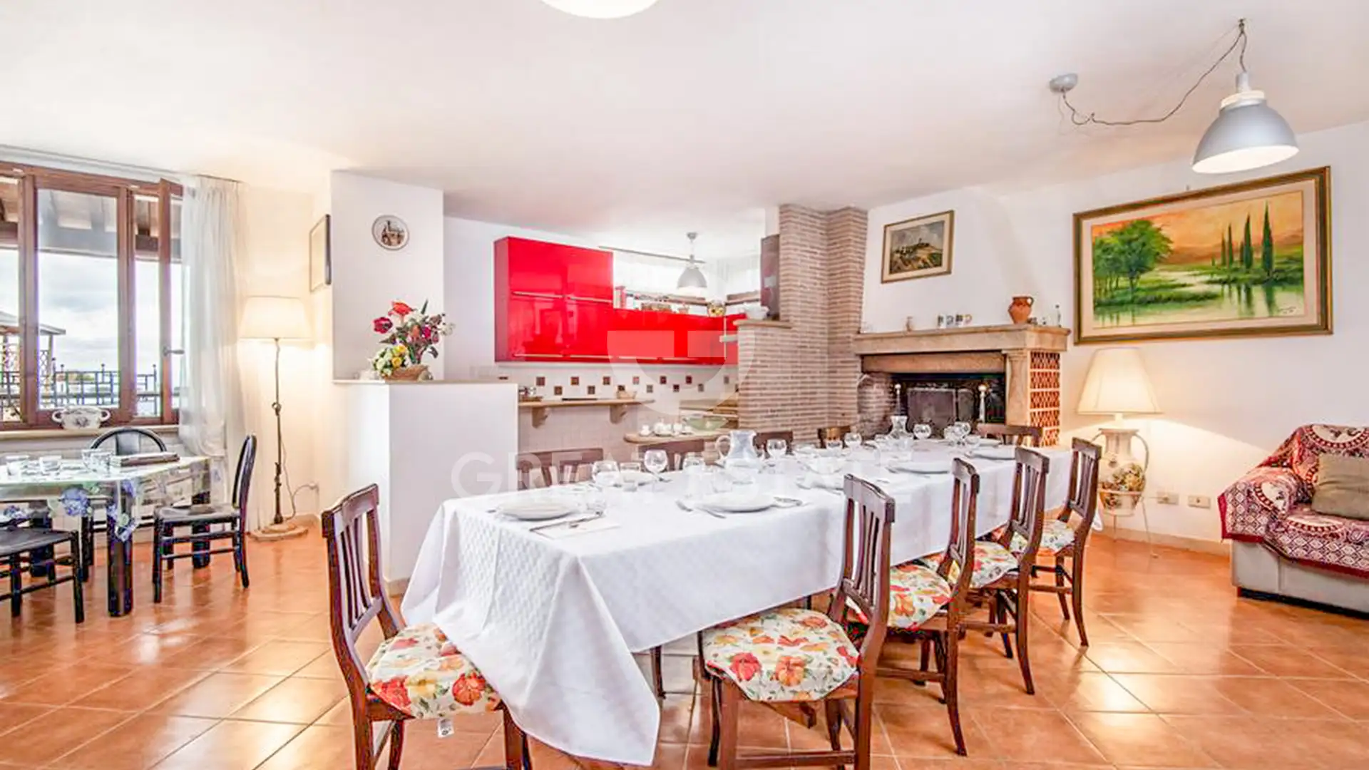 The ground floor, accessible both via an internal staircase and through an independent external entrance, hosts a large and particularly bright reception hall, as well as two bedrooms, each with its own en suite bathroom, designed to ensure comfort and privacy.
