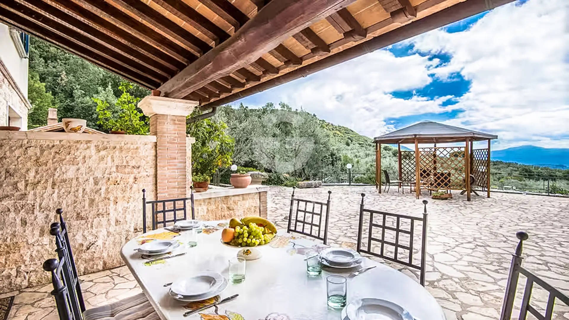 Externally, the villa is surrounded by a private park of approximately 3,800 sqm, well maintained and enriched with olive trees, ensuring privacy and direct contact with nature. Within the garden, a scenic bean-shaped swimming pool of about 72 sqm blends harmoniously into the setting, perfect for relaxing on summer days while enjoying the tranquility and open views over the hills.