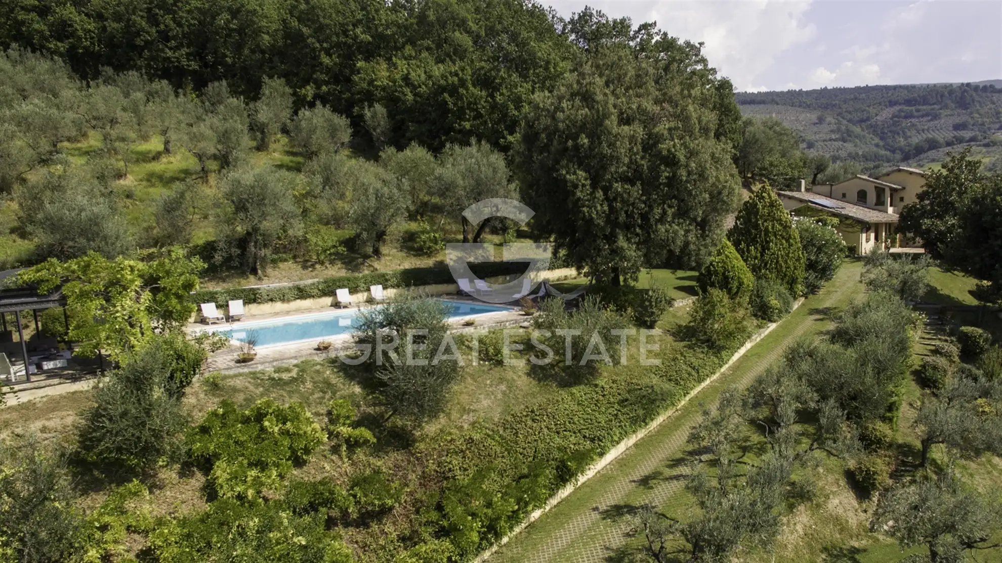 From the main entrance, you enter a large hall divided into a living area with an elegant stone fireplace and dining area. The living room leads to the eat-in kitchen with direct access to the cool external pergola with table and chairs, wood-burning oven and laundry room. At the end of the living room there is a double bedroom, an adjacent bathroom with shower and a flight of brick stairs that leads to the first floor, consisting of a master bedroom with fireplace, a panoramic balcony, a large dressing room with wardrobes and a splendid bathroom with bathtub and shower. Going back to the living area, an internal staircase leads to the lower floor composed of a bright living room with fireplace and direct access also from the garden, kitchen with dining area and porch equipped with table and chairs, a further double bedroom and adjacent bathroom with shower, a double bedroom with en-suite bathroom with shower.