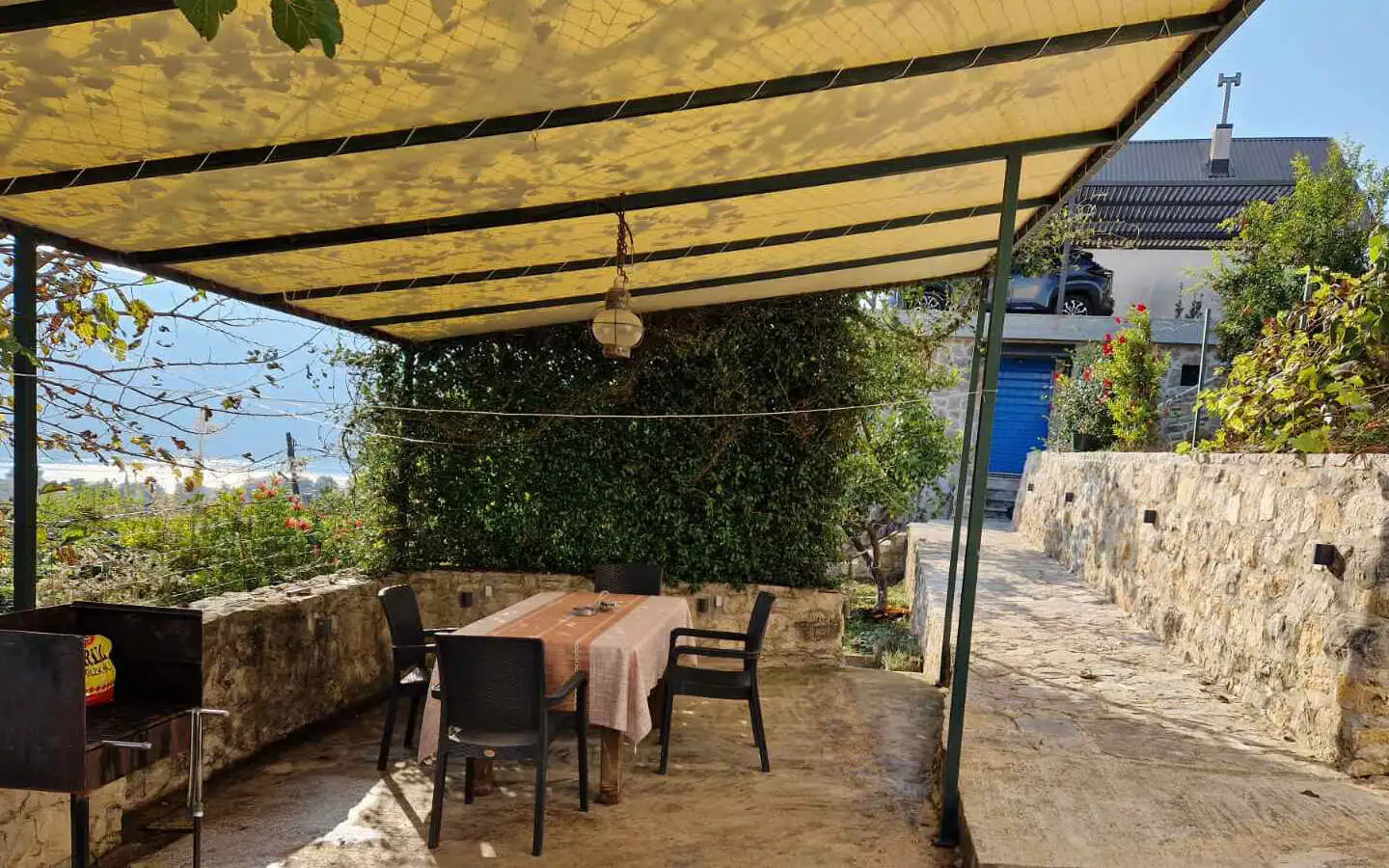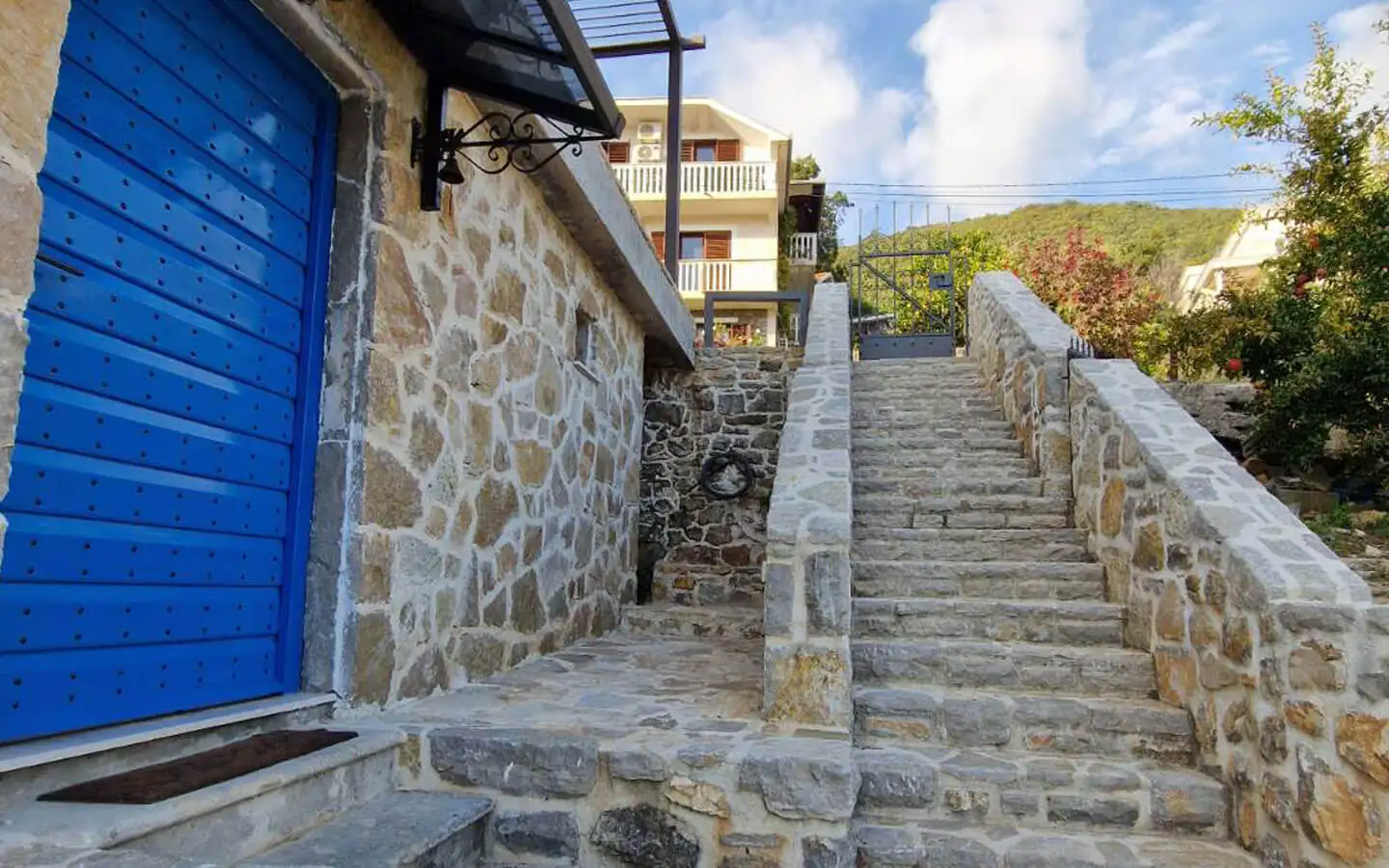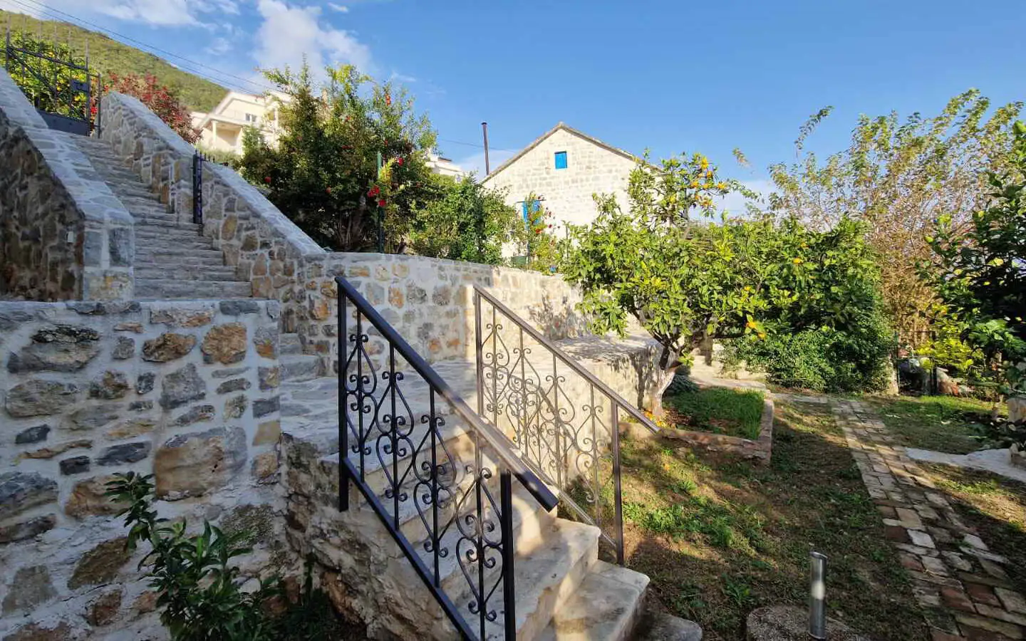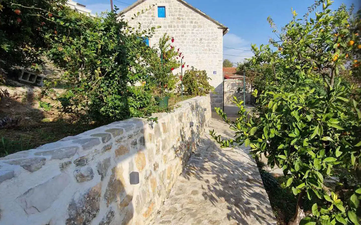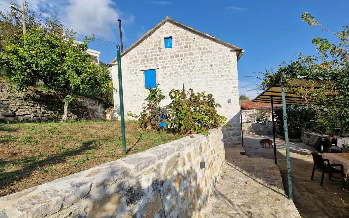 Set on a spacious 538 m2 plot, the property includes a traditional stone main house and a fully renovated studio apartment, combining authentic character with immediate usability.
