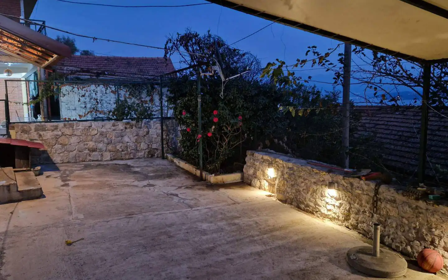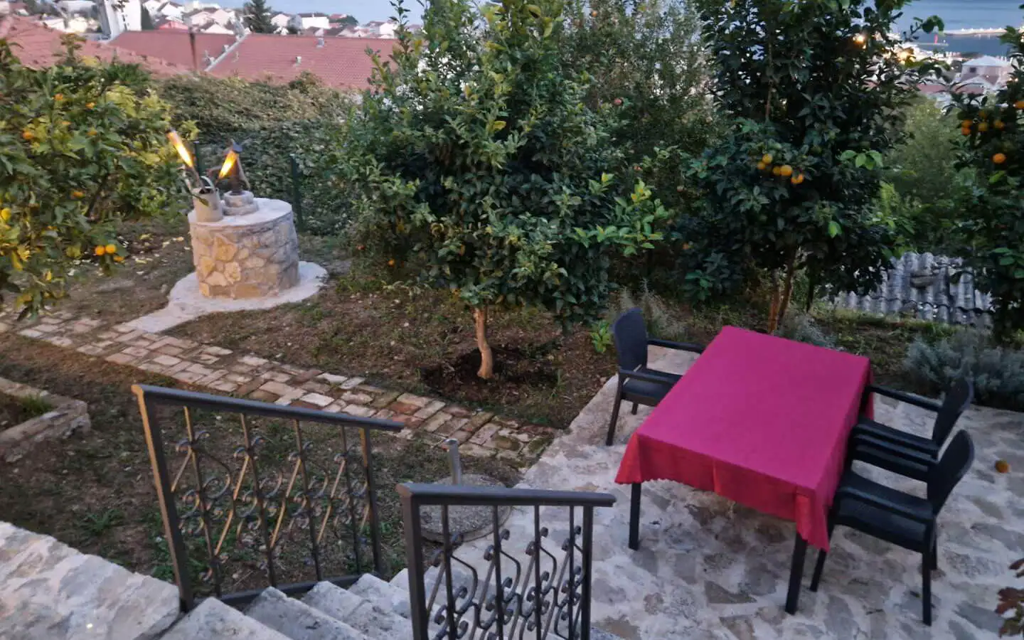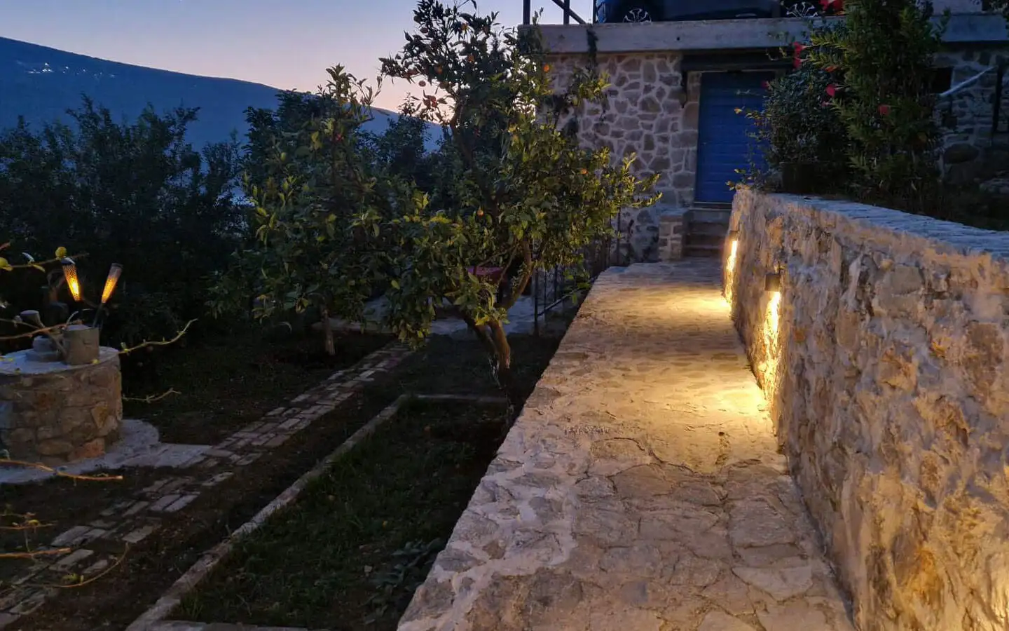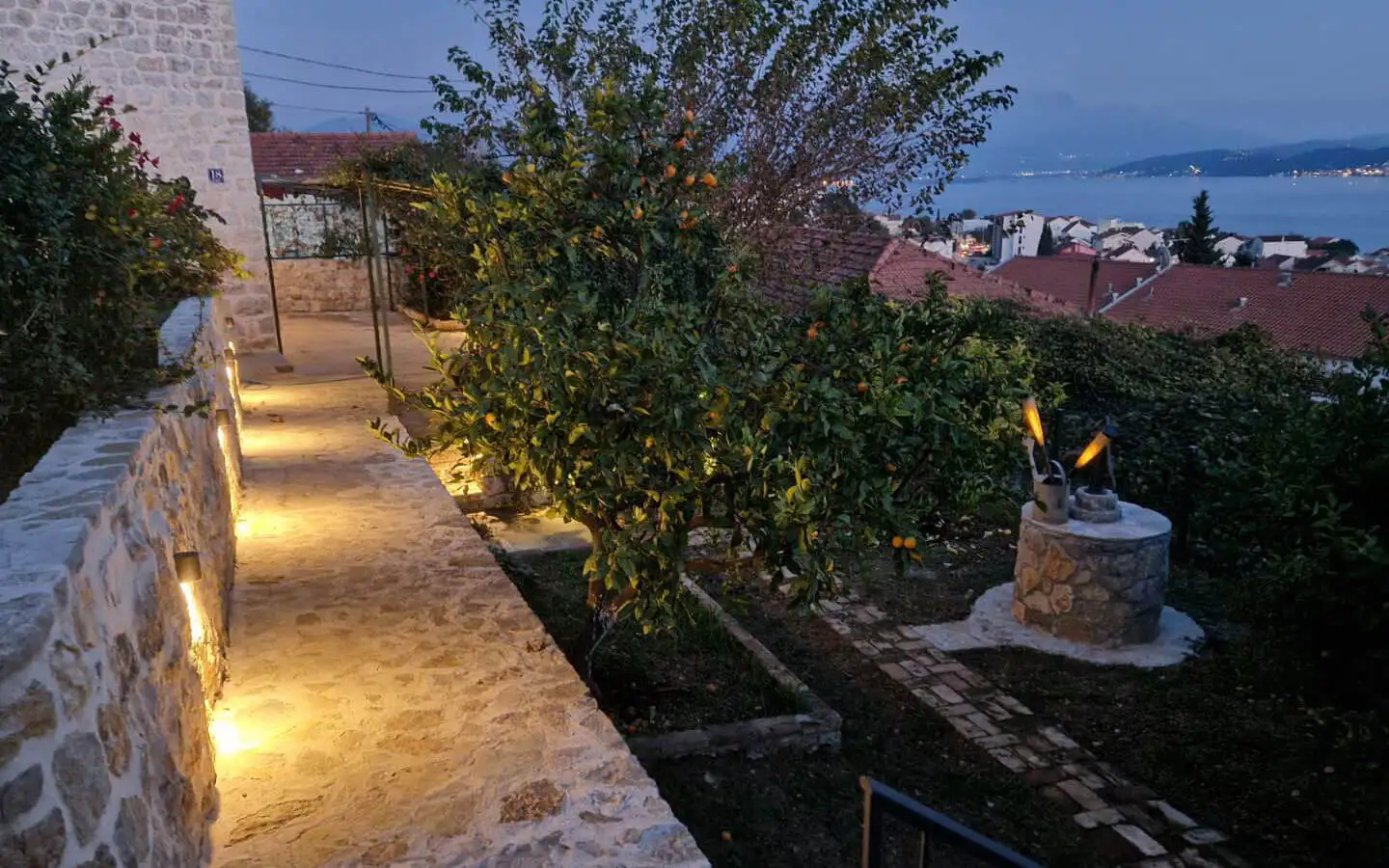 The property is surrounded by a beautiful Mediterranean garden with fruit trees, creating a peaceful and authentic coastal atmosphere. There is a landscaped yard with greenery and natural shade, a traditional stone well that adds charm and historical character, and a terrace with stunning sea views, perfect for relaxing and entertaining with family and friends.