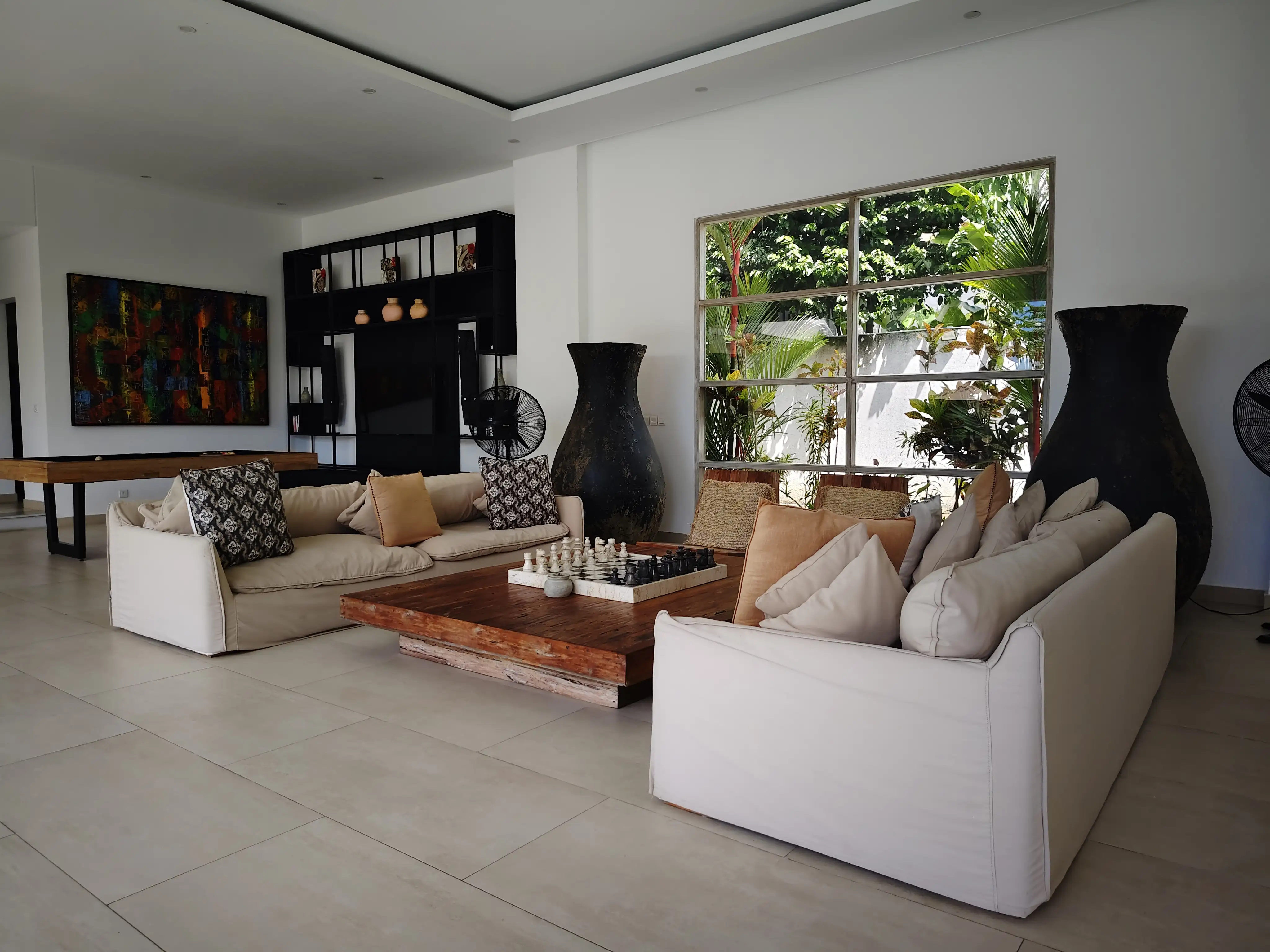 This exclusive twin-villa estate presents two fully furnished private residences offered as one complete package on a spacious 1,277 sqm plot, delivering an attractive blend of comfort, functionality, and resort-style living. The first villa features three bedrooms with ensuite bathrooms and a total building size of 200 sqm, while the second villa offers four bedrooms with ensuite bathrooms and a 400 sqm building size. Each villa is thoughtfully designed with an open-plan living area, a fully equipped kitchen set, and its own private pool with a dedicated sun lounge, creating a relaxed and inviting atmosphere for guests. Additional conveniences such as private parking for cars and motorbikes further enhance the practicality and operational readiness of this dual-villa setup.