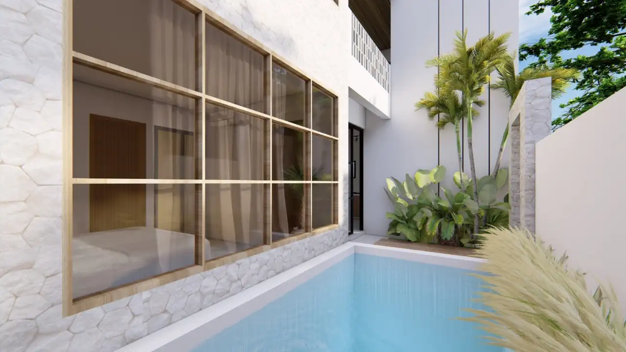 Located at Bali’s most sought-after southern tip, in the tranquil area of Kutuh-Pandawa, this exclusive villa complex offers an unparalleled opportunity to own a piece of paradise. The complex consists of five units: four one-bedroom villas and one expansive three-bedroom villa, all designed with elegance, comfort, and privacy in mind. Set on a generous 330 sqm land, with a total building size of 420 sqm, this off-plan property is offered at a competitive price of USD 580,000, for all units in one complex but possible to purcahese for one unit with the leasehold valid until 2050. Each of the one-bedroom villas (lower and middle elevations) offers an intimate living space with an ensuite bathroom, air conditioning, private pool, and an enclosed living area. The three-bedroom villa, located at the high elevation, boasts panoramic ocean views from its expansive rooftop entertainment area, offering an ideal space for relaxation and entertaining guests.