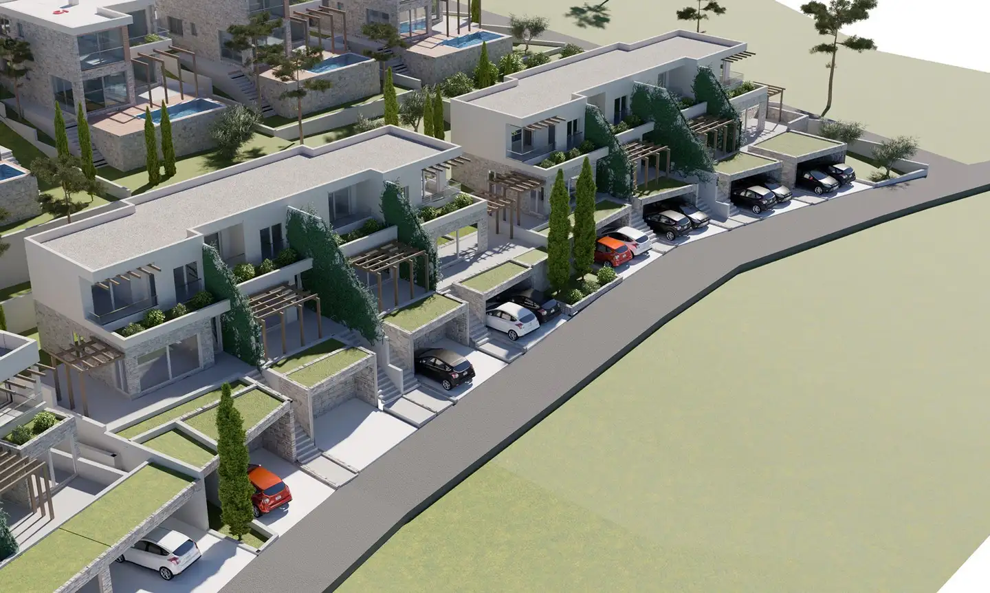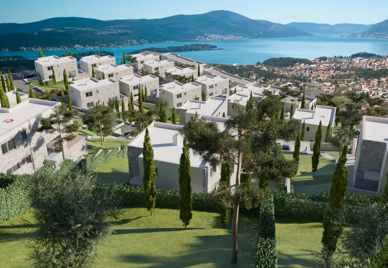 Set amidst lush greenery and offering stunning panoramic views, these modern townhouses in the Green Hill development, located in the village of Kavac, Kotor municipality, are the epitome of luxury and eco-friendly living.