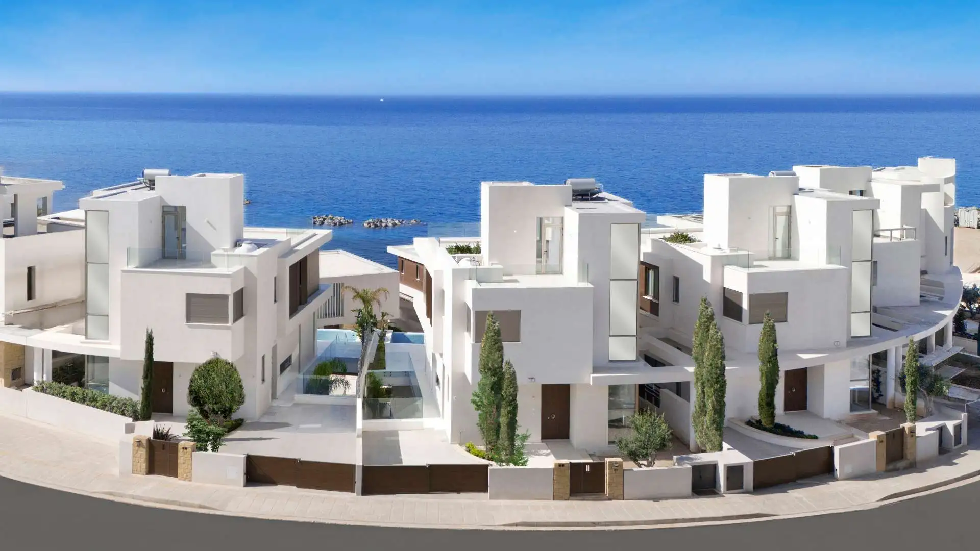 Armonia Beach Villas, is a brand new project by Leptos Estates superbly located on the coastline in a pristine area between Paphos Harbour and the picturesque Coral Bay Beach. The Villas are built to the highest standards featuring private pools, large areas of landscaped gardens, BBQ areas, large verandahs with outdoor living areas, modern architectural designs with the latest technology quality finishes, spacious parking spaces and many more.