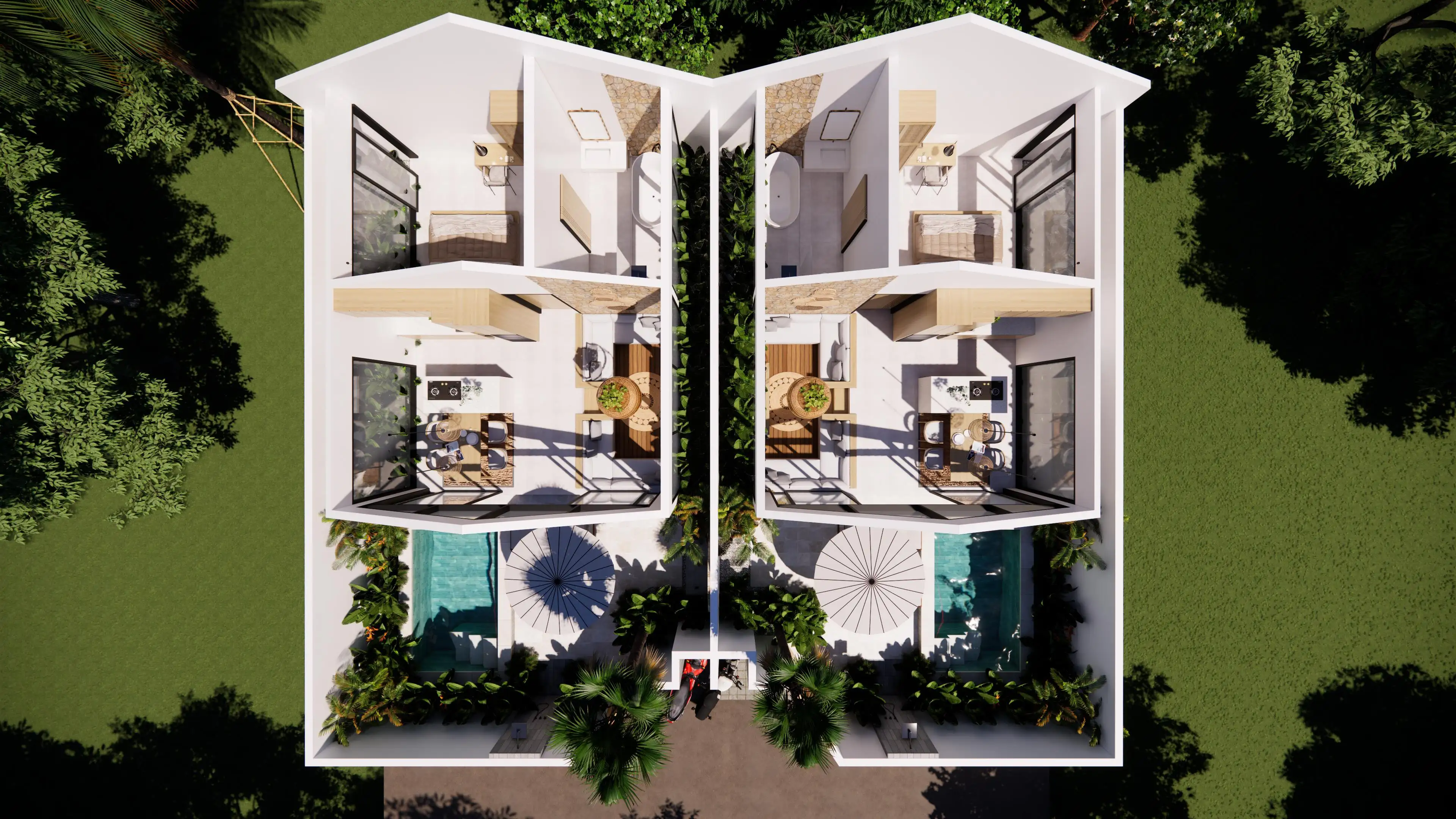 This contemporary 1-bedroom villa in Ungasan offers a thoughtful blend of comfort, privacy, and tropical design—an ideal home base for those who appreciate a calm environment while staying close to Bali’s most scenic coastline. Located just 10 minutes from Melasti Beach and surrounded by a lush neighborhood of palm trees and greenery, the villa brings together natural textures, clean architecture, and warm wood elements to create an inviting atmosphere. High ceilings, stone accents, and wide glass panels allow the space to feel airy and connected to the outdoors. Whether used as a personal retreat or a part-time home, the layout is designed to feel both functional and relaxing, supported by well-planned features such as a dedicated workspace, a fully fitted kitchen, and an outdoor leisure area.