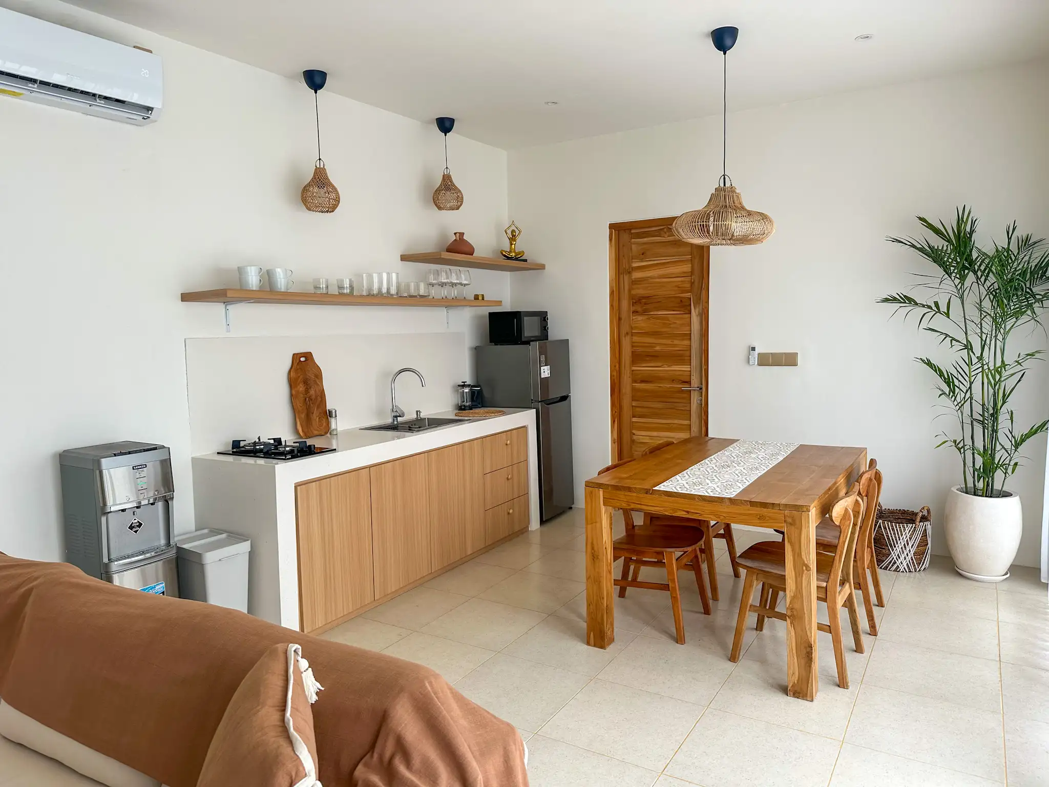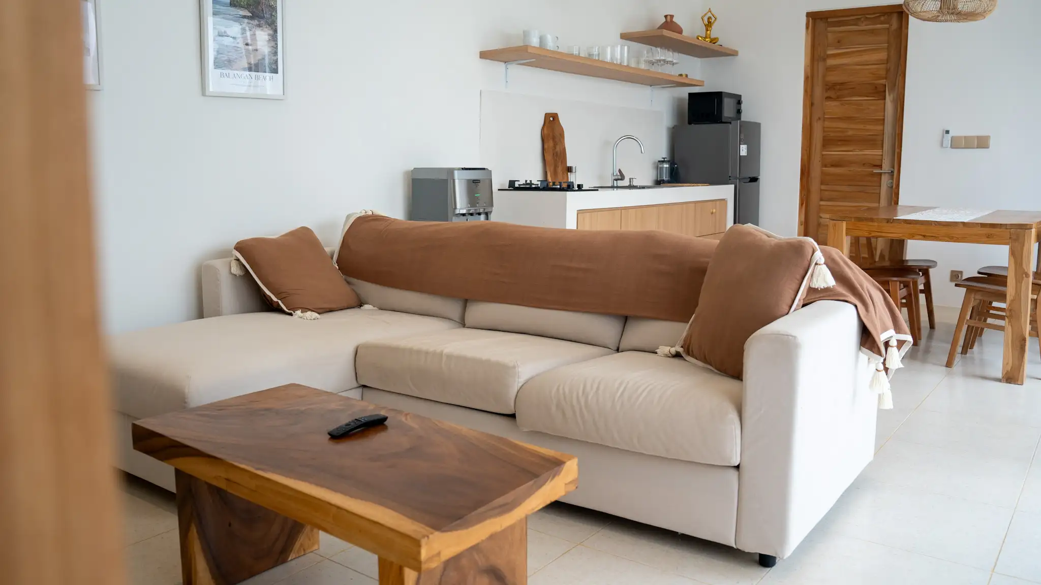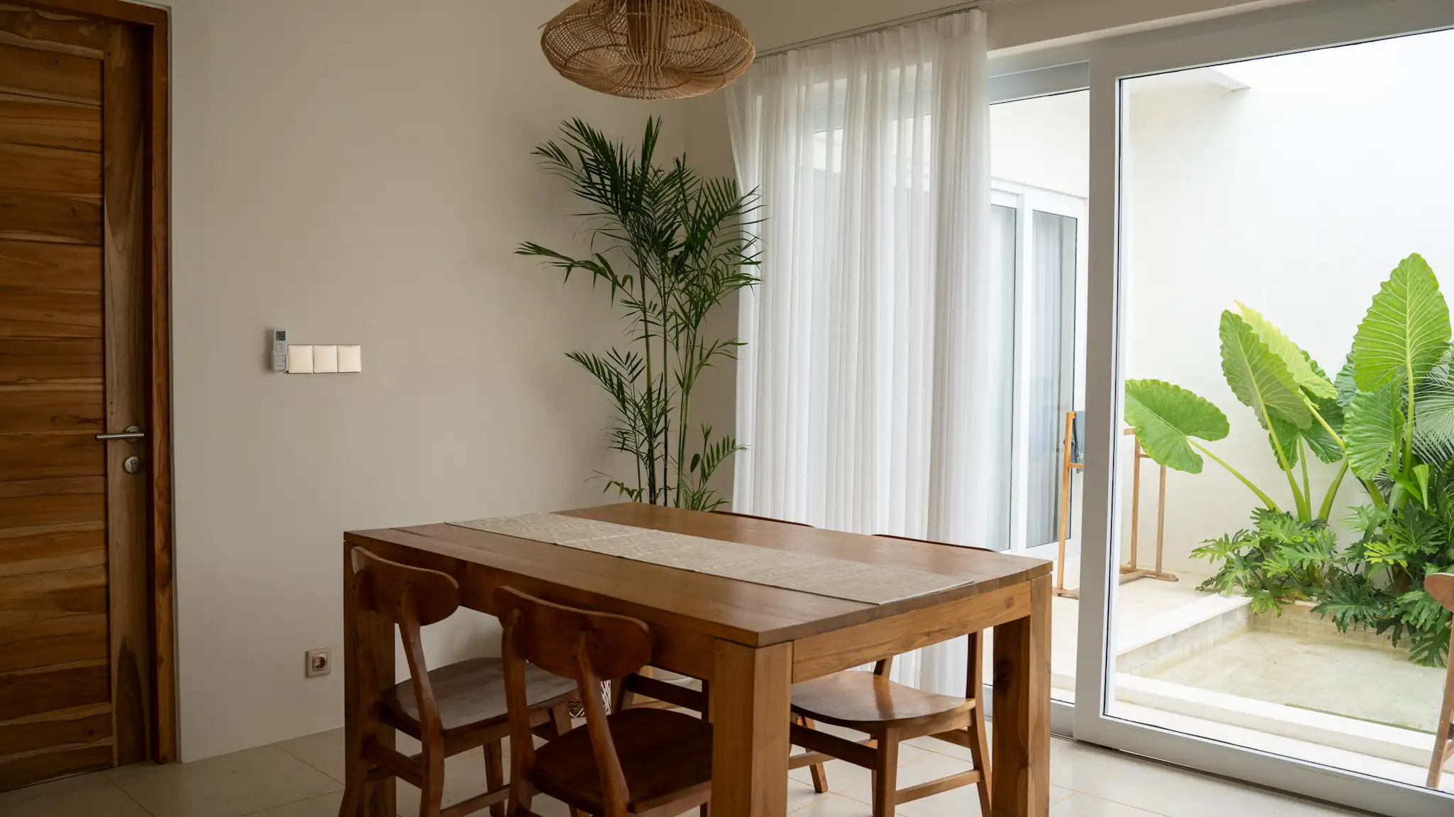 Located in the peaceful and increasingly sought-after area of Nyang Nyang, this 2 bedroom villa presents a balanced blend of comfort, privacy, and strong rental potential. Just four minutes from the iconic Nyang Nyang Beach, the property offers a setting that appeals to both holidaymakers and long-term renters seeking calm surroundings with easy access to lifestyle destinations. The villa is thoughtfully designed with a clean, modern tropical concept, featuring soft neutral tones, natural wood finishes, and well-planned open spaces that create a warm and welcoming atmosphere. Large sliding glass doors allow natural light to flow through the living spaces while offering direct views toward the pool and lush greenery, reinforcing the connection between indoor comfort and outdoor living.