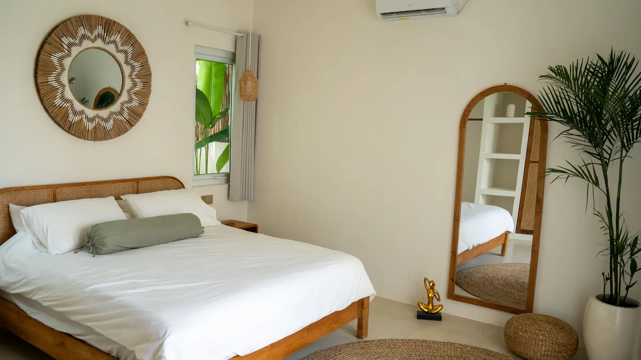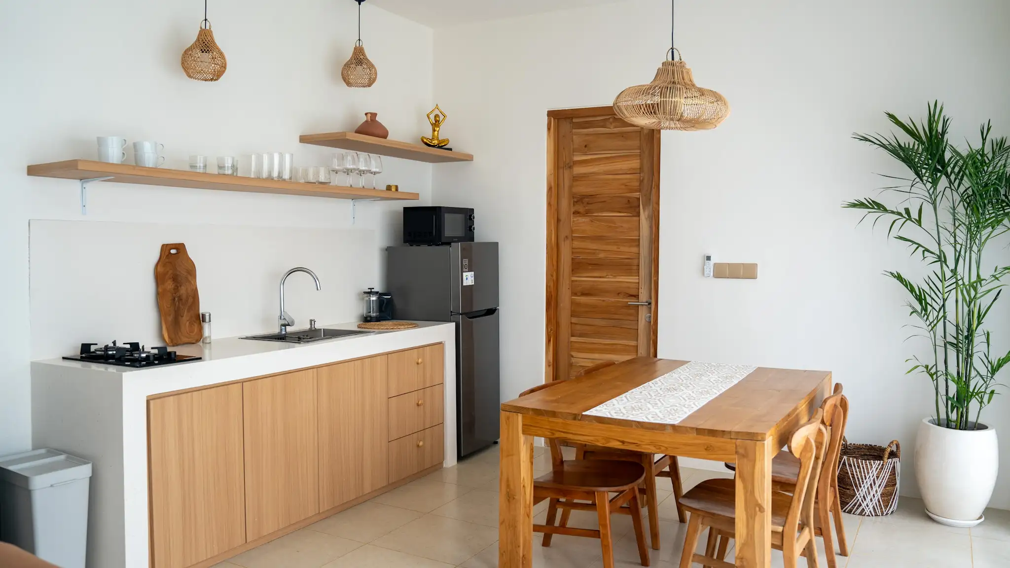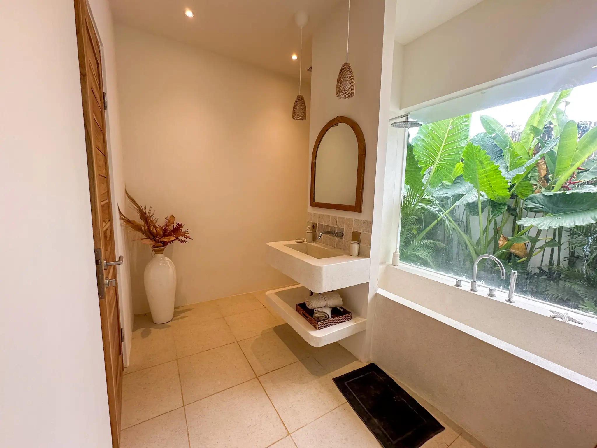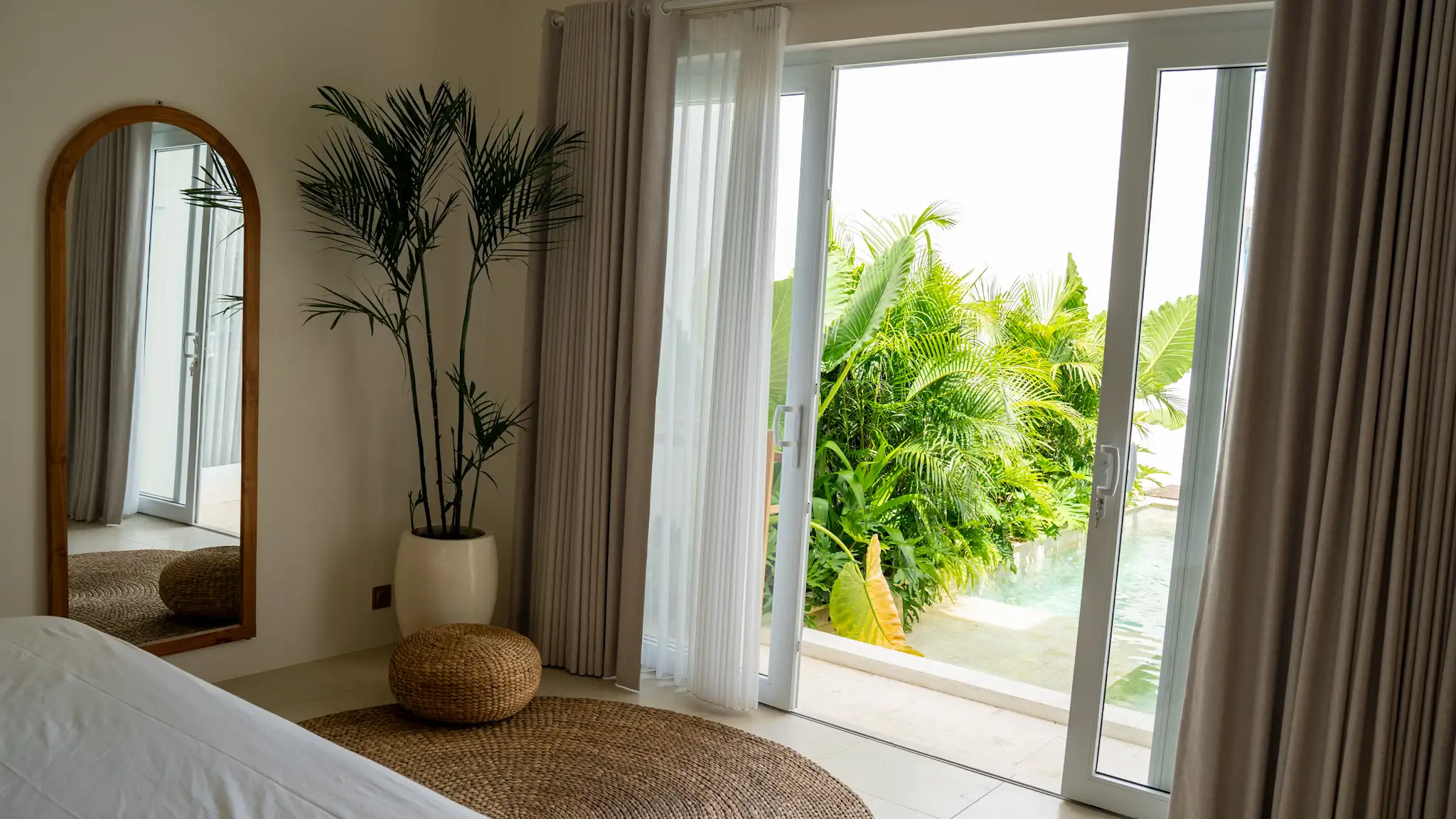 Located in the peaceful and increasingly sought-after area of Nyang Nyang, this 2 bedroom villa presents a balanced blend of comfort, privacy, and strong rental potential. Just four minutes from the iconic Nyang Nyang Beach, the property offers a setting that appeals to both holidaymakers and long-term renters seeking calm surroundings with easy access to lifestyle destinations. The villa is thoughtfully designed with a clean, modern tropical concept, featuring soft neutral tones, natural wood finishes, and well-planned open spaces that create a warm and welcoming atmosphere. Large sliding glass doors allow natural light to flow through the living spaces while offering direct views toward the pool and lush greenery, reinforcing the connection between indoor comfort and outdoor living.