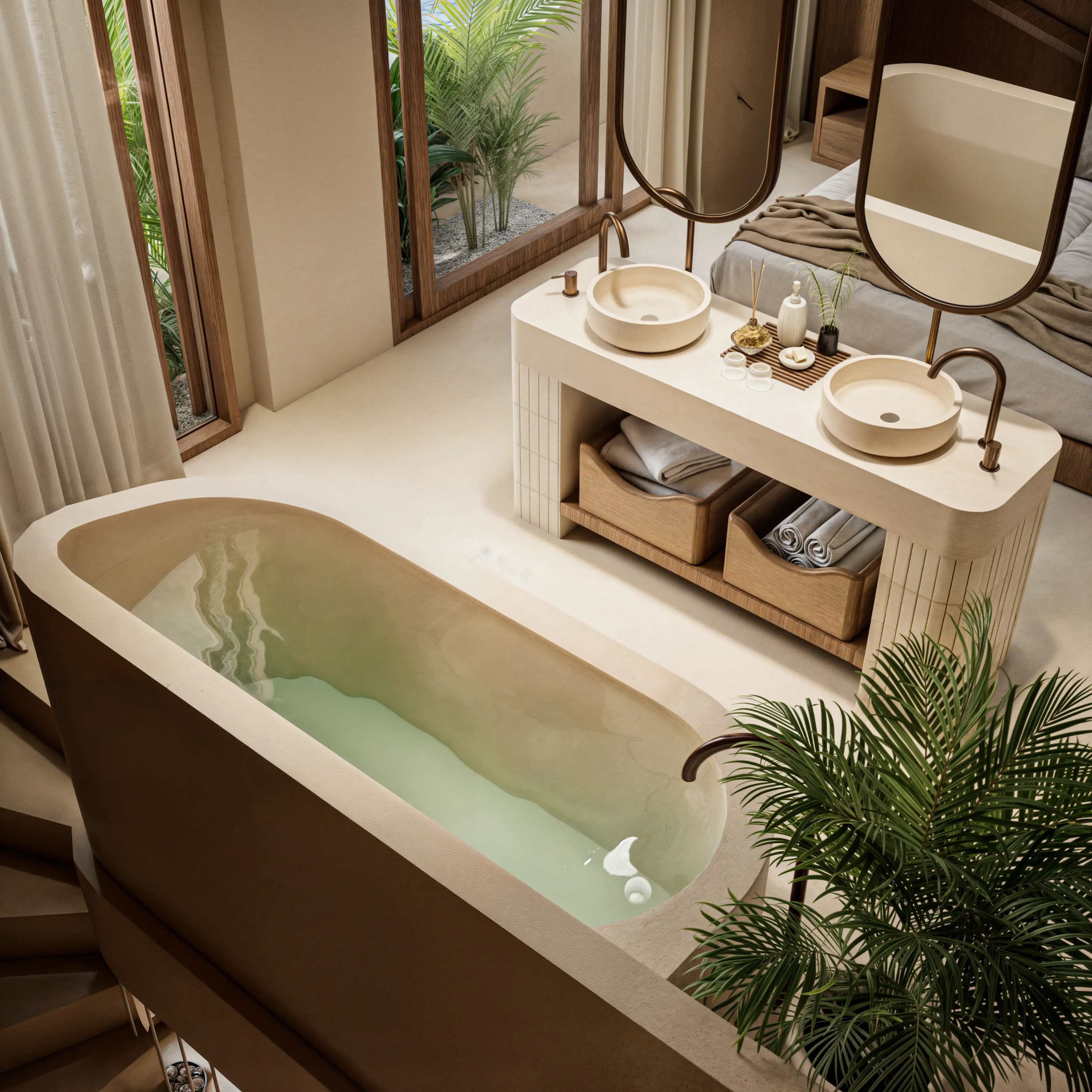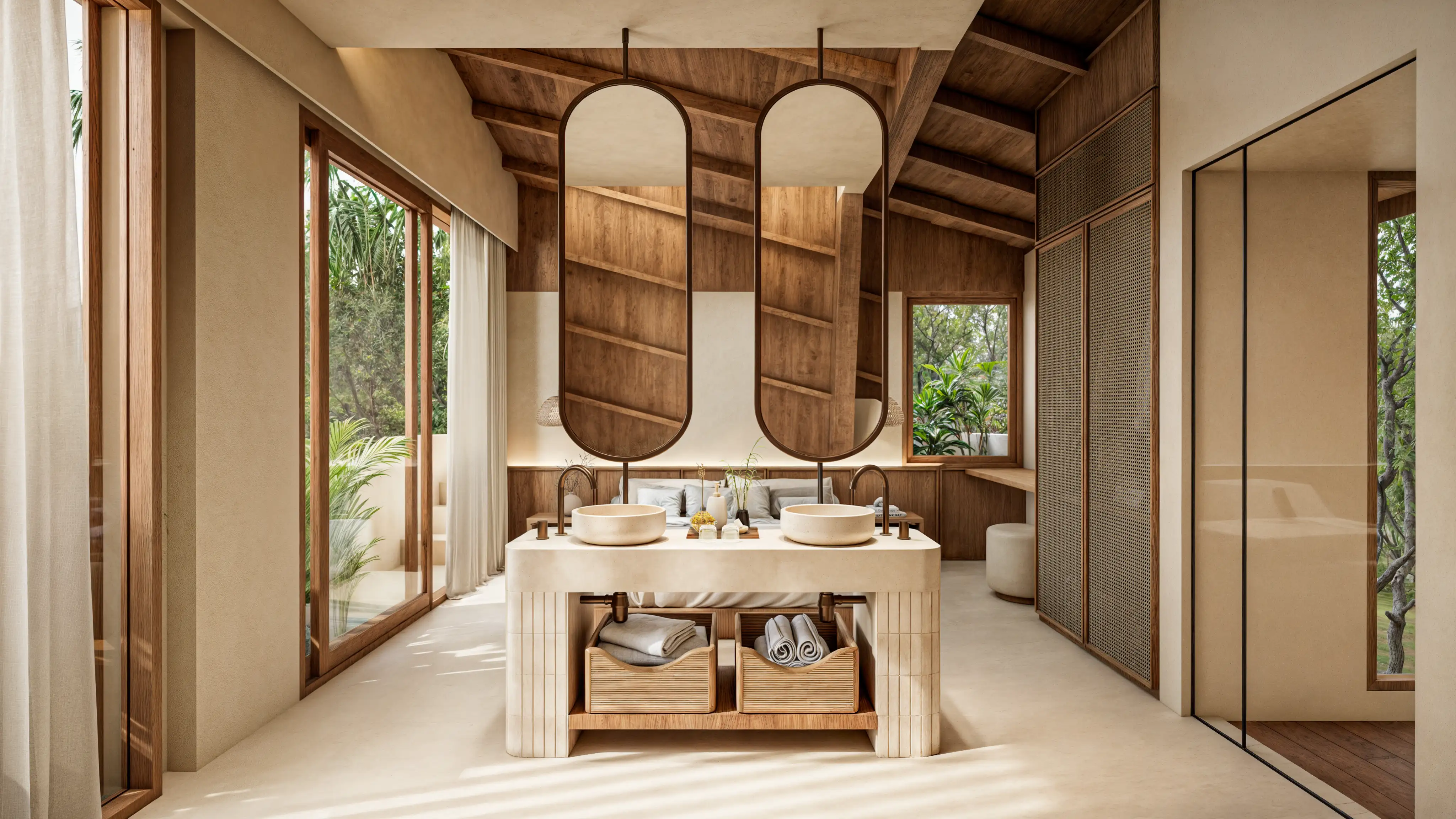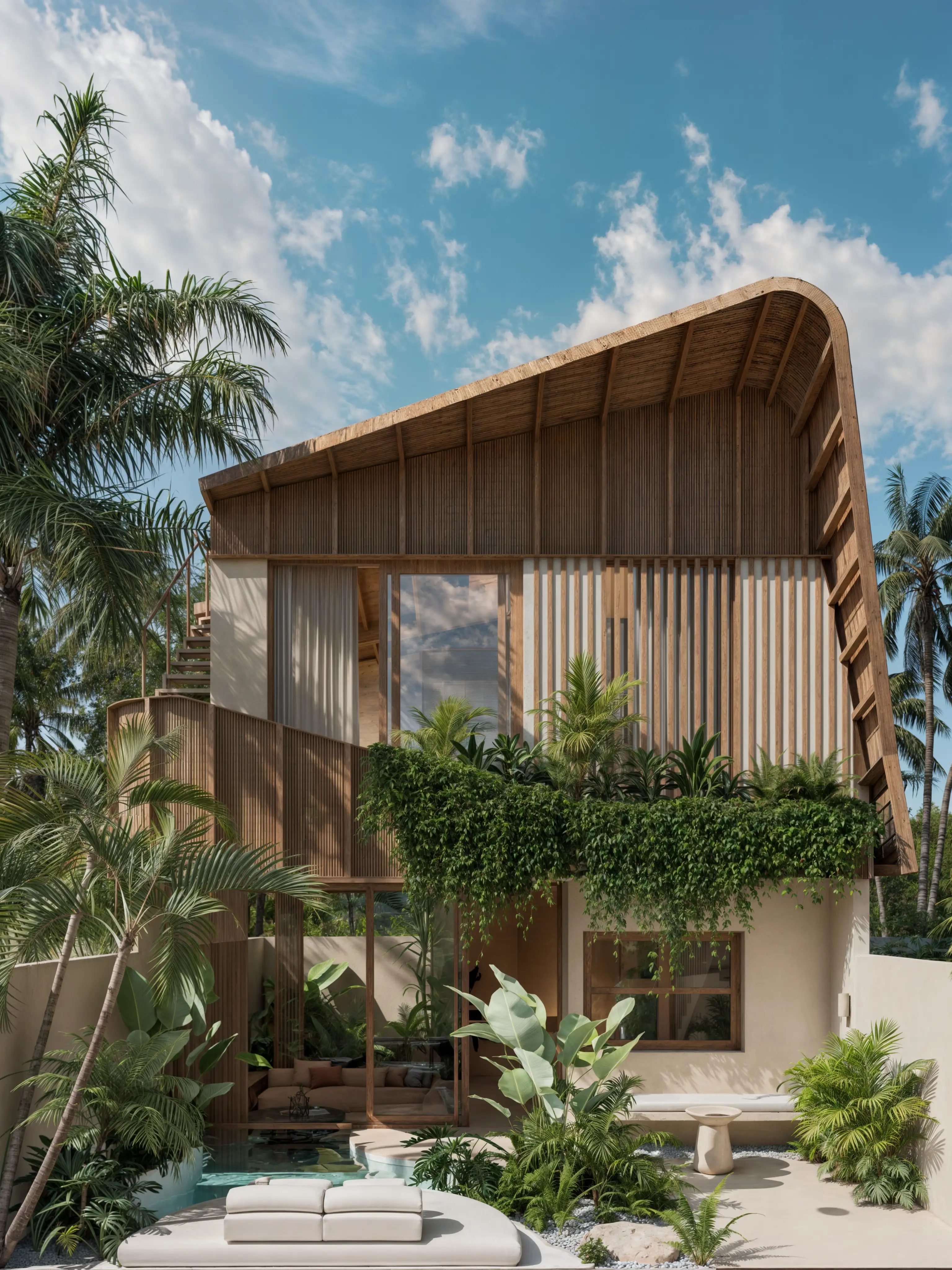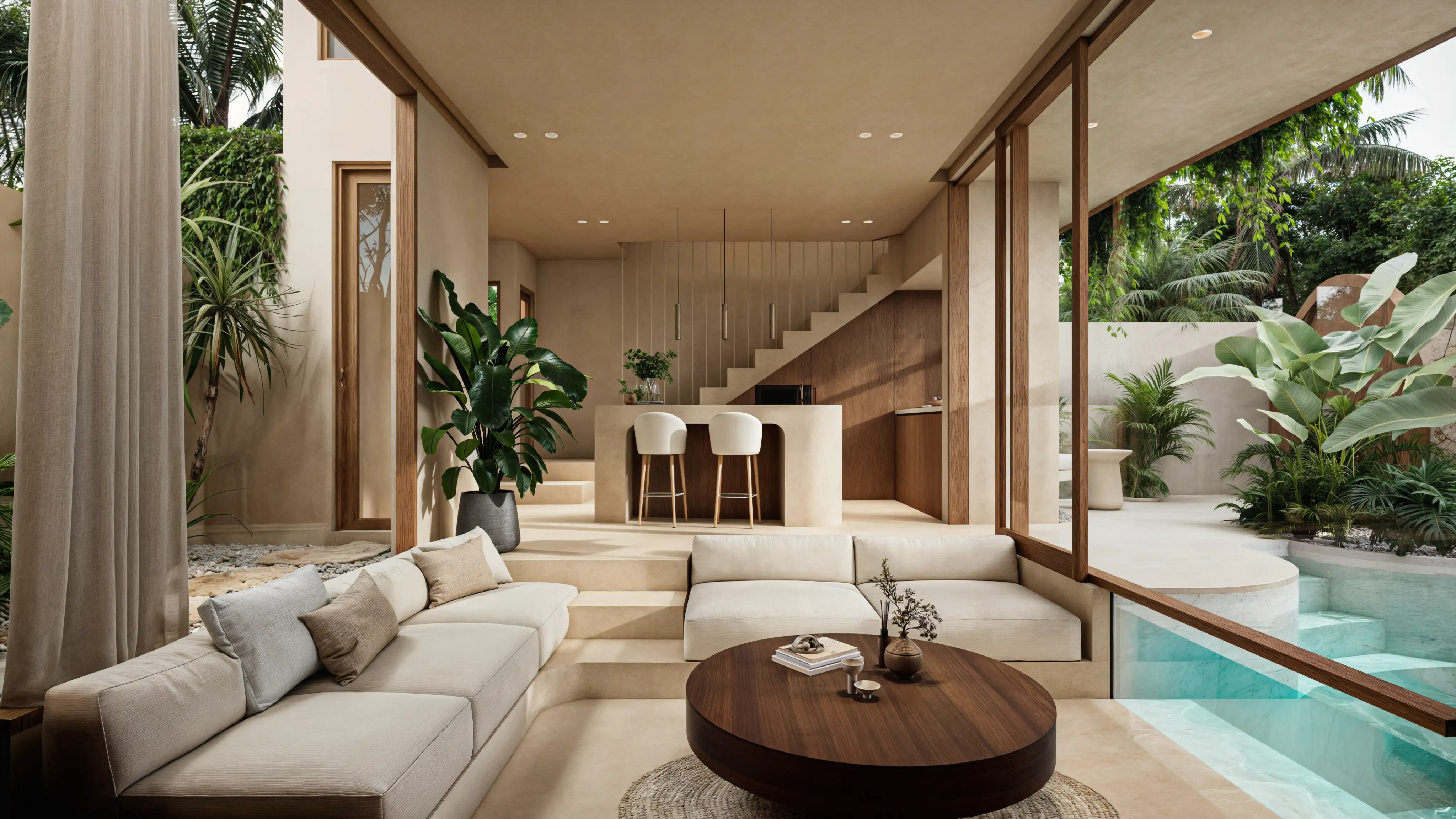 This boutique collection of one- and two-bedroom villas presents a refined blend of contemporary tropical design and natural surroundings, offering a private retreat in one of Bali’s most desirable coastal areas. Each villa is thoughtfully crafted with warm textures, fine materials such as limestone and terrazzo, and carefully curated finishes that create a serene atmosphere from the moment you step inside. Expansive glass panels and open layouts connect the indoor and outdoor spaces, allowing sunlight and greenery to shape the experience of daily living. Every unit features its own private pool, sunken lounge, and inviting social areas, while the upper floors offer calming views framed by lush landscapes.