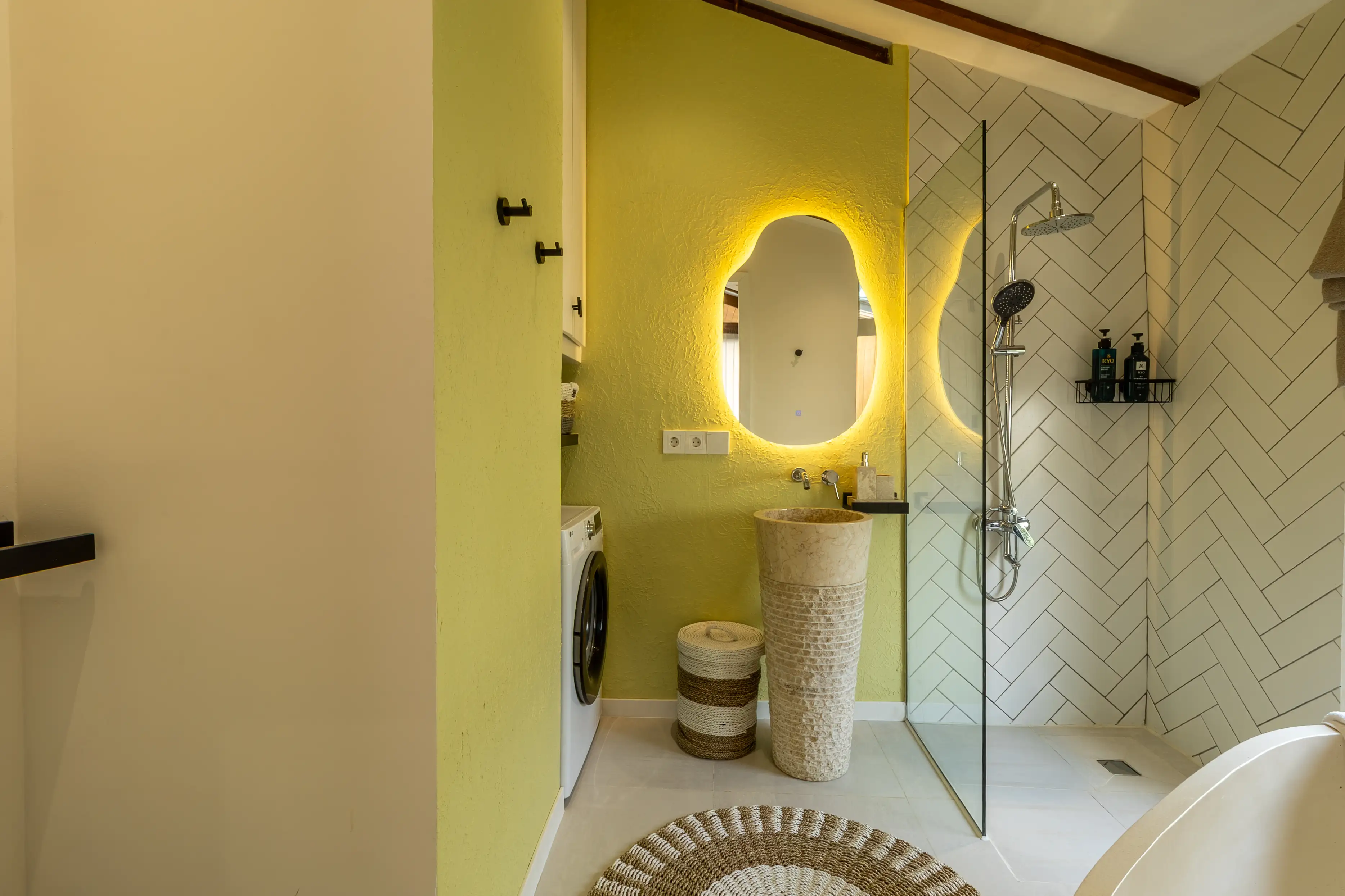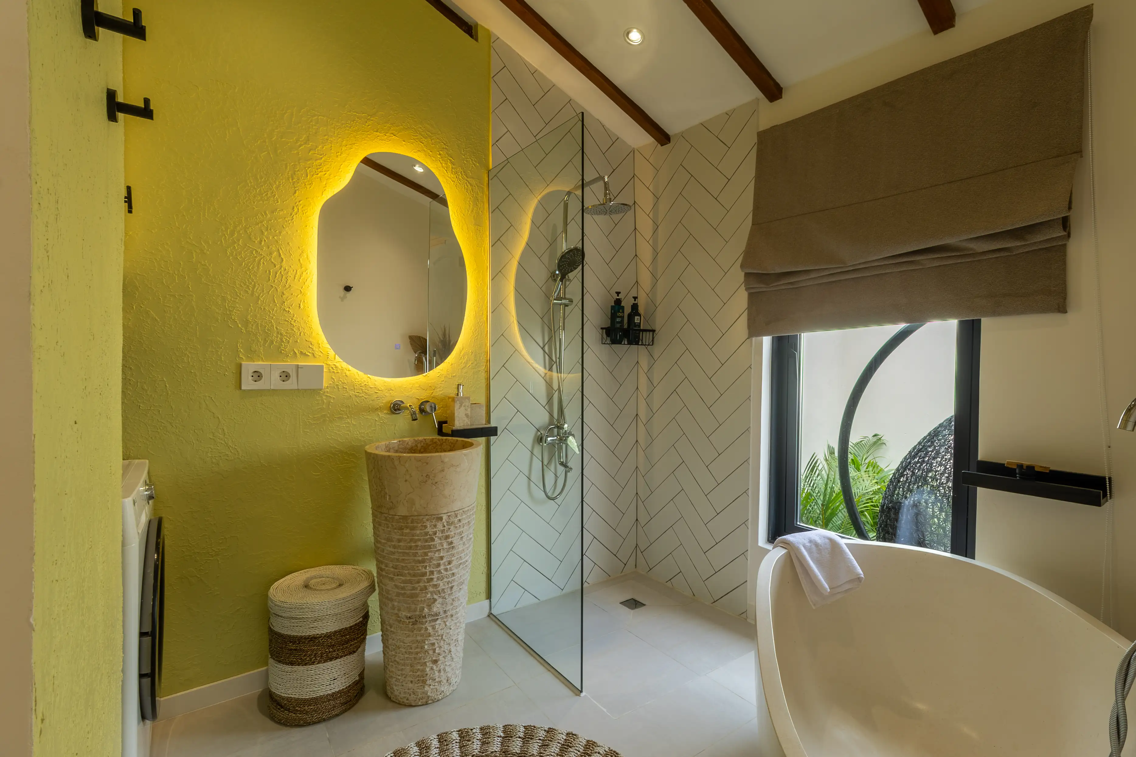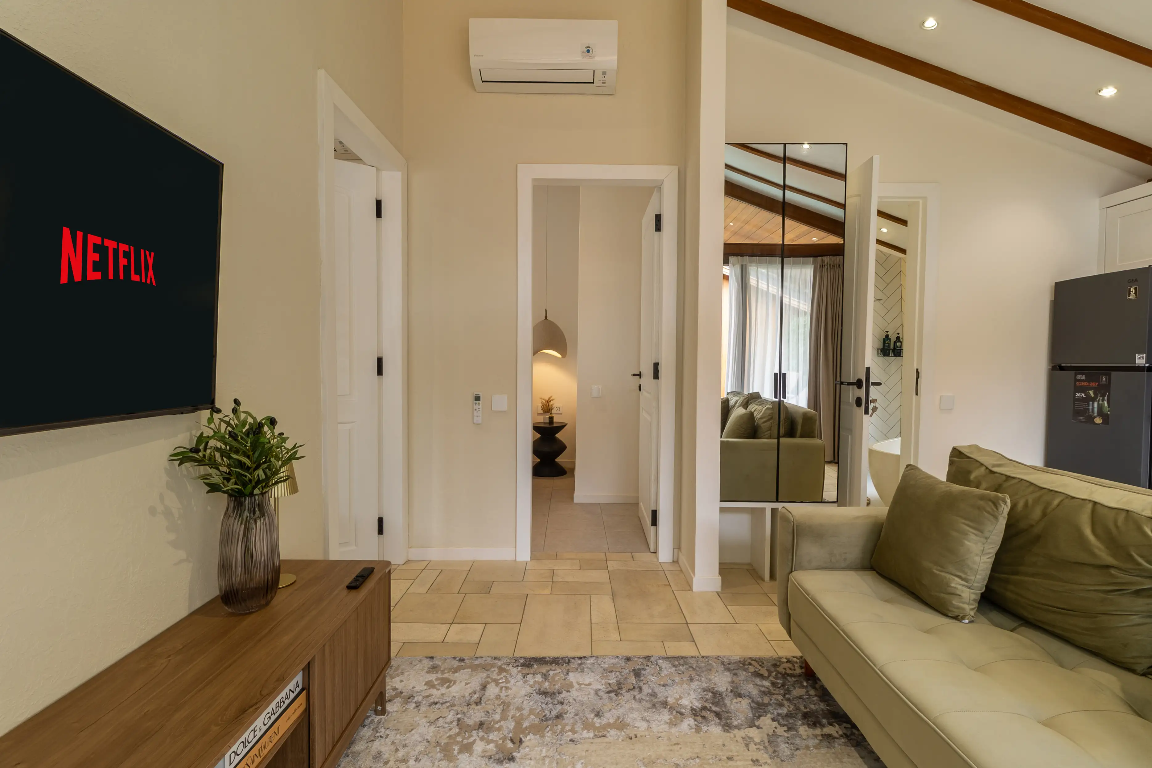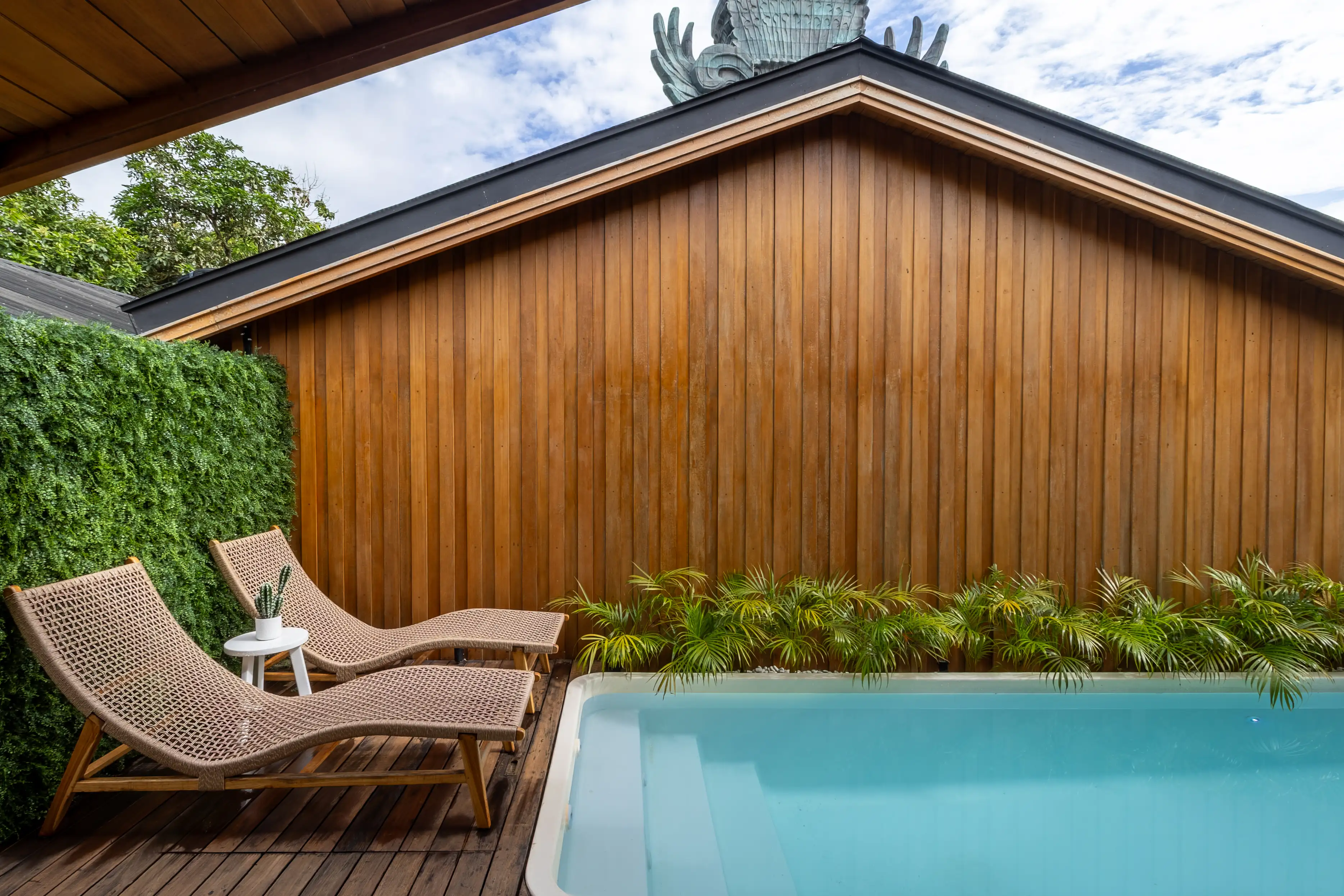 The villa comes with two well-appointed bedrooms, each designed for comfort, offering soft lighting, quality furnishings, and easy access to the outdoor areas. The living room opens directly to a private pool and sun deck, giving guests a seamless indoor–outdoor experience. This setup is ideal for holiday rentals, as it delivers the kind of privacy and convenience many travelers look for in Bali. The villa’s thoughtful layout ensures efficient use of space, making the 109 sqm land feel open, functional, and relaxing. With beaches only 10 minutes away, residents can easily reach some of the most beautiful coastlines in the Bukit area, from Melasti to Pandawa.
