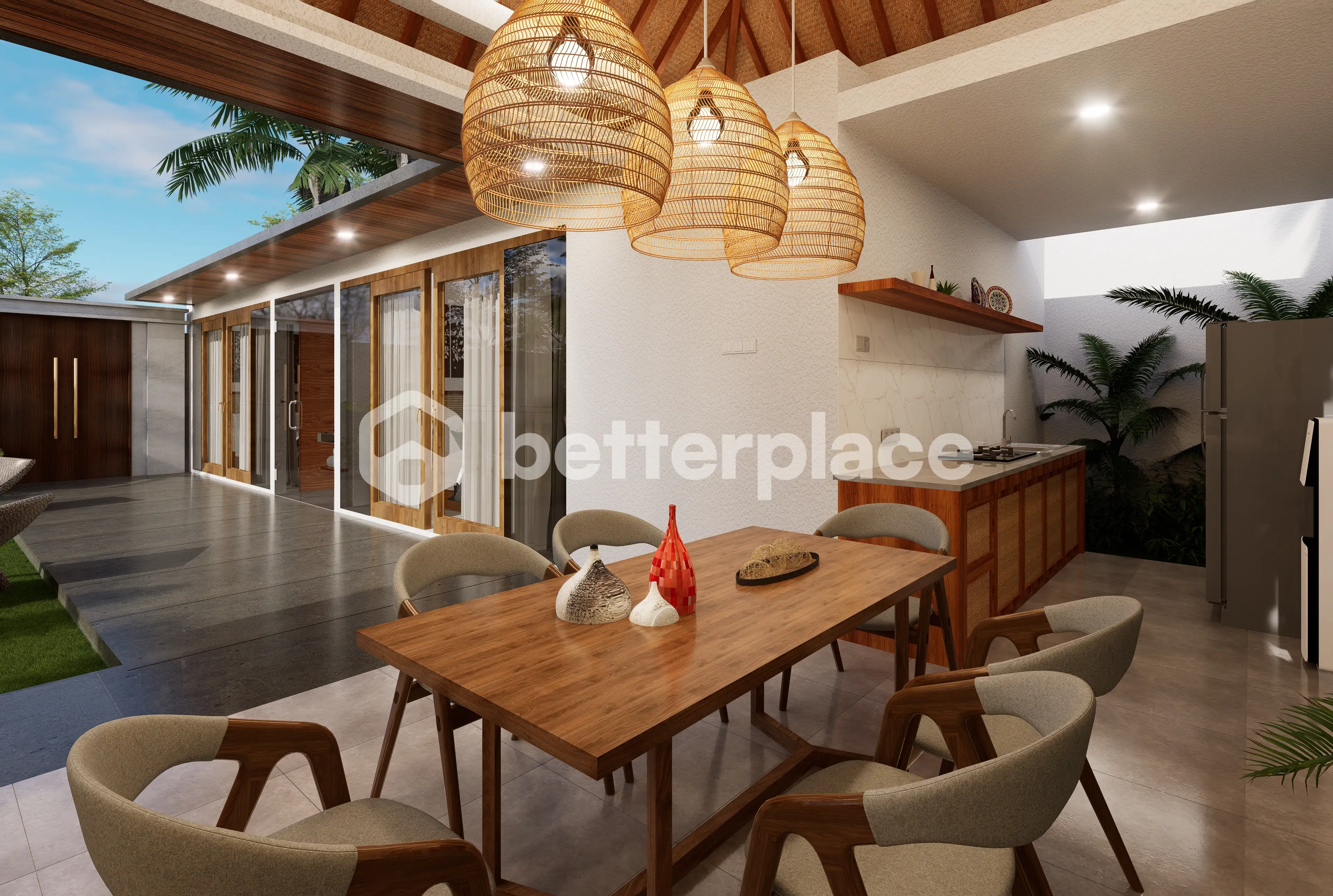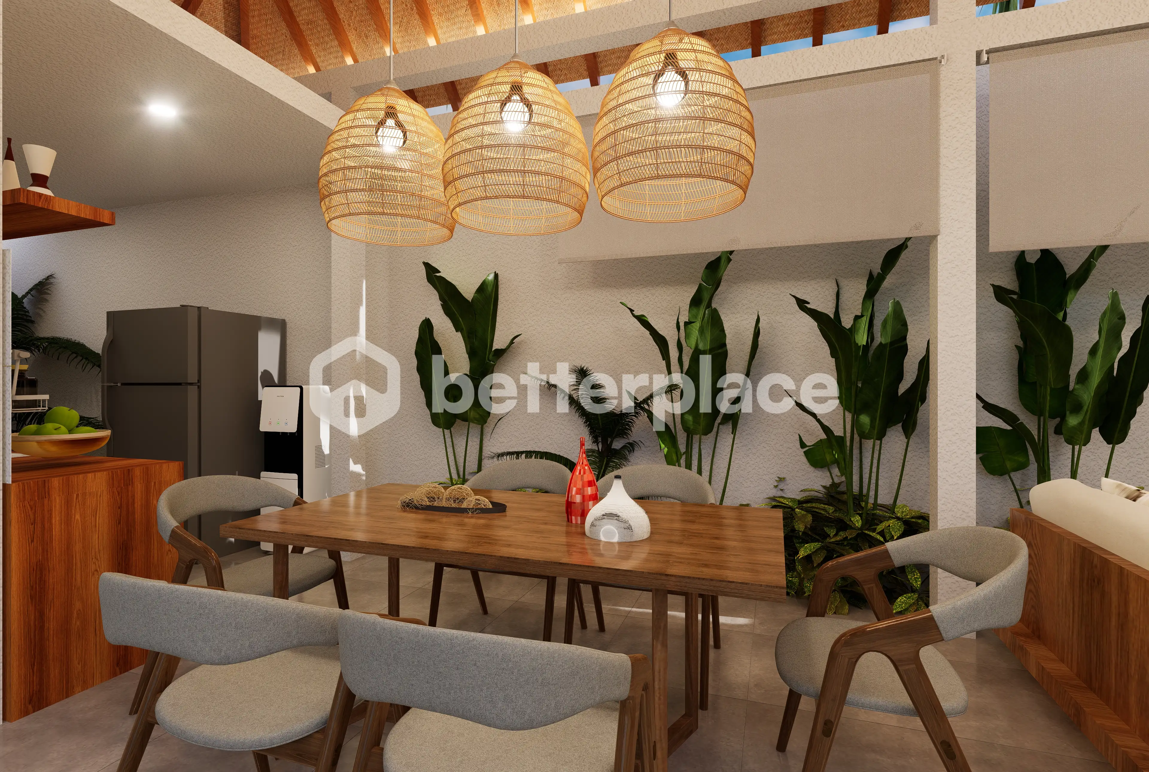 Set on 197 sqm of land with a 137 sqm enclosed building, the layout is crafted to support daily living, privacy, and long-term value. The villa features two bedrooms with two private bathrooms, making it suitable for couples, small families, or long-stay travelers. Each room has been planned with practical space in mind, ensuring natural light, proper ventilation, and a welcoming ambiance. The enclosed living area connects seamlessly with the kitchen and dining spaces, creating a comfortable setting for relaxing, working, or hosting guests. With fully furnished delivery, future owners can expect a complete interior package that reflects modern Bali design streamlined, functional, and ready for immediate use once handed over.