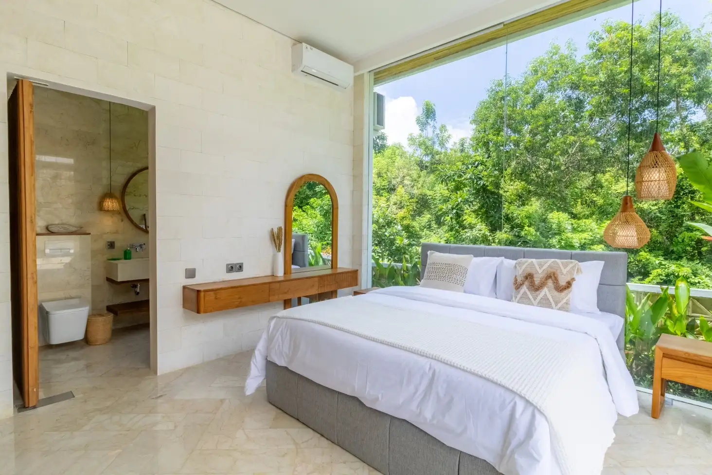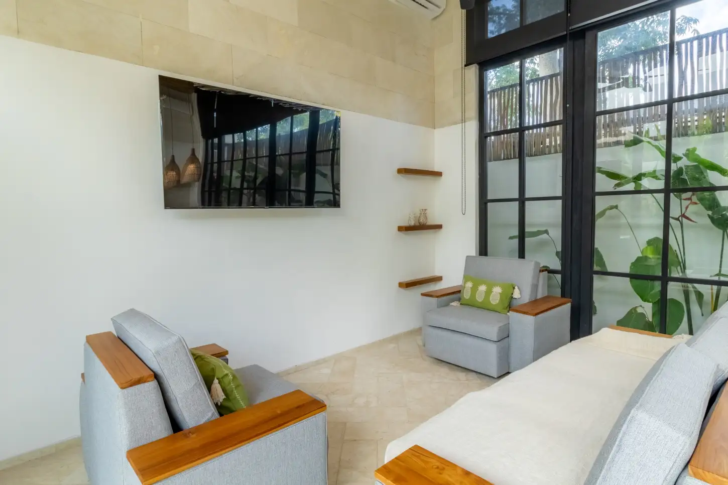 Embrace the serenity of Uluwatu with this remarkable leasehold villa, an oasis of calm nestled in one of Bali’s most sought-after locations. Priced at USD 220,000, this 2-bedroom, 2-bathroom haven offers an exquisite blend of modern living and peaceful seclusion. Spanning a generous 250 square meters of land and boasting 140 square meters of meticulously designed living space, this villa is a testament to luxurious living. The property is offered on a leasehold basis, with the lease set to expire in 2048, exclusive residence in this idyllic Uluwatu locale. Step into tranquility as you enter this Uluwatu villa. The enclosed living area seamlessly merges modern aesthetics with the serene ambiance of its surroundings. Floor-to-ceiling windows invite the outdoors in, bathing the interiors in natural light and creating an airy, inviting atmosphere.