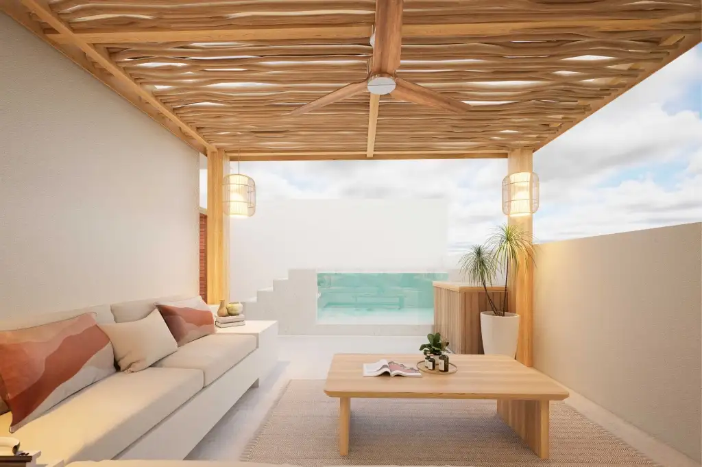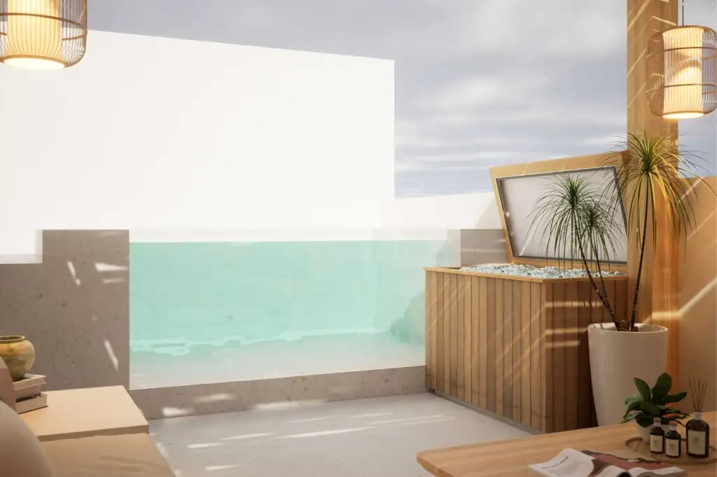 With its prime location just 5 minutes from Batu Bolong Beach, this property stands out among Bali villas for sale, especially for investors seeking Bali property for sale near amenities and the island’s most vibrant lifestyle hub. The villa features two spacious bedrooms with en-suite bathrooms, an elegant enclosed living area, and contemporary architectural lines complemented by premium turnkey-ready furnishings and custom cabinetry. An optional Inventory Furniture Service is available for buyers seeking additional items such as décor, curtains, and appliances—perfect for those buying property in Bali for effortless move-in readiness. One of the most impressive highlights is the private rooftop lounge, complete with a plunge pool and enough space to add a private sauna or cold plunge/ice bath station. This elevated outdoor sanctuary enhances the property’s appeal among those searching for luxury properties for sale in Bali, Bali luxury real estate, and Bali property for sale with pool.
