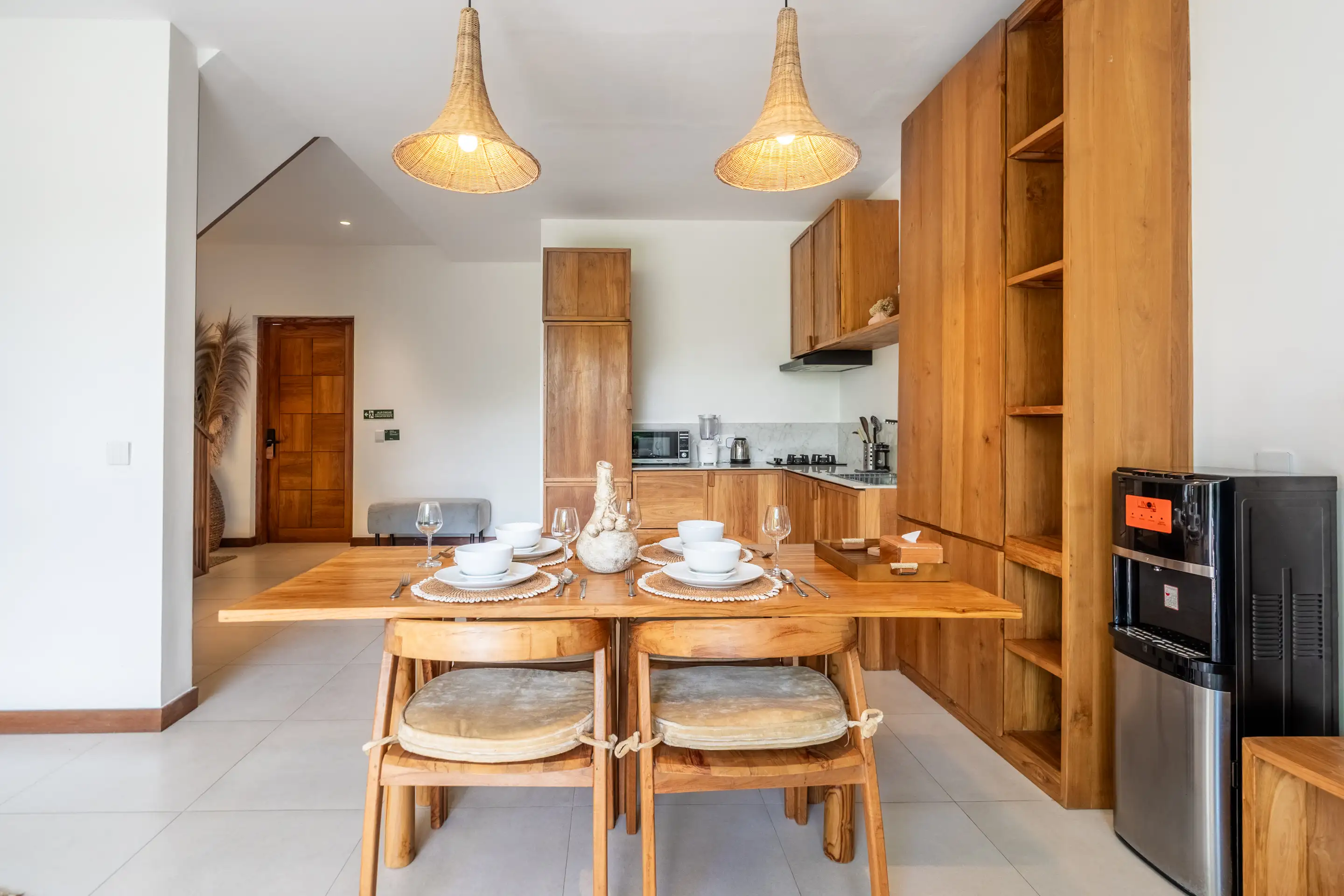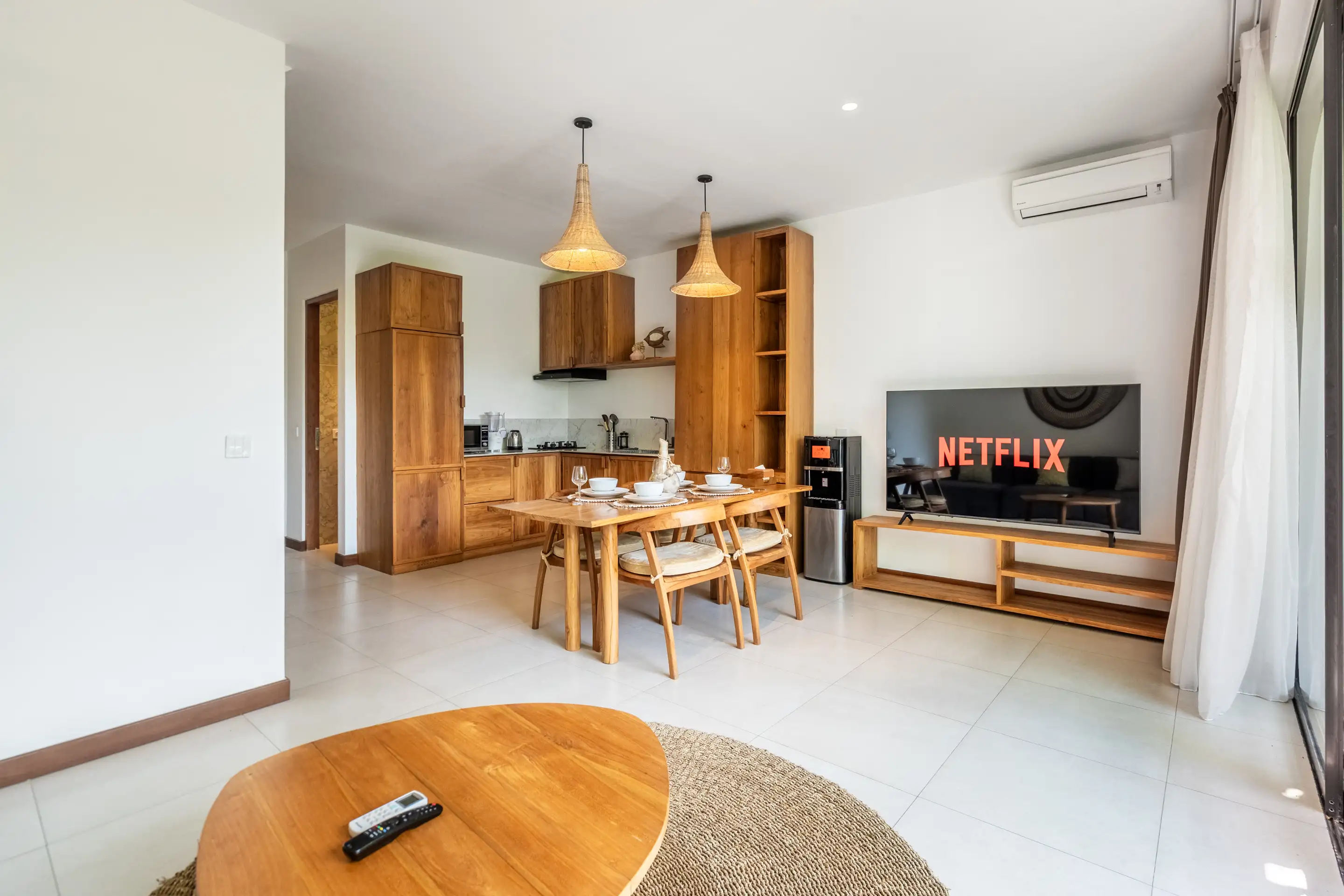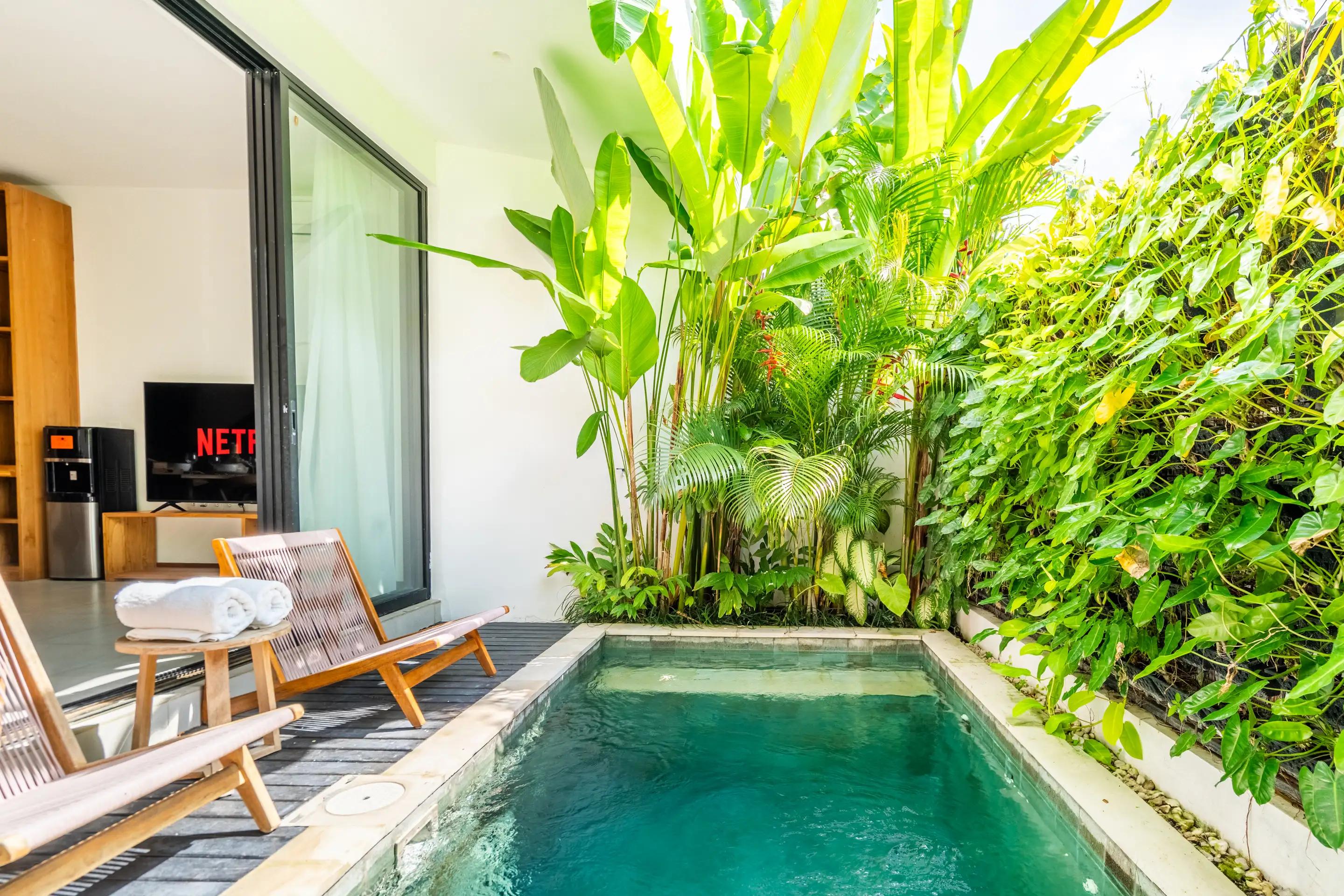 Discover the perfect blend of tranquility and convenience in Umalas with our modern, fully furnished villa. This exquisite property offers a seamless living experience, meticulously designed to cater to discerning homeowners and investors alike. Featuring two spacious bedrooms and three well-appointed bathrooms, this villa is a sanctuary of comfort and luxury.