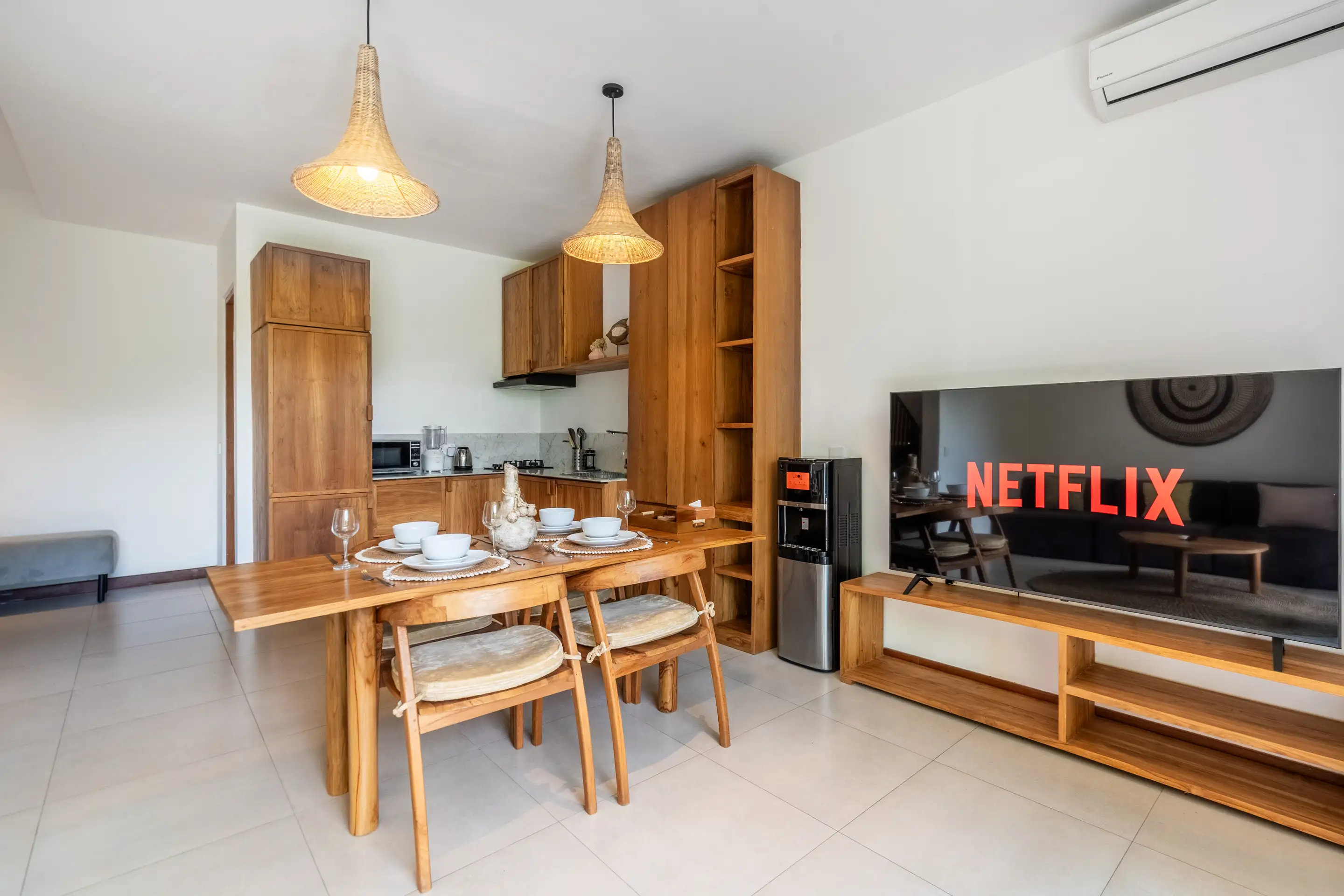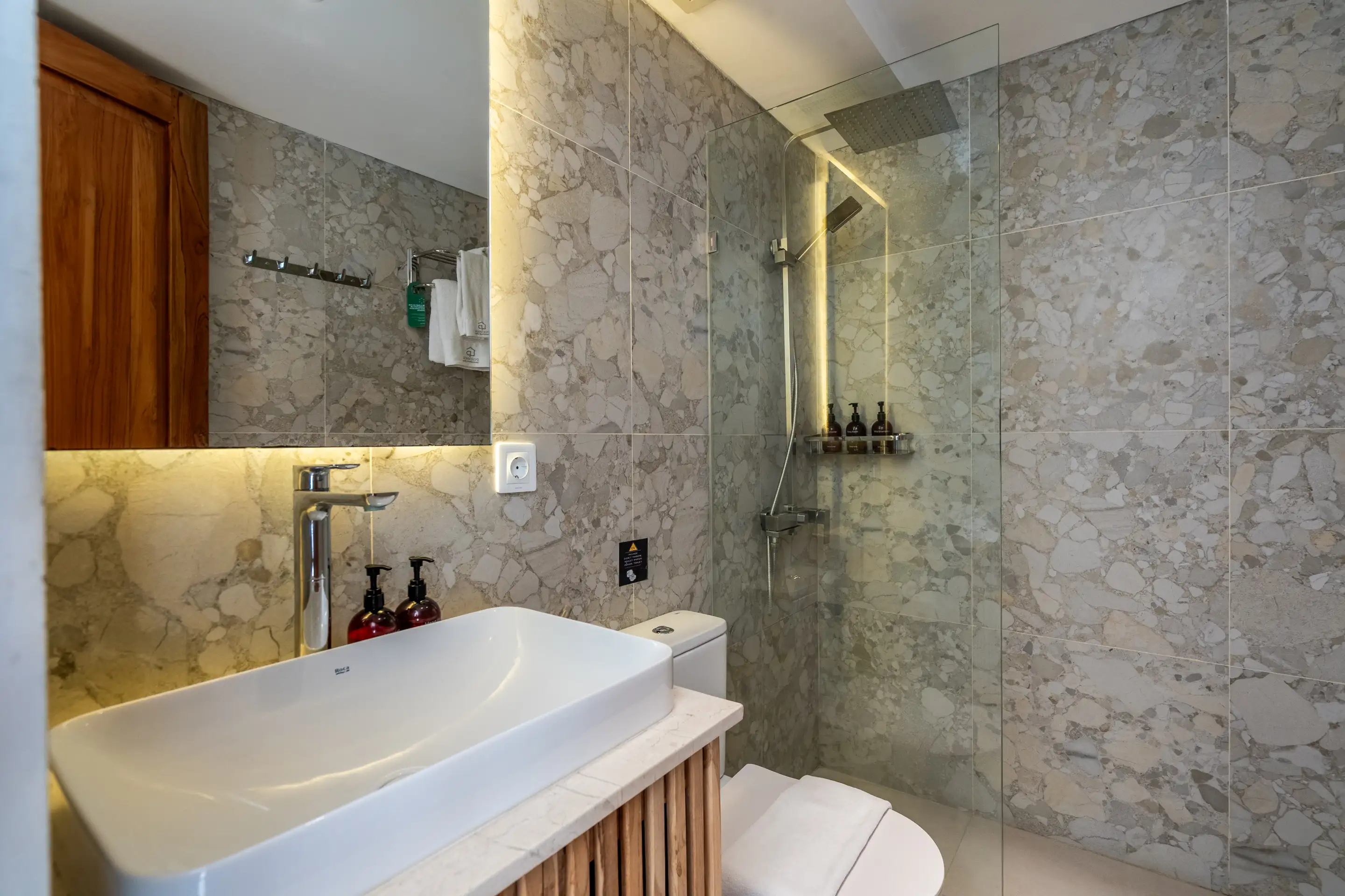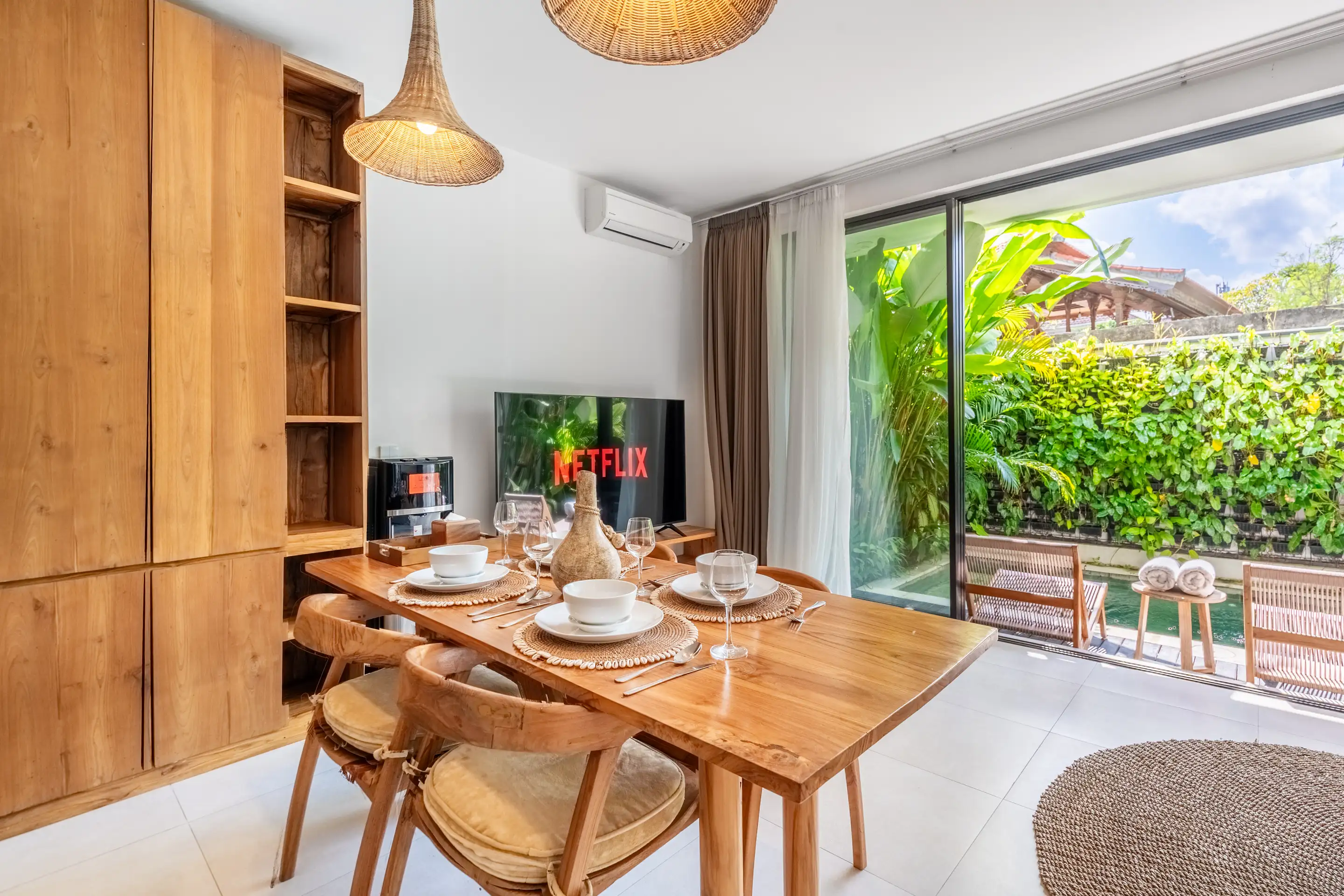 Discover the perfect blend of tranquility and convenience in Umalas with our modern, fully furnished villa. This exquisite property offers a seamless living experience, meticulously designed to cater to discerning homeowners and investors alike. Featuring two spacious bedrooms and three well-appointed bathrooms, this villa is a sanctuary of comfort and luxury.