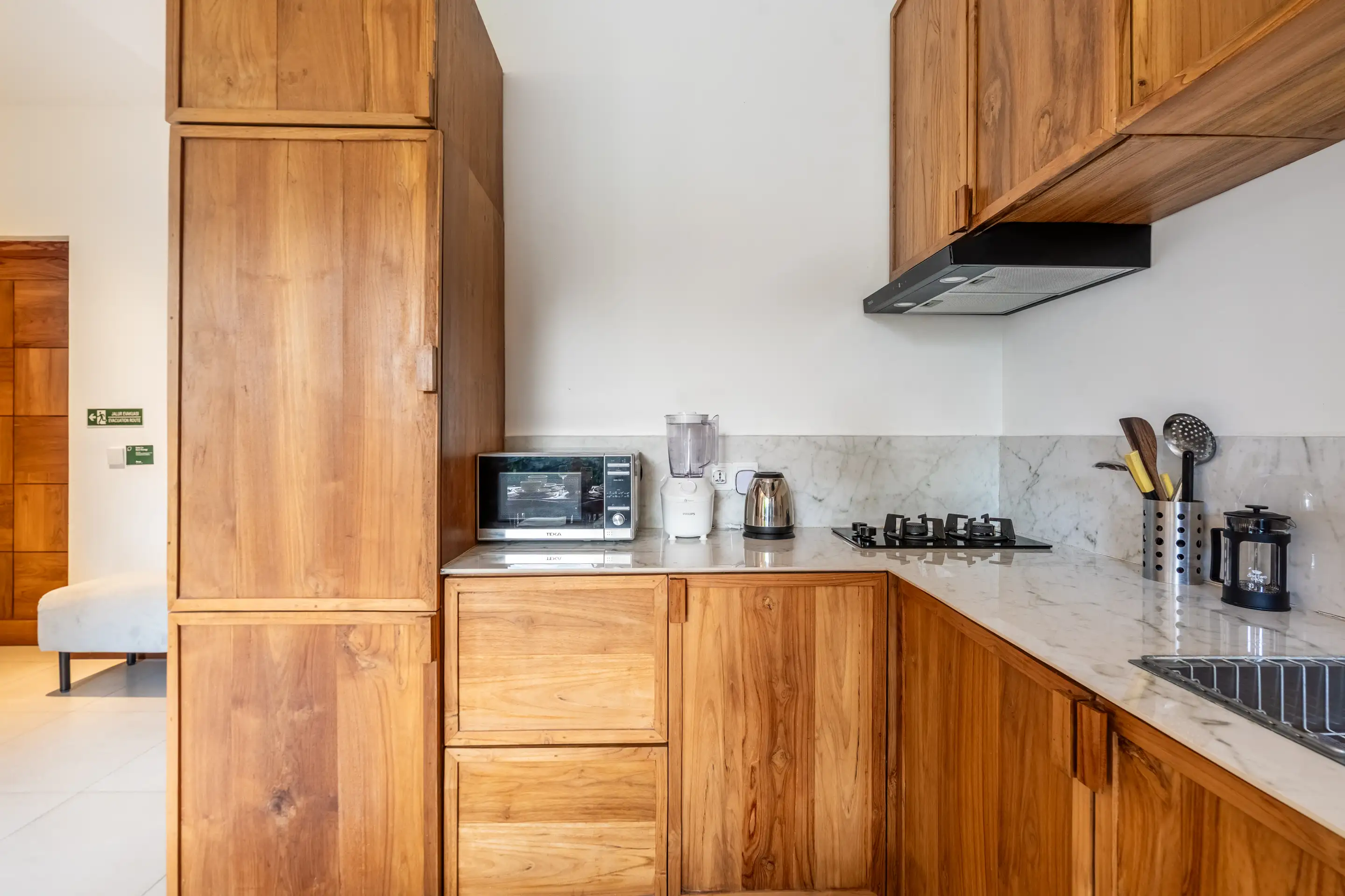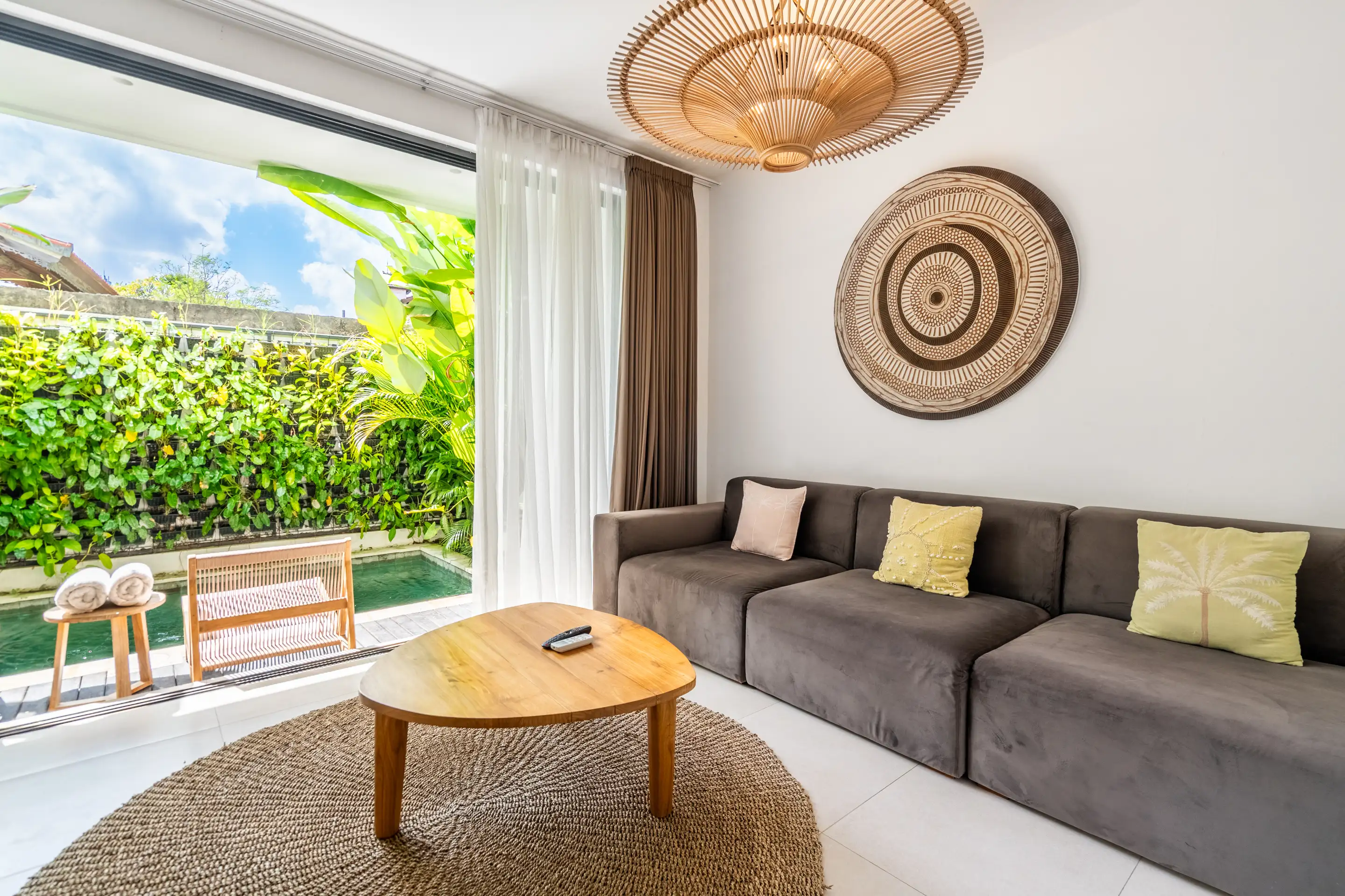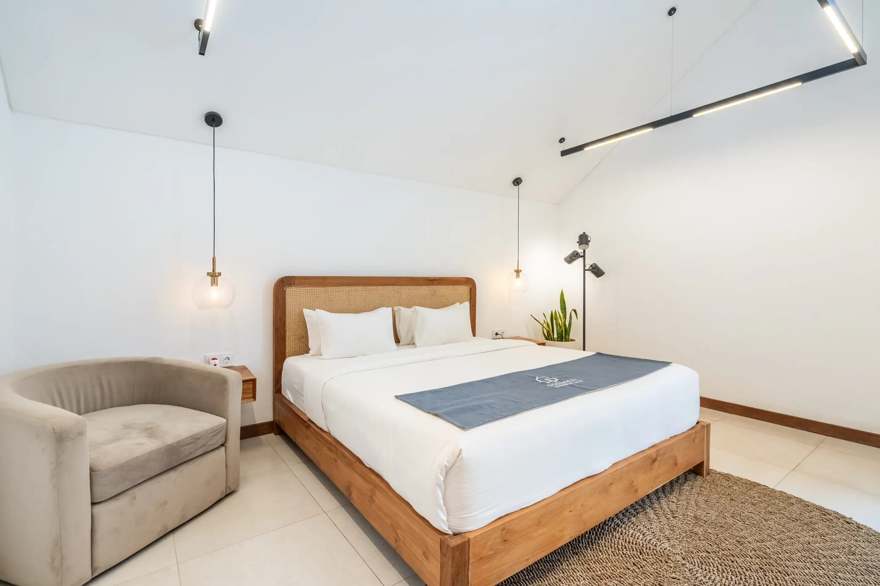 At the heart of the home is a large kitchen, equipped with everything needed for culinary exploration and entertaining. The open-plan design encourages a flow of natural light, enhancing the modern aesthetics and sophisticated finishes throughout. The private pool is a centerpiece, promising secluded relaxation and leisure in the sun. Surrounded by minimalist landscaping, it provides a tranquil retreat from the bustling surroundings. Location is paramount, and this villa stands unmatched in Umalas. Situated only 2 minutes from the vibrant restaurants and nightlife of Canggu, yet nestled in a quiet enclave, residents enjoy the best of both worlds. The beach is a mere 7-minute drive away, offering sun, sea, and sand at your convenience.