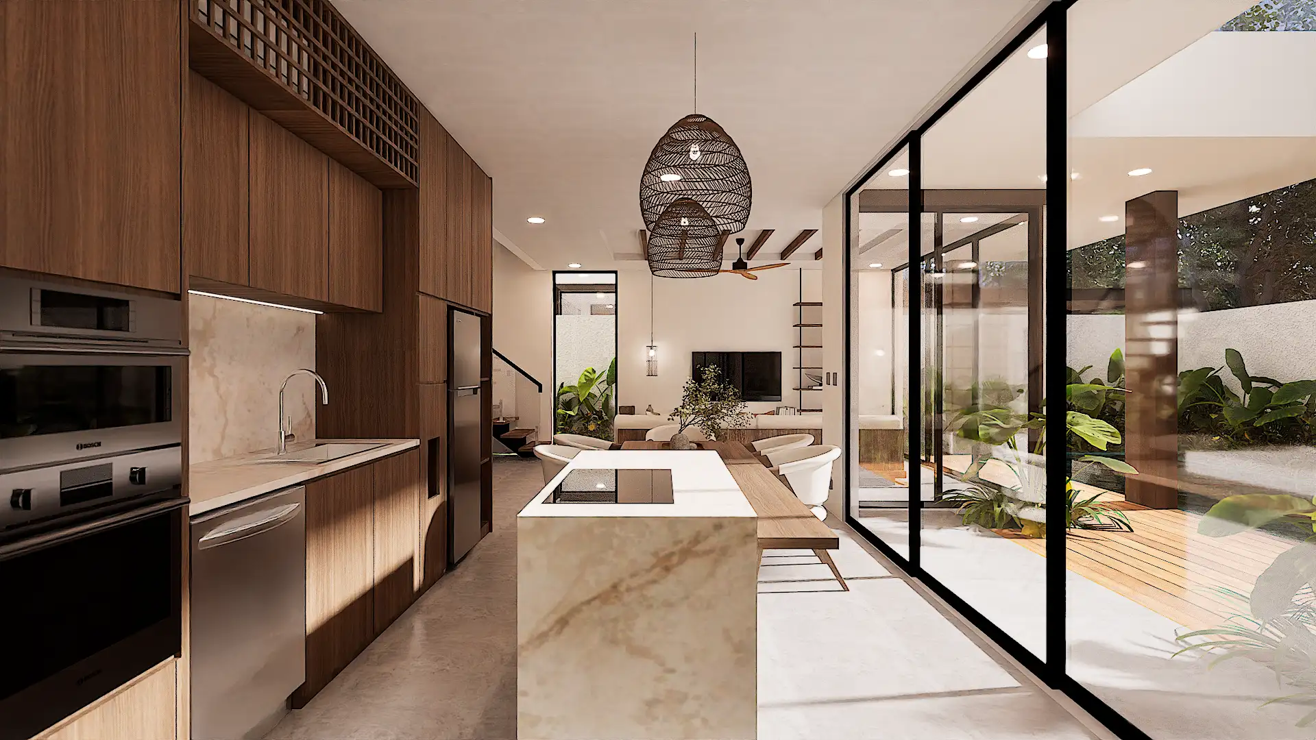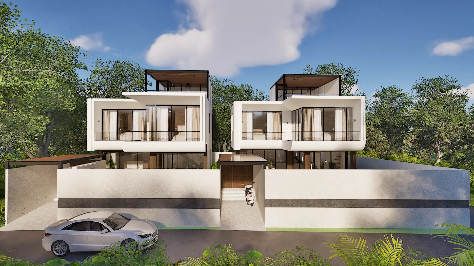 Nestled in the peaceful hills of Pecatu, this elegant three-level villa offers a refined blend of modern comfort and tropical charm. With a land size of 140 and 180 sqm and a total building size of 170 sqm, the villa features two spacious bedrooms and two bathrooms, making it an ideal retreat for couples or small families. The enclosed living room and well-equipped kitchen create a cozy yet sophisticated atmosphere, perfect for enjoying quiet moments or hosting intimate gatherings.