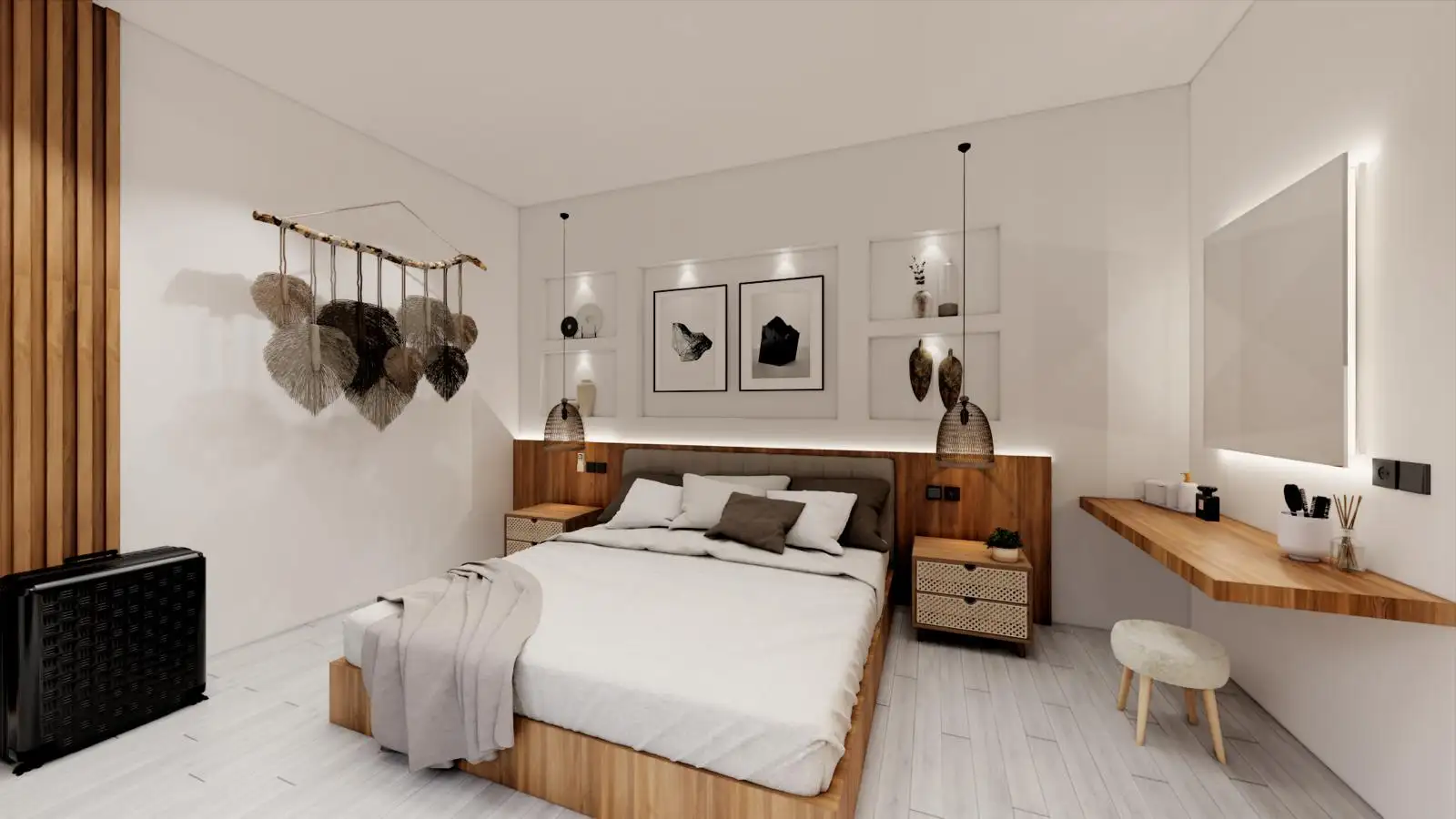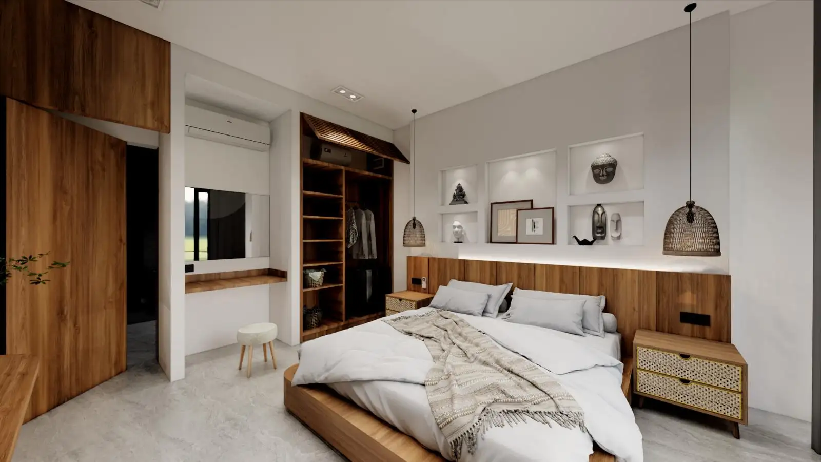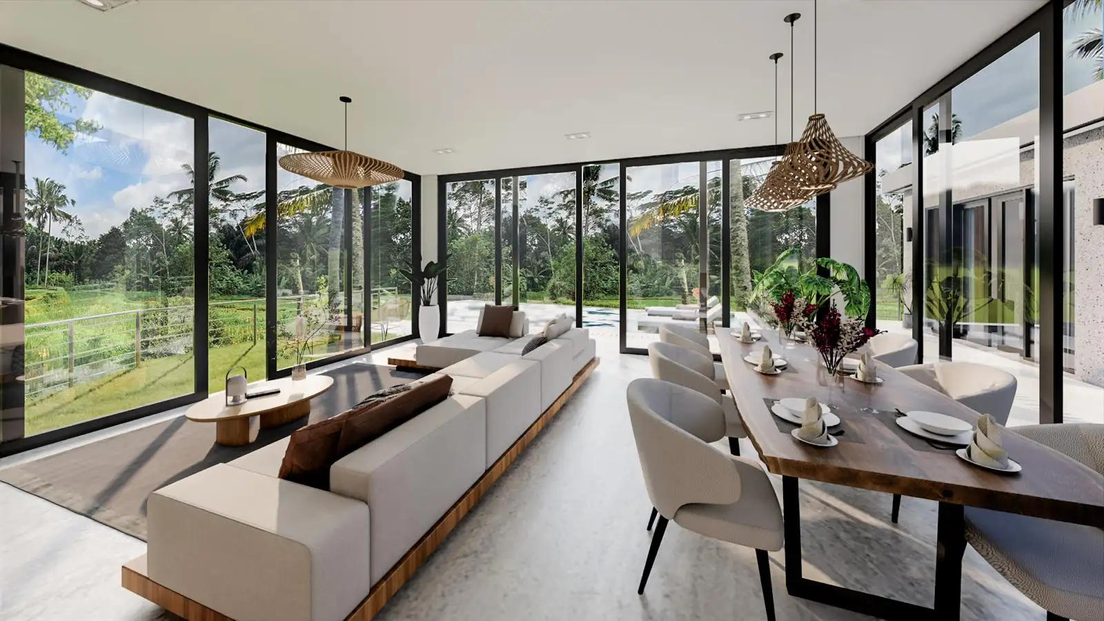 Discover the essence of tranquility and modern luxury with this exceptional off-plan villa located in the serene area of Ubud Tegalalang. Available on a leasehold basis for IDR 4,700,000,000, this stunning 3-bedroom, 3-bathroom property offers a harmonious blend of contemporary design and Balinese charm. Set on a 330 sqm plot, this villa boasts a total building size of 139 sqm, designed to provide a comfortable and spacious living experience. With an enclosed living area, you’ll enjoy the perfect balance between privacy and intimacy, while the large windows let in plenty of natural light, enhancing the overall atmosphere of serenity. The villa is furnished, allowing you to step into luxury from day one.