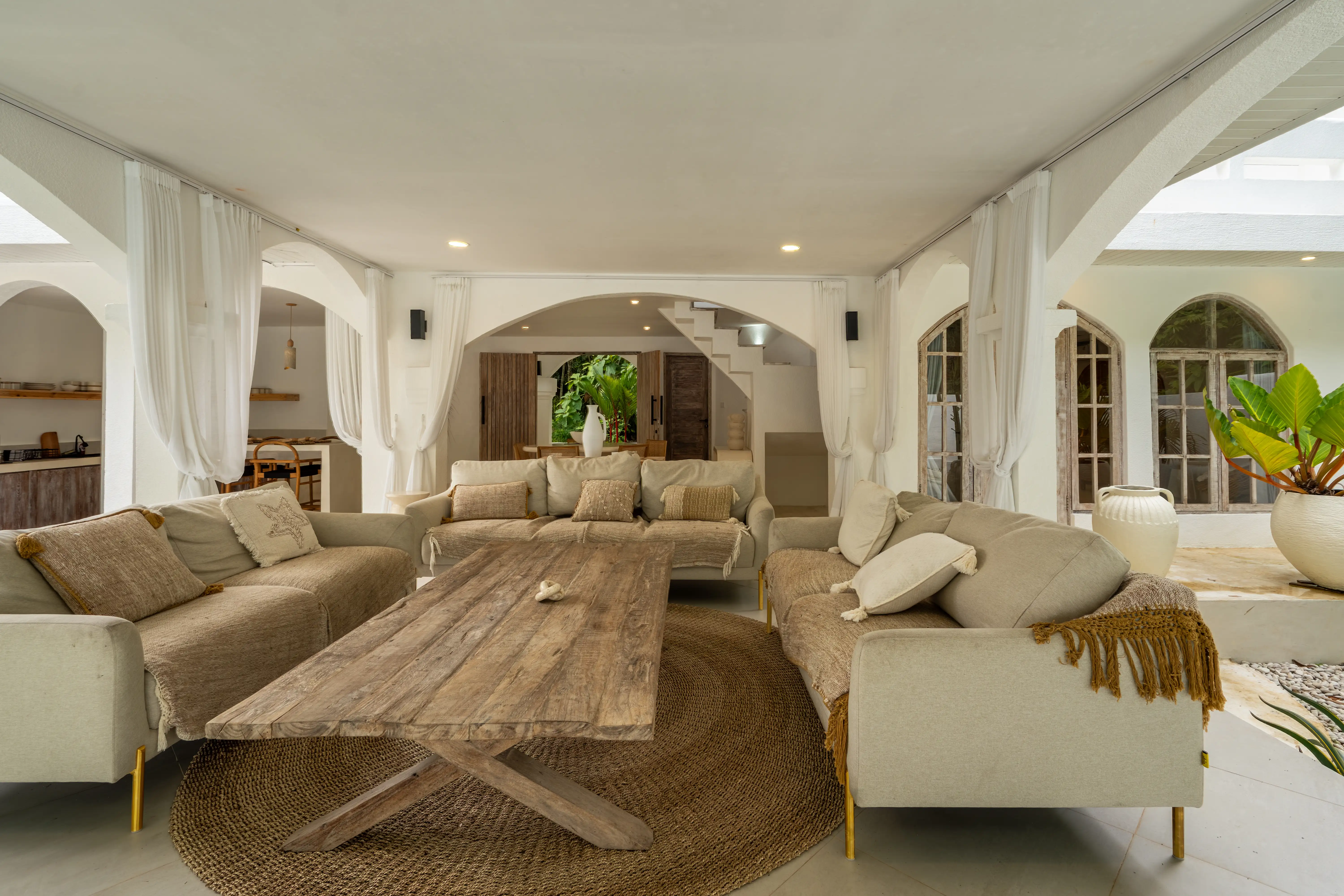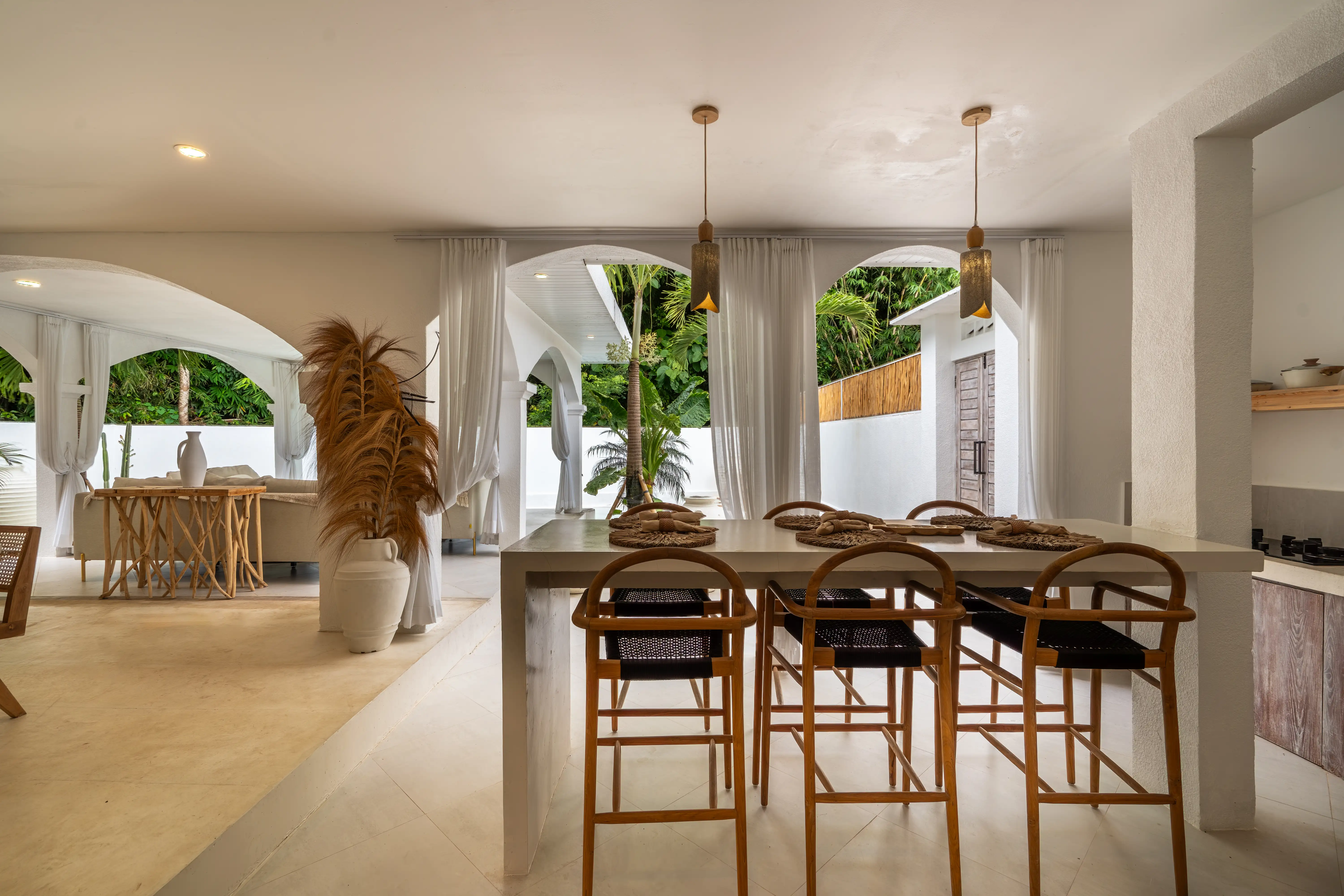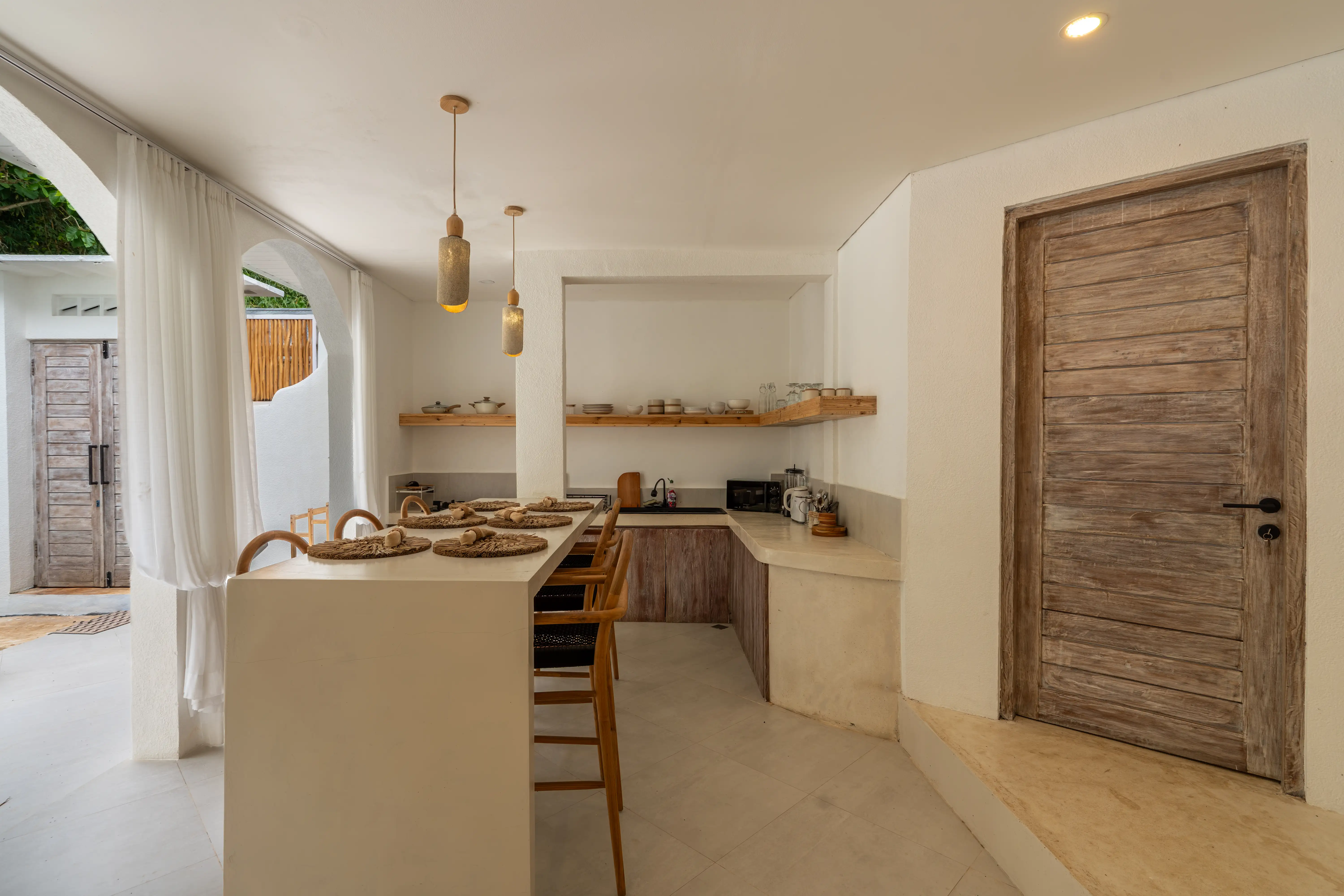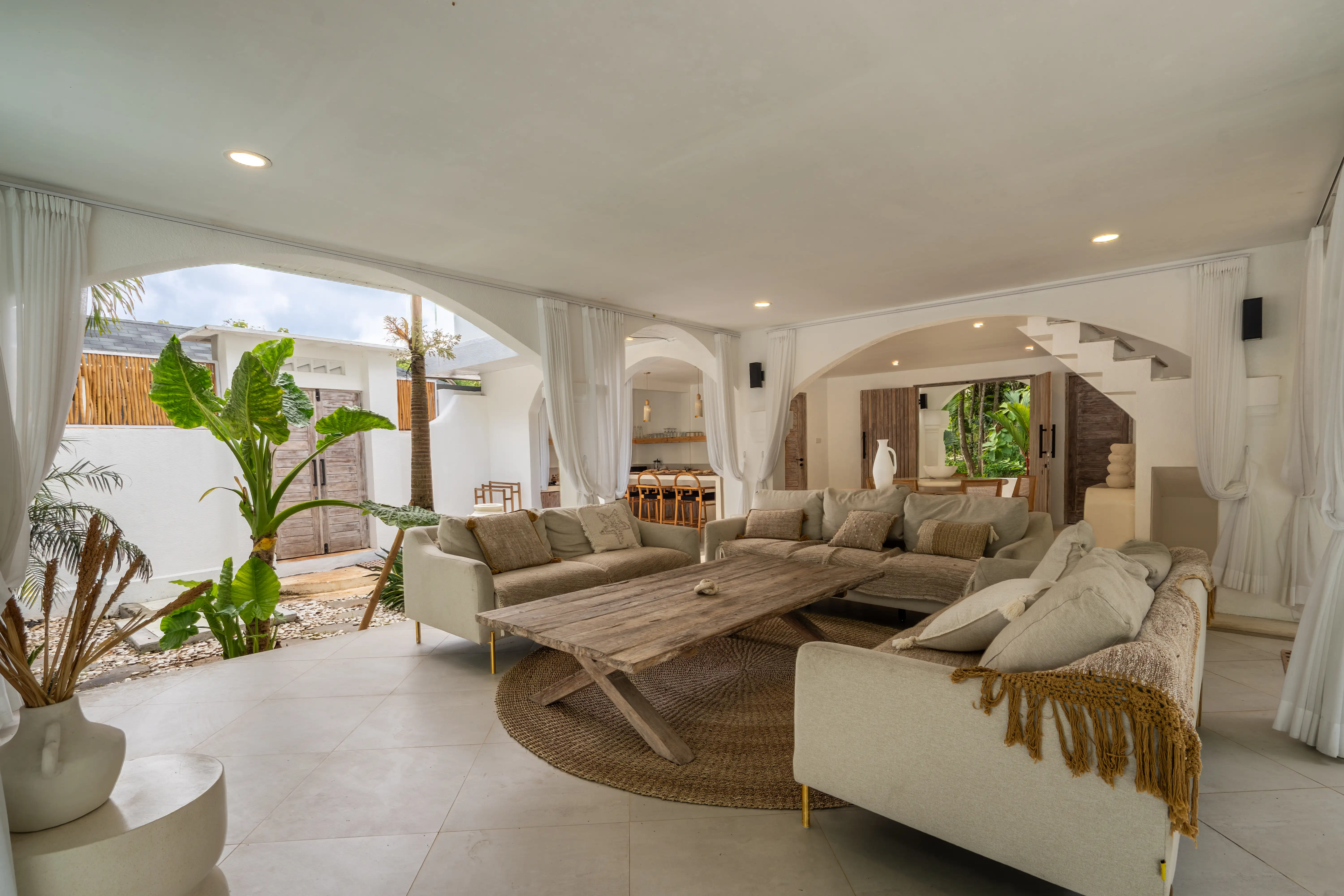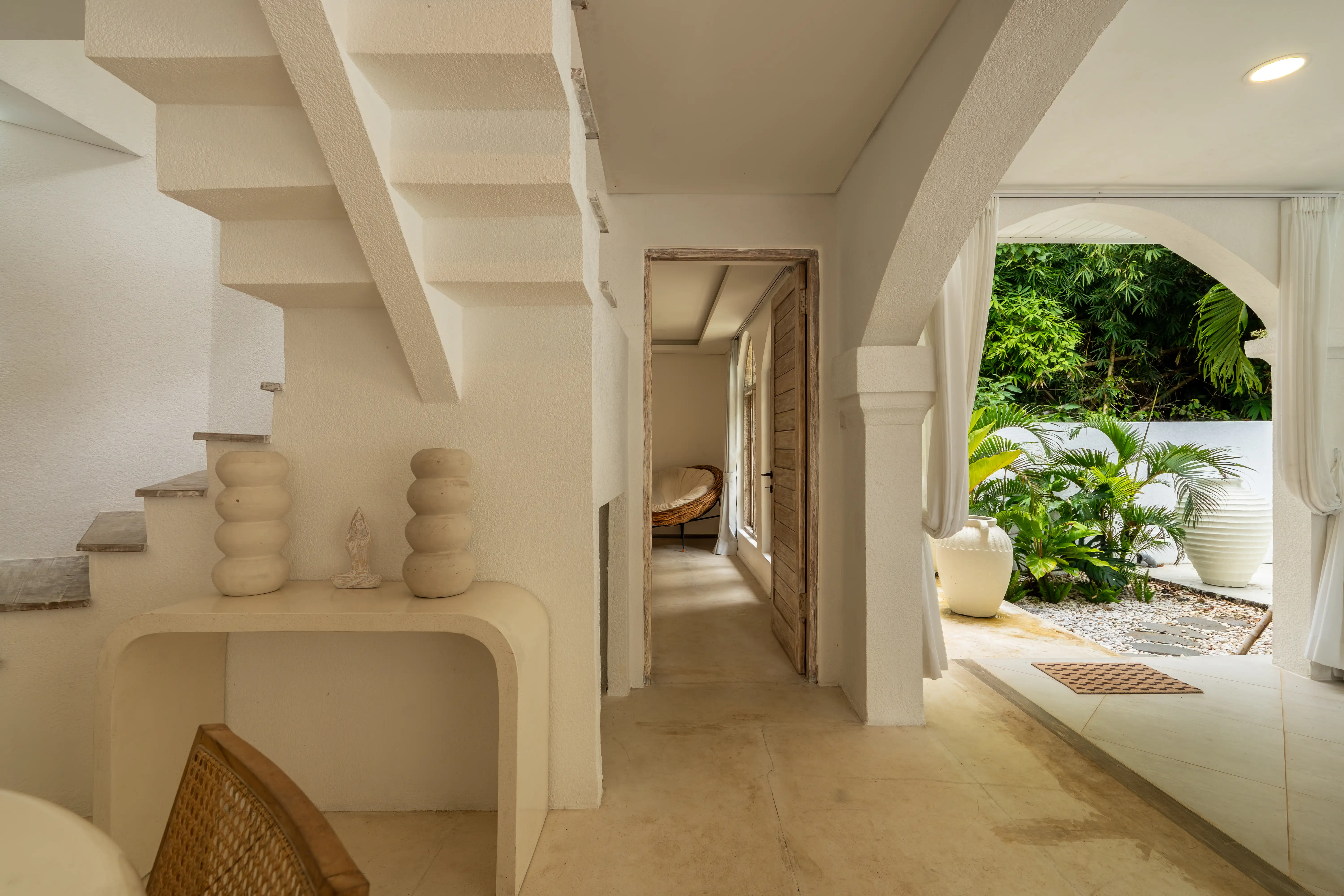 Soft Mediterranean character meets the calm atmosphere of Ungasan in a beautifully designed two-level villa set on 300 sqm of land with a generous 240 sqm building size. The architecture reflects a Santorini-inspired aesthetic, creating an airy and soothing environment that feels light, elegant, and timeless. Open living spaces blend naturally with the surrounding garden and private pool, allowing natural light and fresh air to flow effortlessly throughout the villa.
