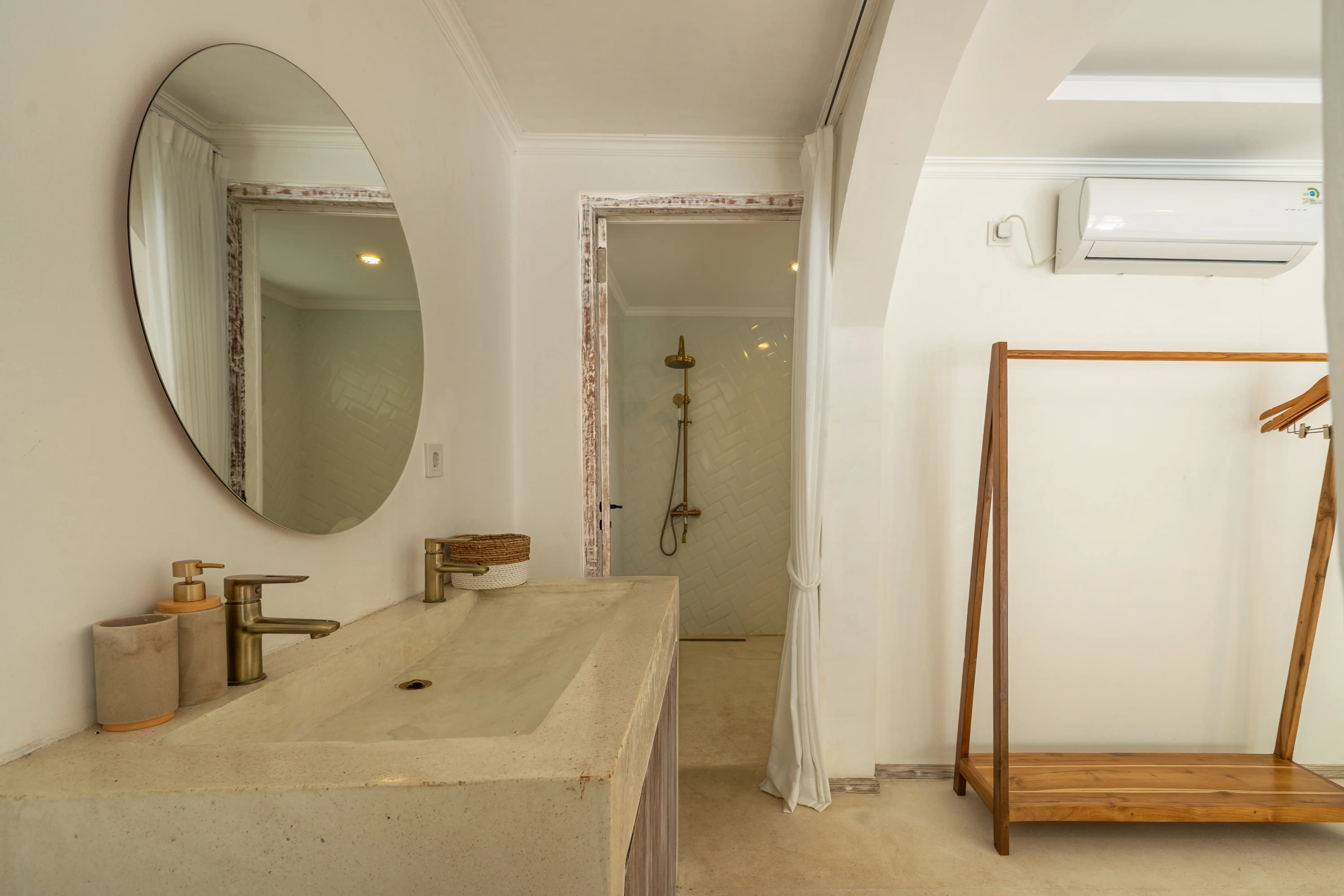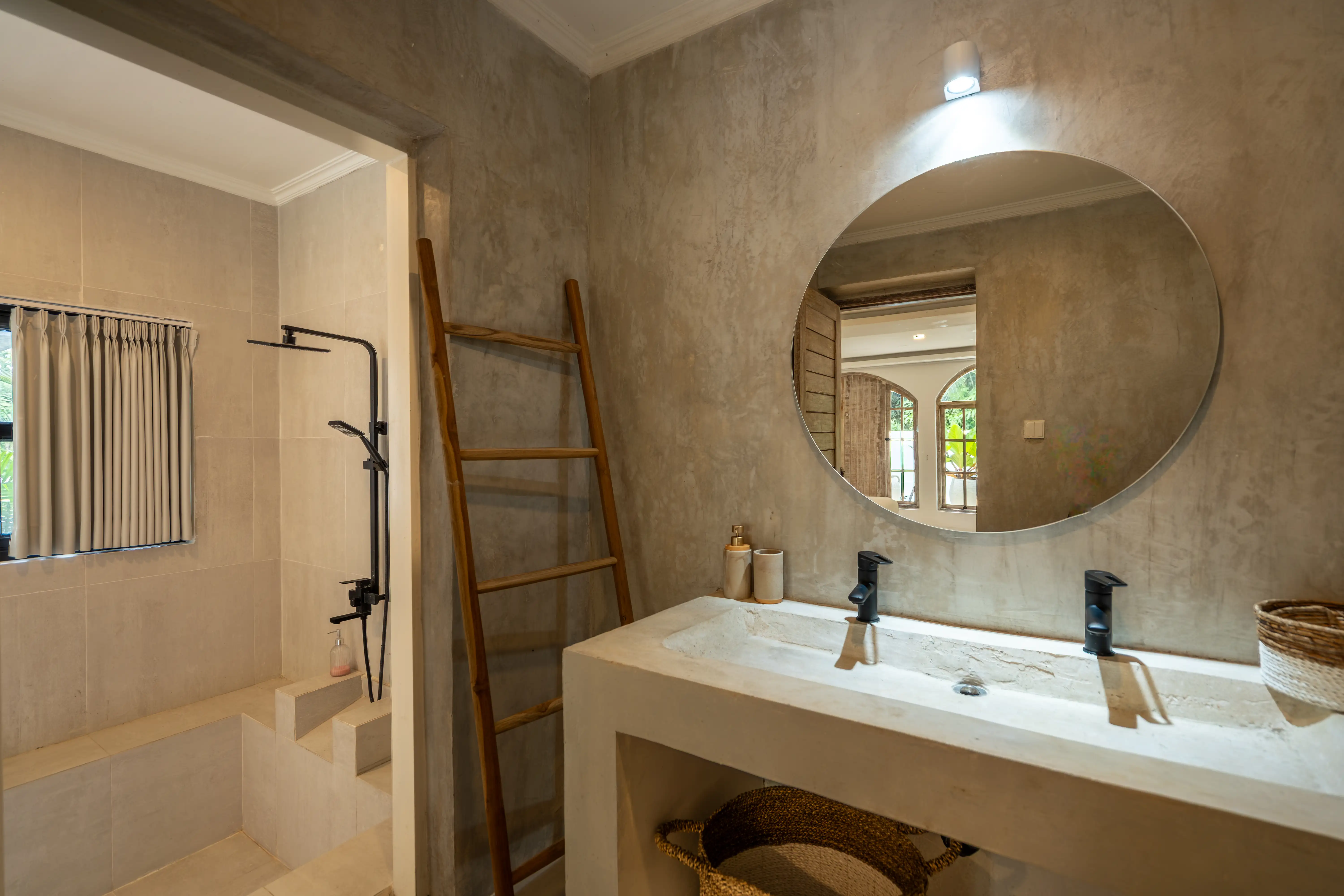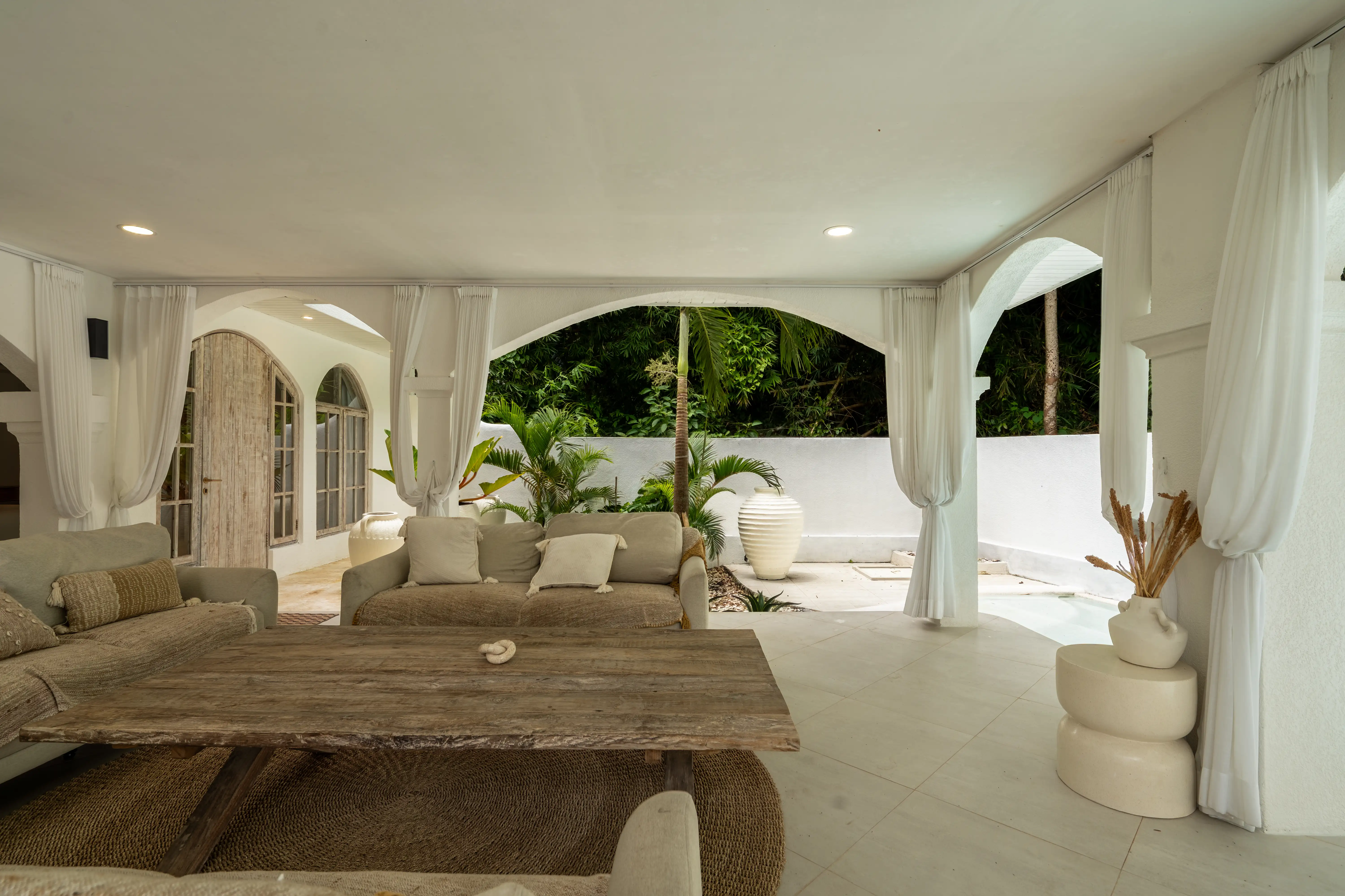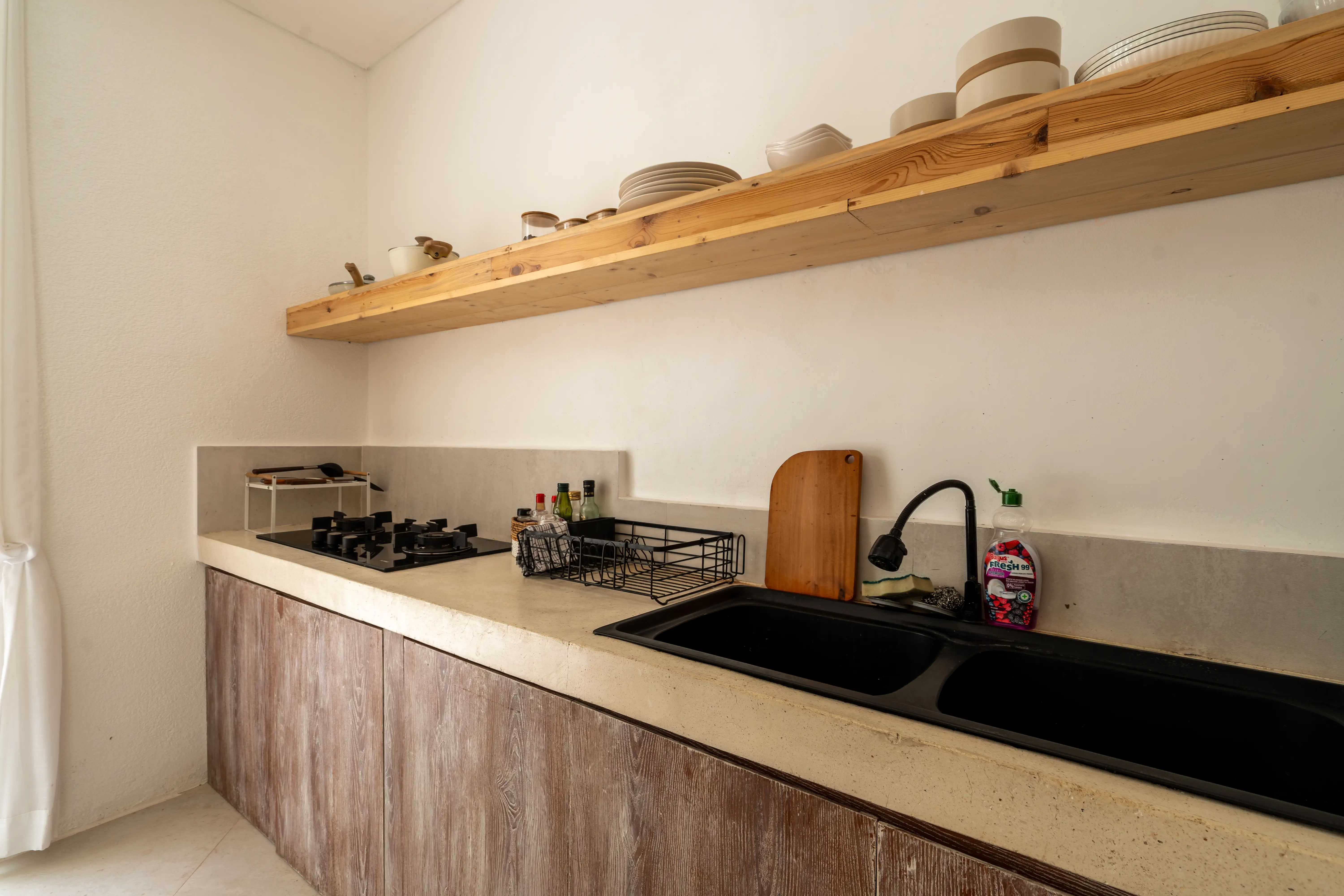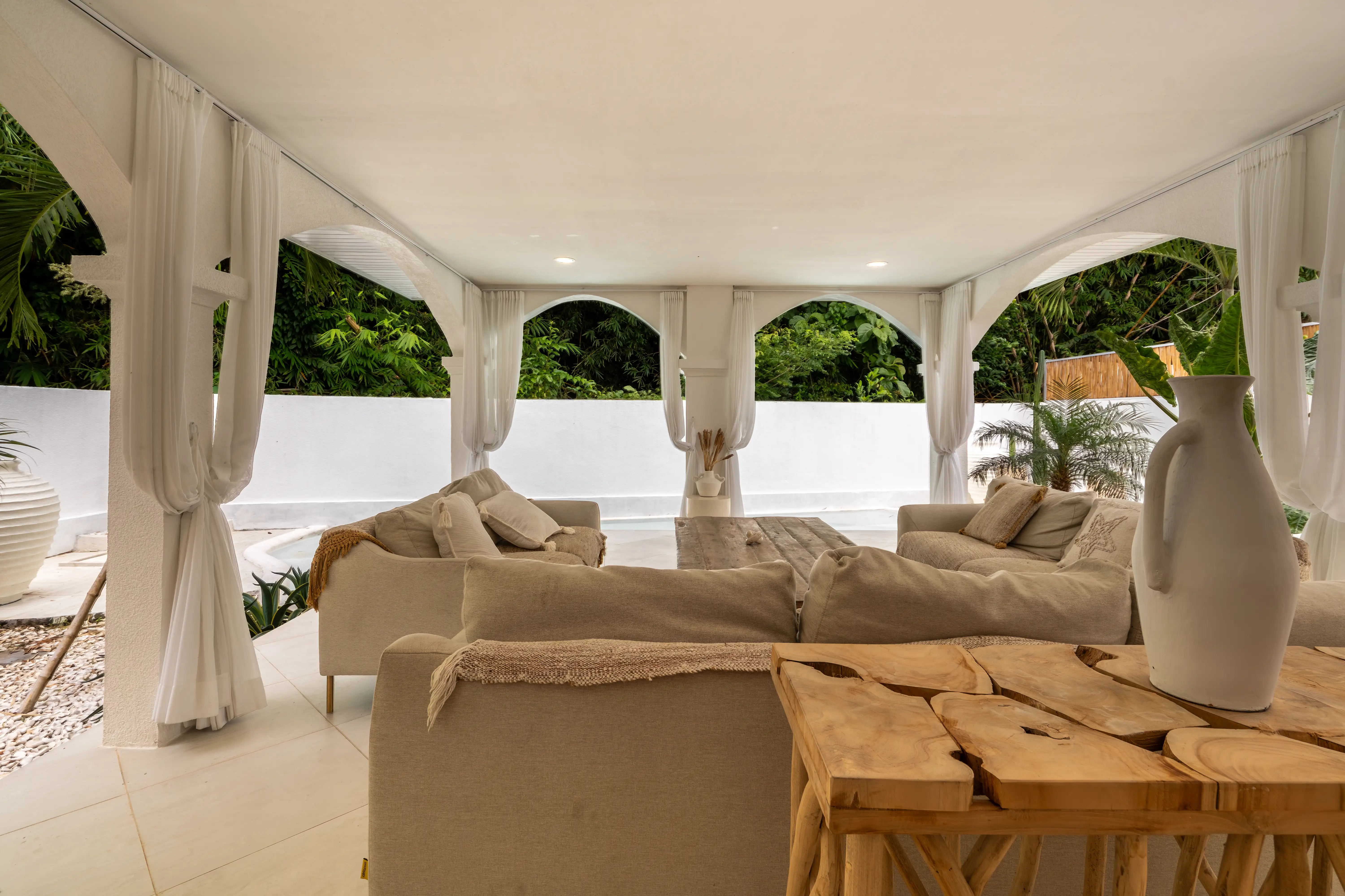 Soft Mediterranean character meets the calm atmosphere of Ungasan in a beautifully designed two-level villa set on 300 sqm of land with a generous 240 sqm building size. The architecture reflects a Santorini-inspired aesthetic, creating an airy and soothing environment that feels light, elegant, and timeless. Open living spaces blend naturally with the surrounding garden and private pool, allowing natural light and fresh air to flow effortlessly throughout the villa.