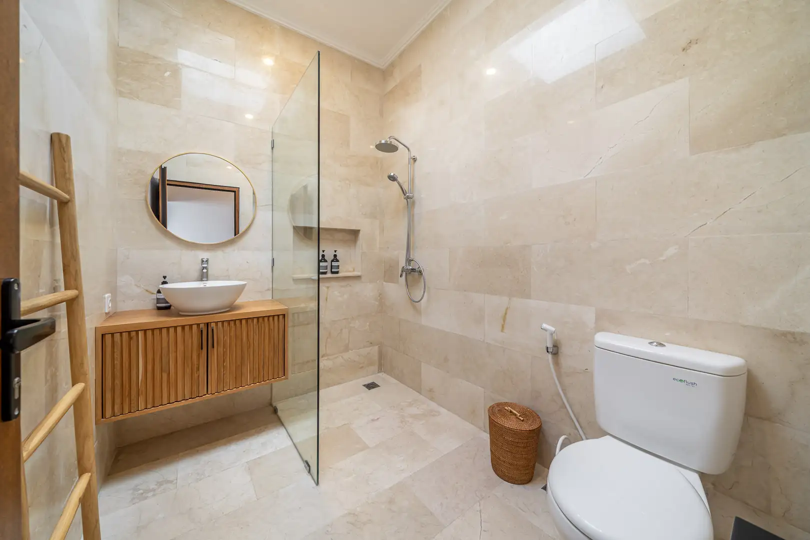 Residents can enjoy peace of mind with 24/7 security and a state-of-the-art surveillance system, ensuring a safe and secure environment at all times. Thick, expertly crafted walls provide exceptional soundproofing, offering tranquility and privacy. The villa is also equipped with advanced waterproofing to protect against any dampness, ensuring a dry and comfortable home environment. The villa features a modern ventilation system paired with high-quality aluminum windows and double glazing, creating an ideal indoor climate that’s cool, quiet, and energy-efficient. Enjoy the luxury of your own home theater, where you can immerse yourself in your favorite films without ever leaving the comfort of your villa. The villa includes a dedicated laundry room, fully equipped with a washing machine, dryer, and ironing facilities, adding another layer of convenience to your everyday life. The villa’s design has been masterfully crafted by renowned Italian architect Antonio Rutilio, known for his elegant and functional designs that harmonize with nature. His unique vision brings a touch of Italian sophistication and meticulous attention to detail, creating a living space that is as beautiful as it is functional. This villa in Sanur isn’t just a home; it’s a lifestyle. With its blend of luxury, comfort, and advanced technology, it offers a living experience like no other and a great investment opportunity
