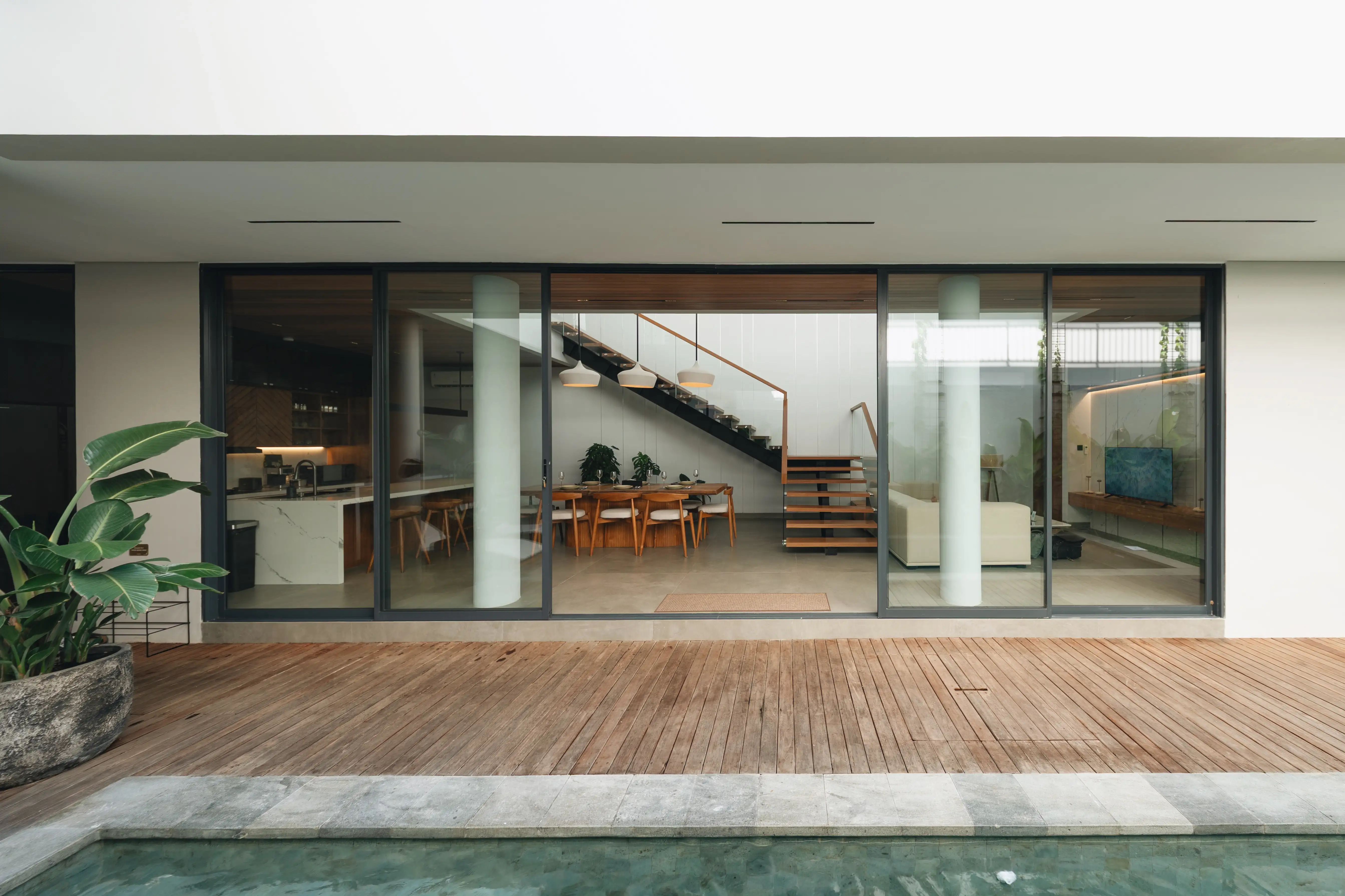 This stunning 3-bedroom villa in Tumbak Bayuh offers the perfect balance of modern design and tropical comfort. Built on a 247 sqm land with a spacious 350 sqm building size, the villa is fully furnished and thoughtfully designed with high-quality finishes. Large glass windows and open-plan living spaces create a bright and airy atmosphere, seamlessly blending indoor and outdoor areas. The private 8m x 2.5m swimming pool, surrounded by lush greenery and a wooden deck, makes it an inviting space for relaxation and entertainment.